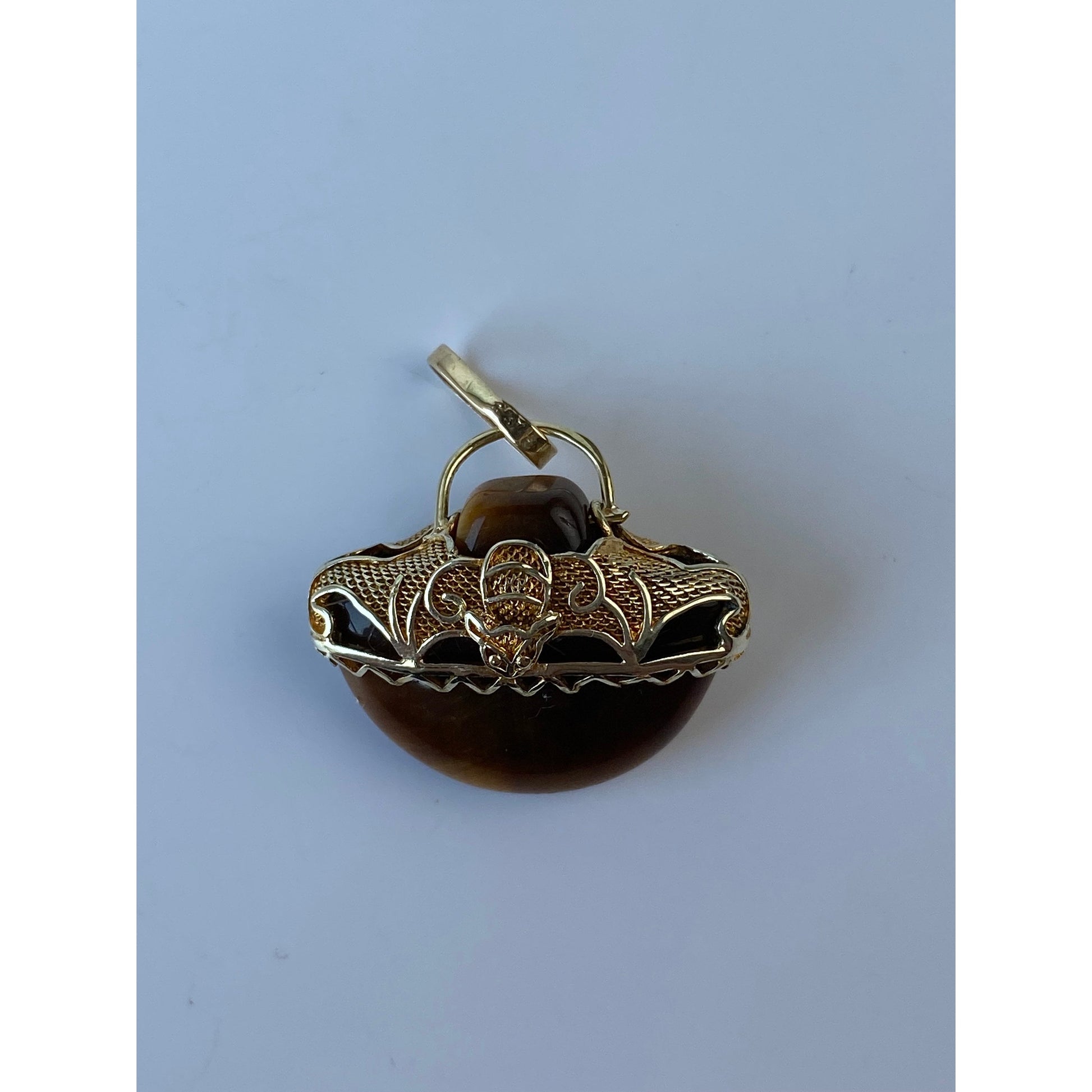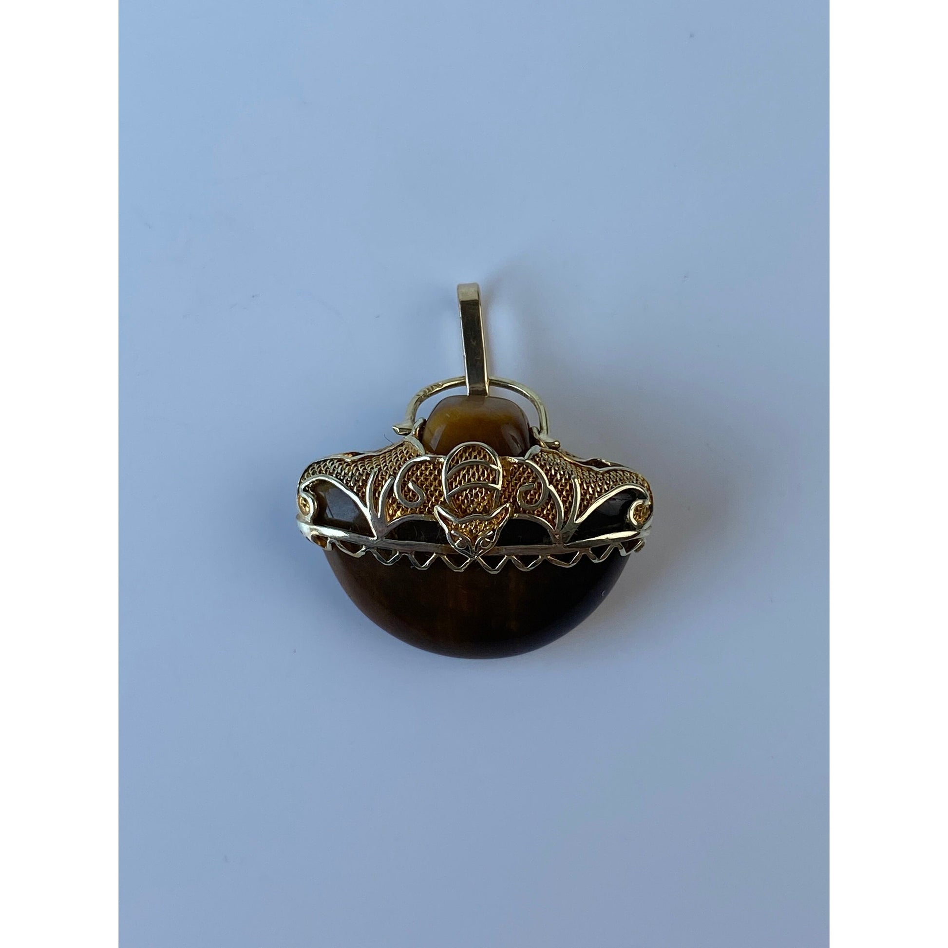 Vintage Solid 14k Yellow Gold Tigers Eye Charm