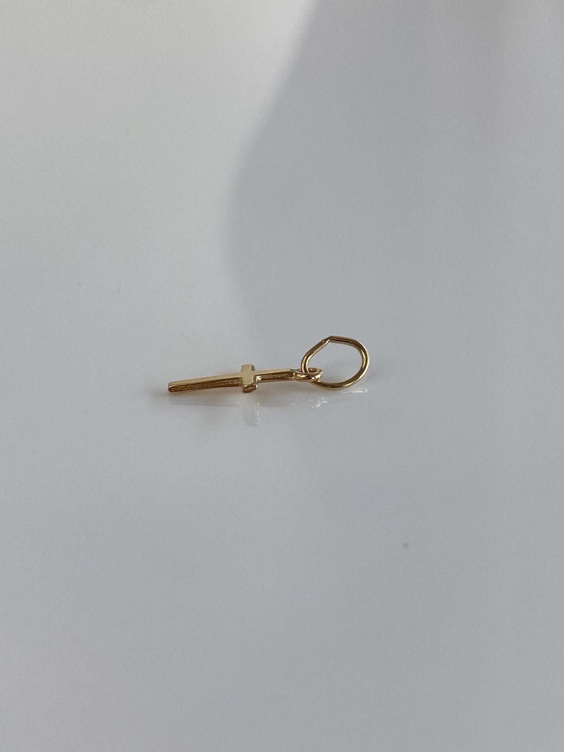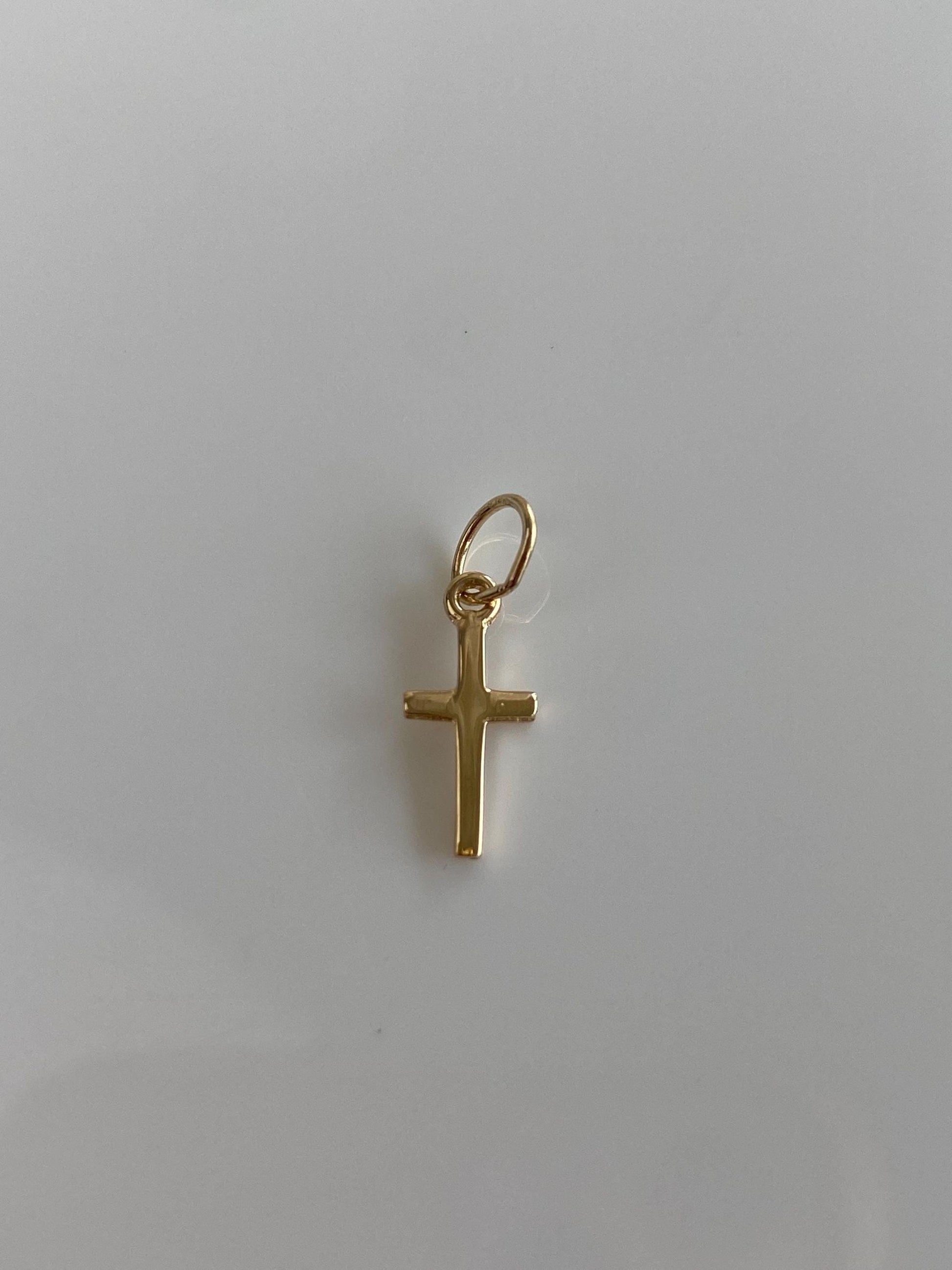 Vintage Solid 14k Yellow Gold Tiny Cross Charm