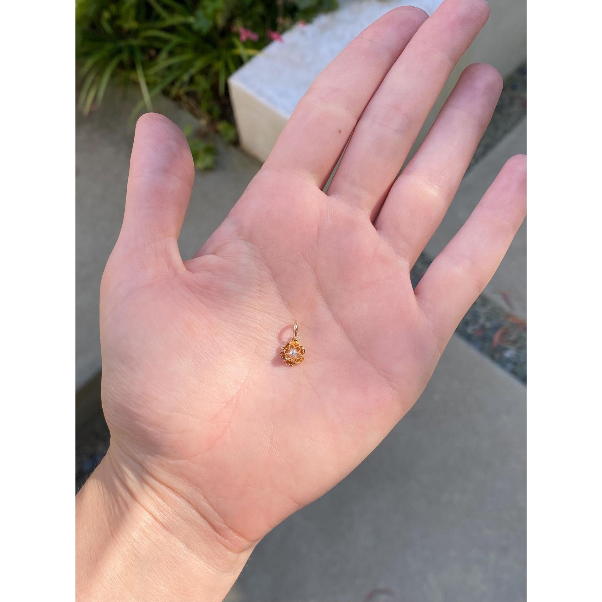Vintage Solid 14k Yellow Gold Tiny Diamond Flower Stick Pin Conversion Charm