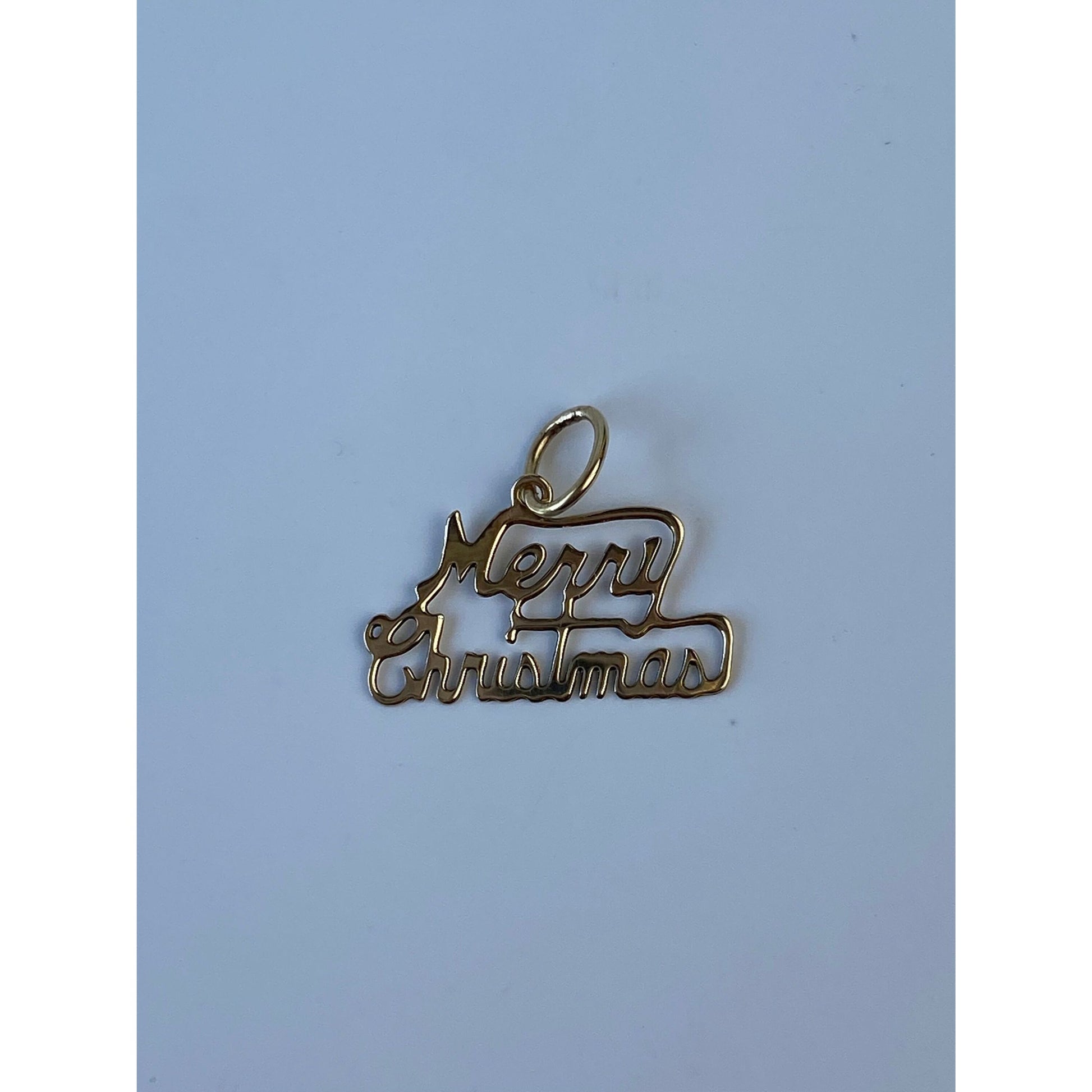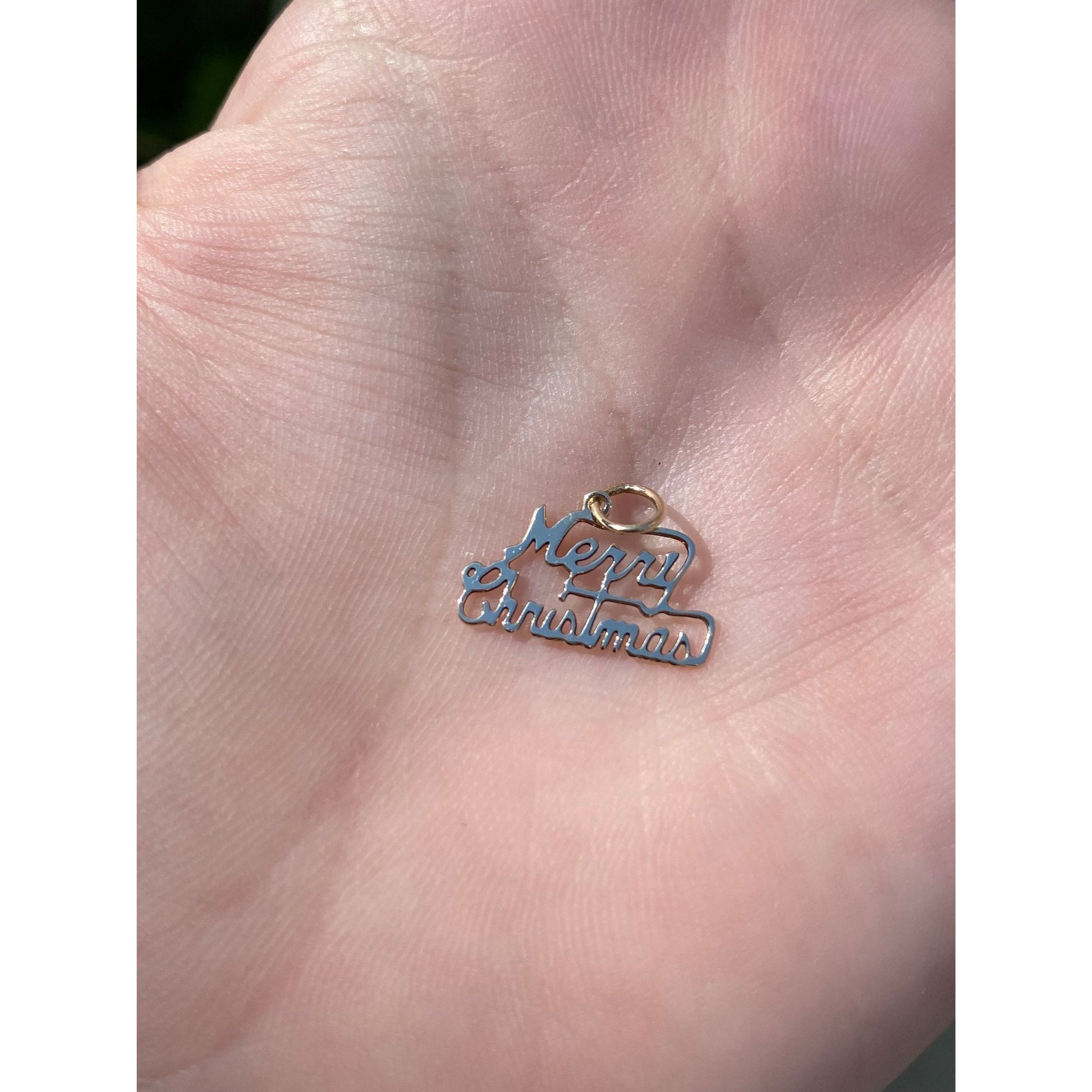 Vintage Solid 14k Yellow Gold Tiny 'Merry Christmas' Charm