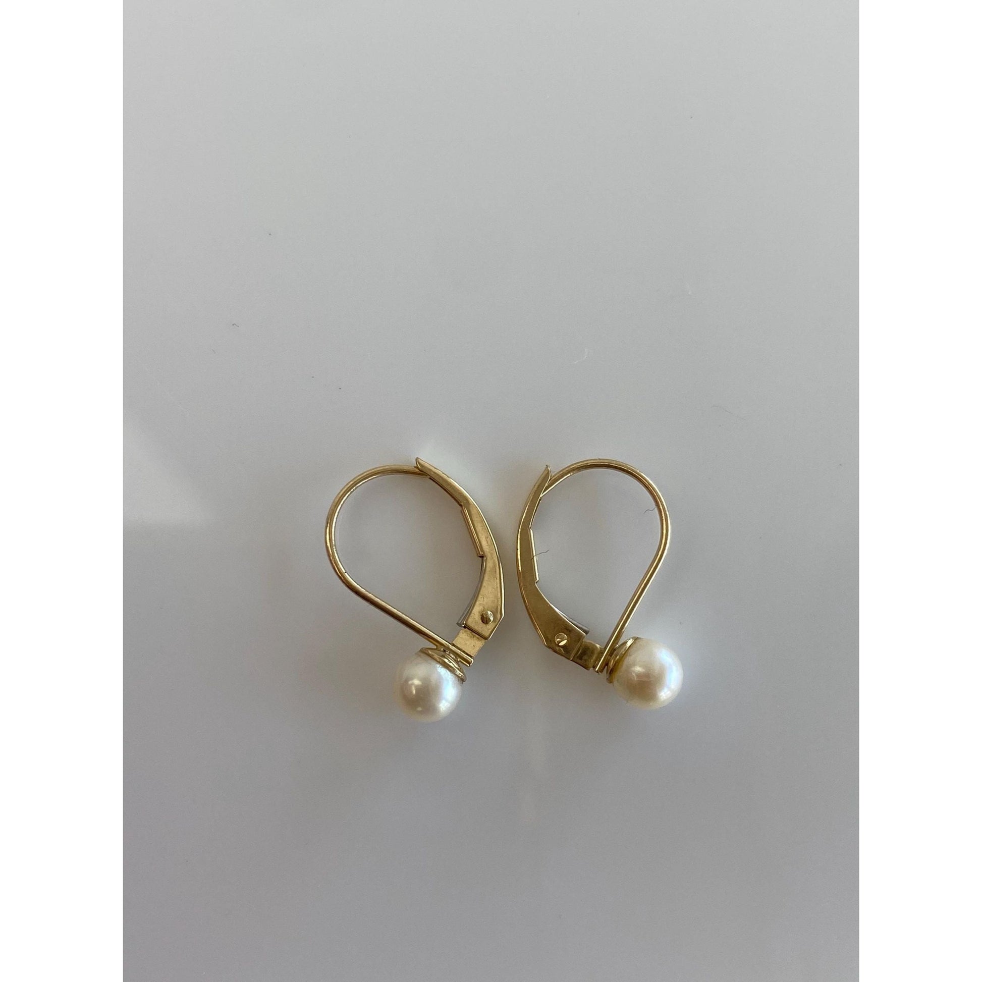 Vintage Solid 14k Yellow Gold Tiny Pearl Drop Earrings