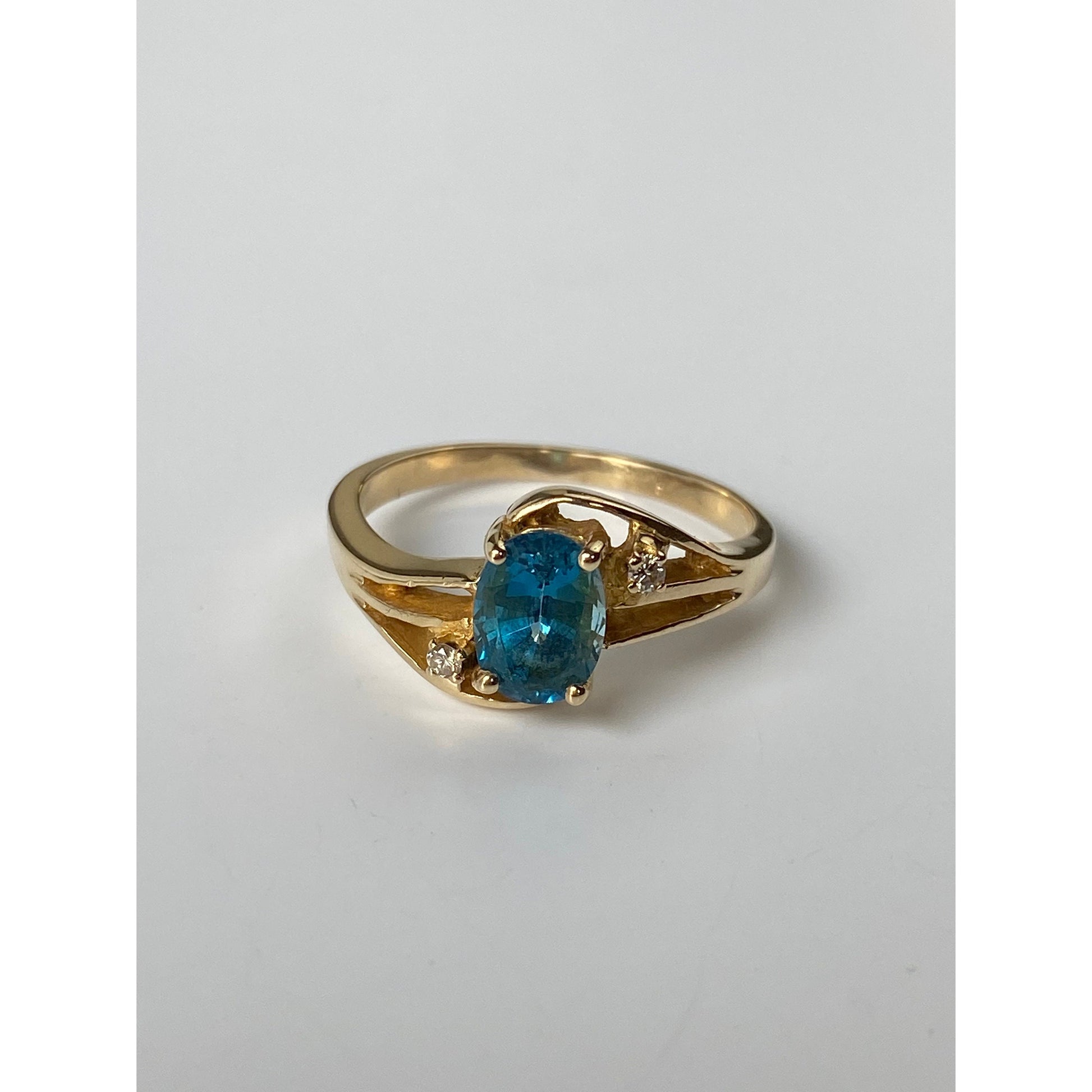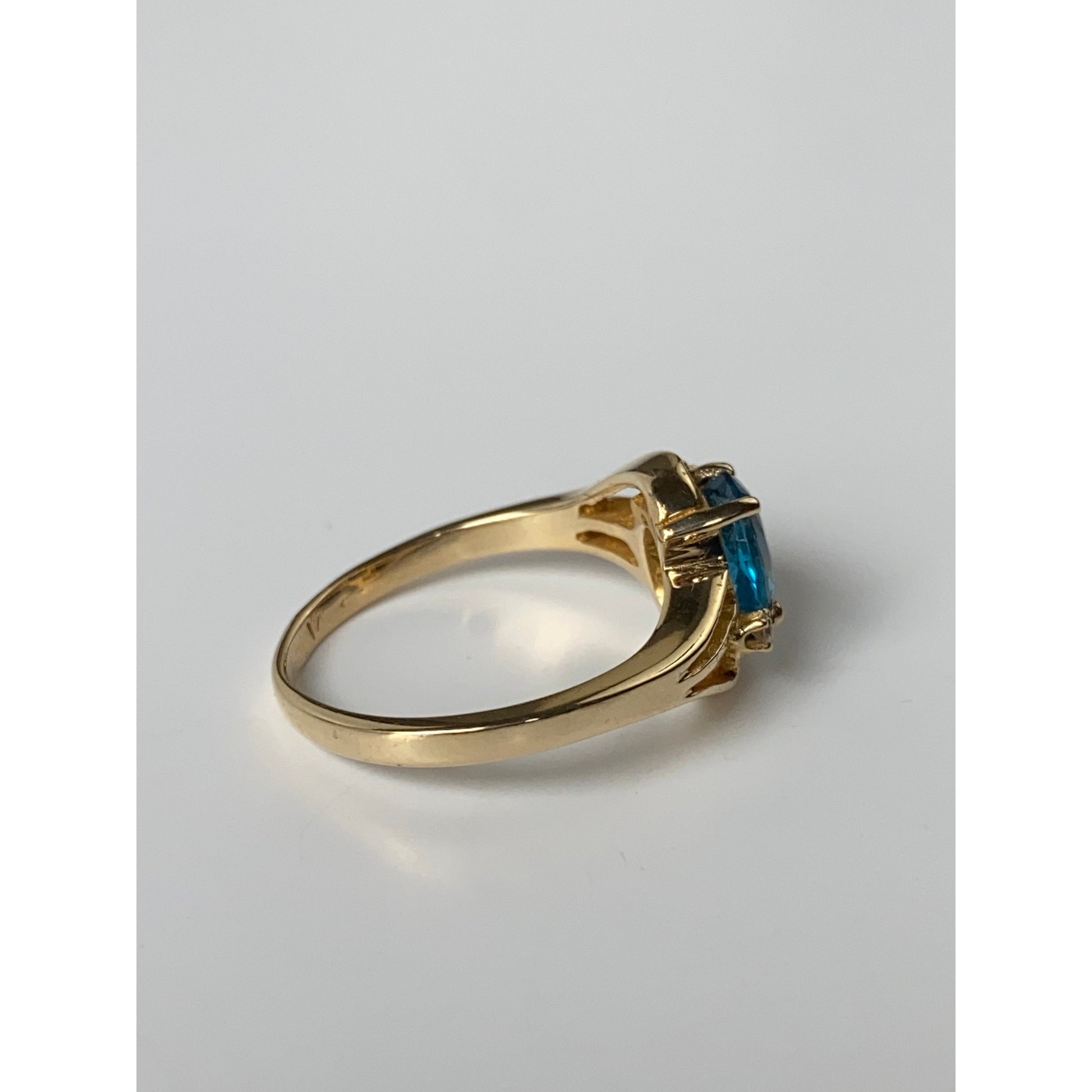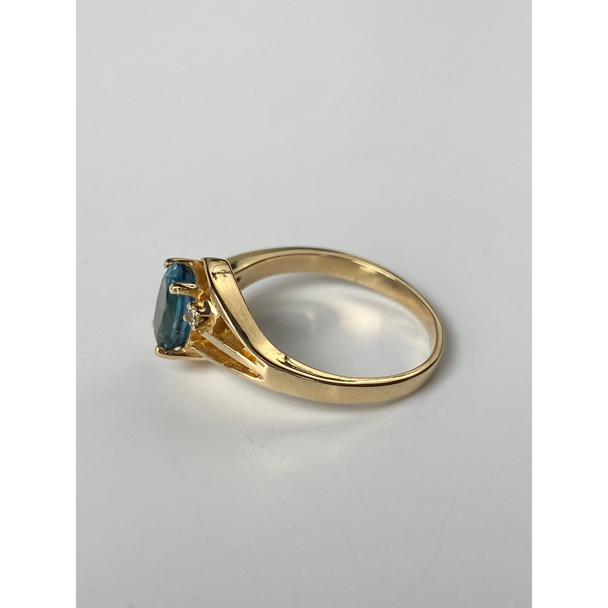 Vintage Solid 14k Yellow Gold Topaz Diamond Ring - Size 5.75