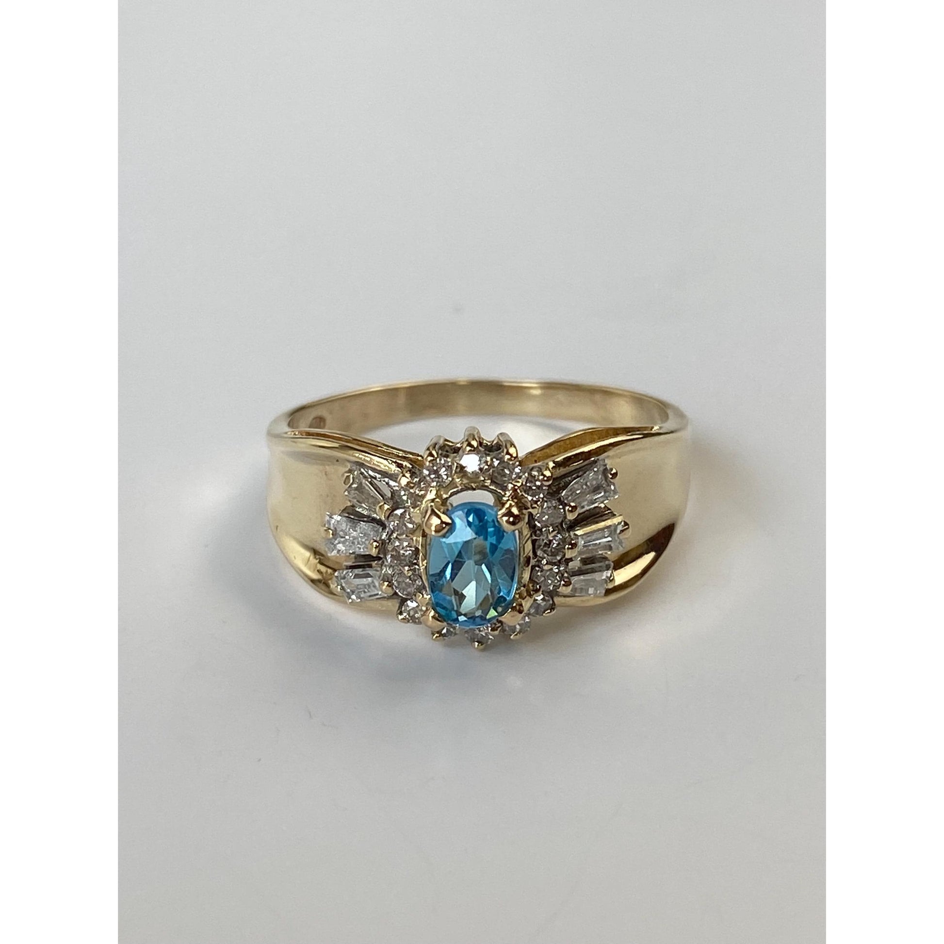 Vintage Solid 14k Yellow Gold Topaz Diamond Ring - Size 9.25