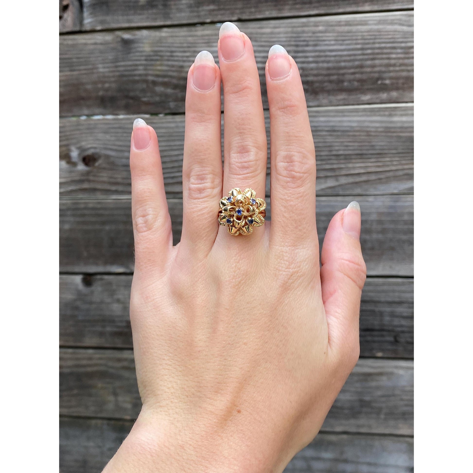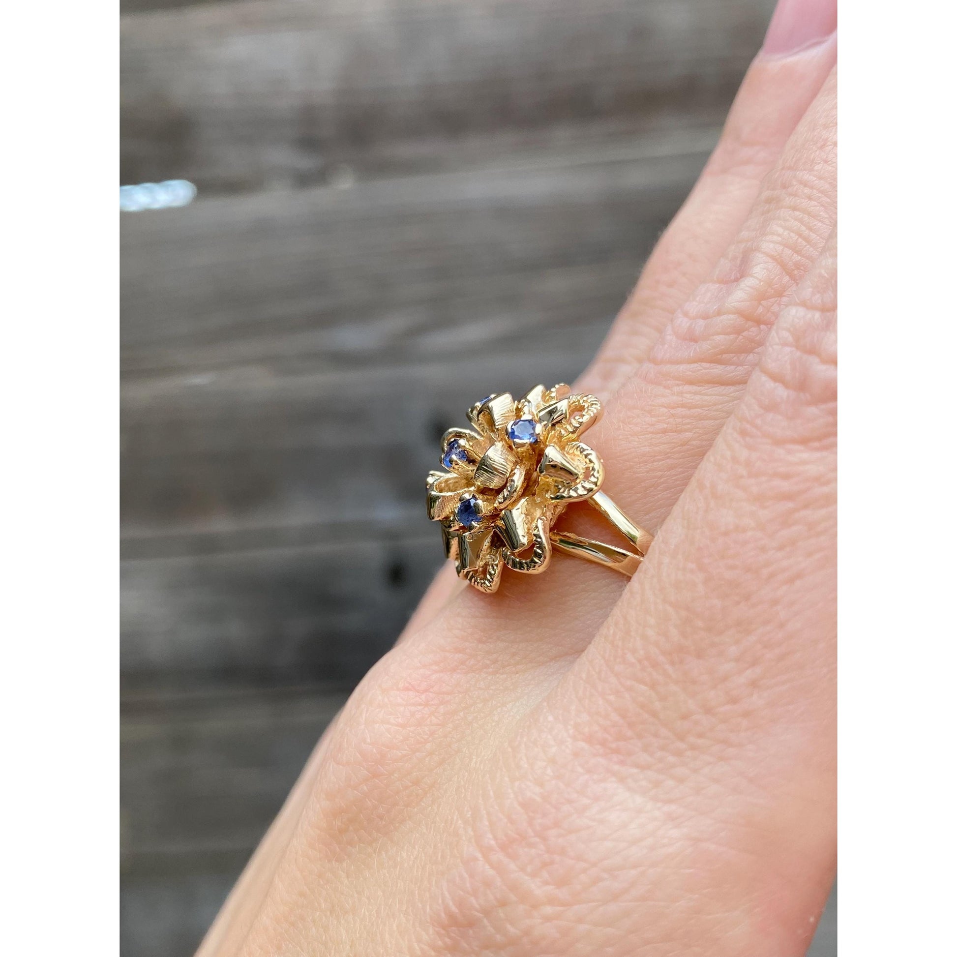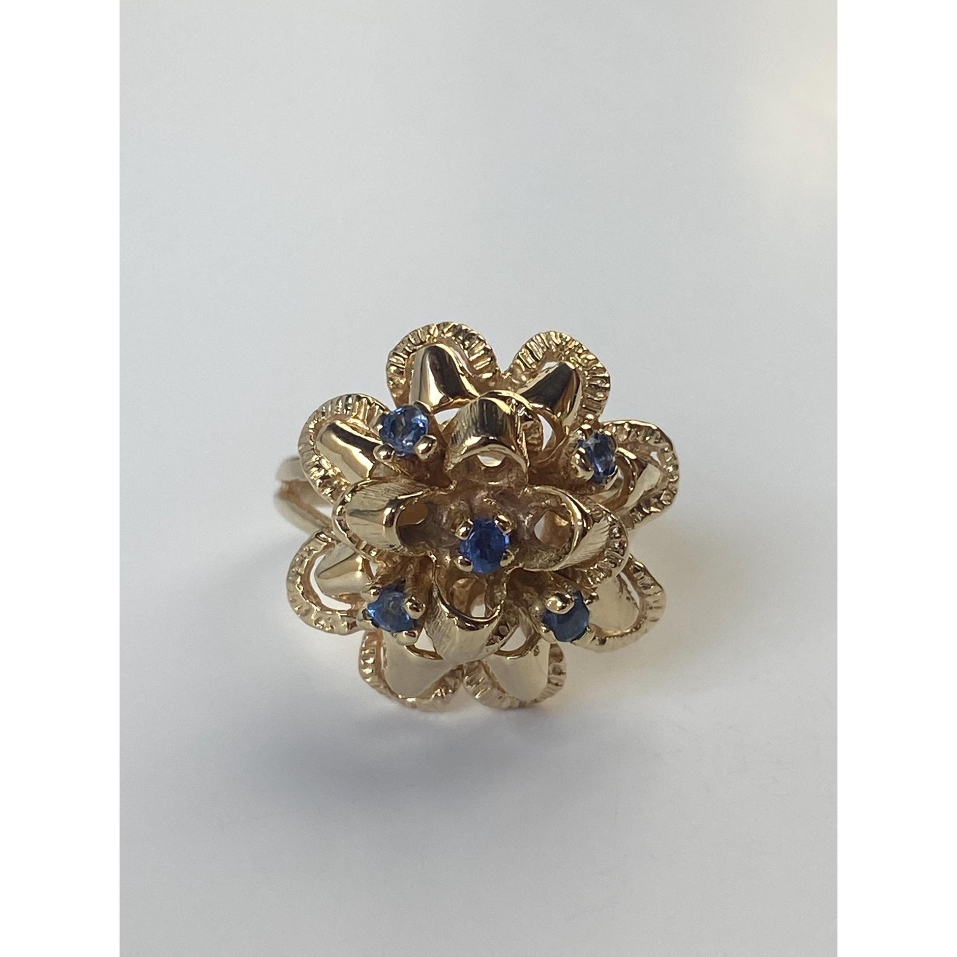 Vintage Solid 14k Yellow Gold Topaz Flower Ring - Size 6