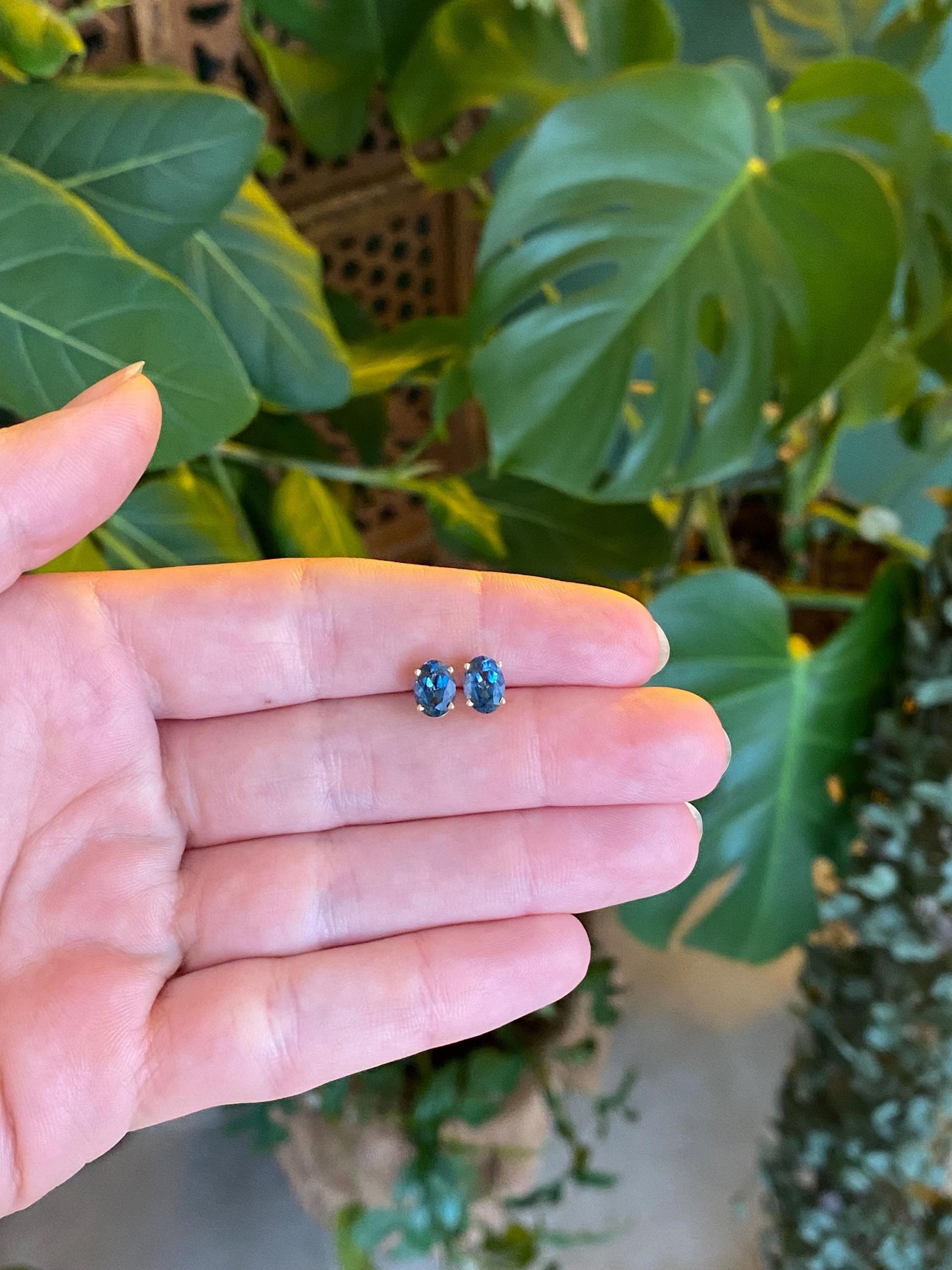 Vintage Solid 14k Yellow Gold Topaz Stud Earrings