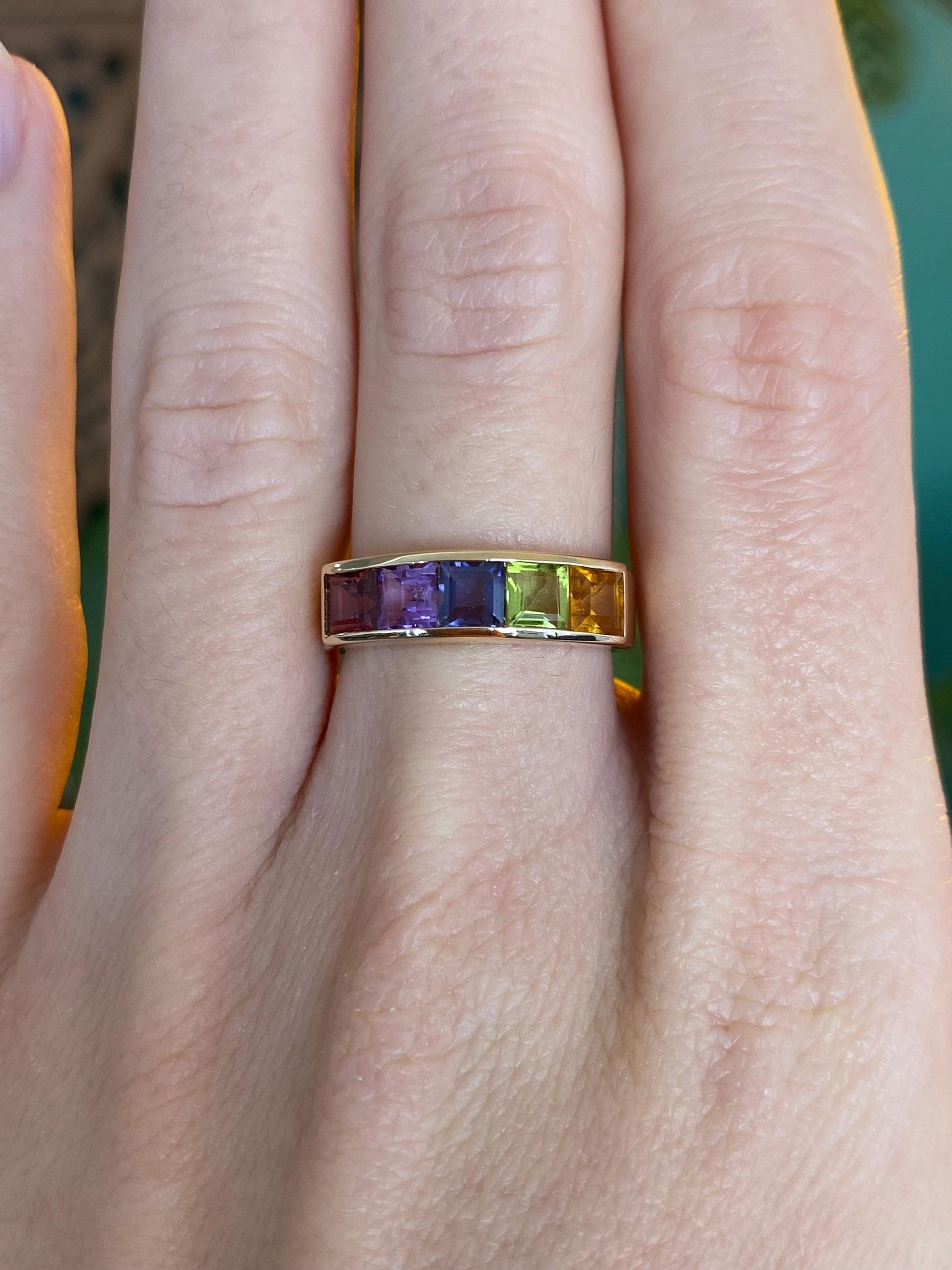 Vintage Solid 14k Yellow Gold Tourmaline Amethyst Tanzanite Citrine Peridot Ring - Size 6.5
