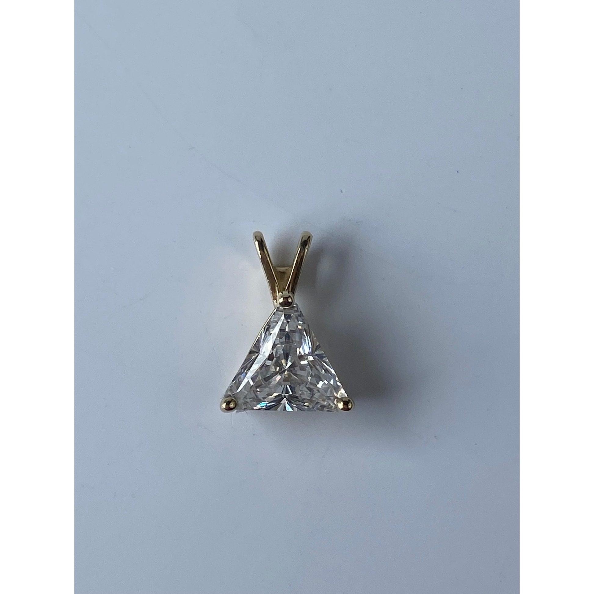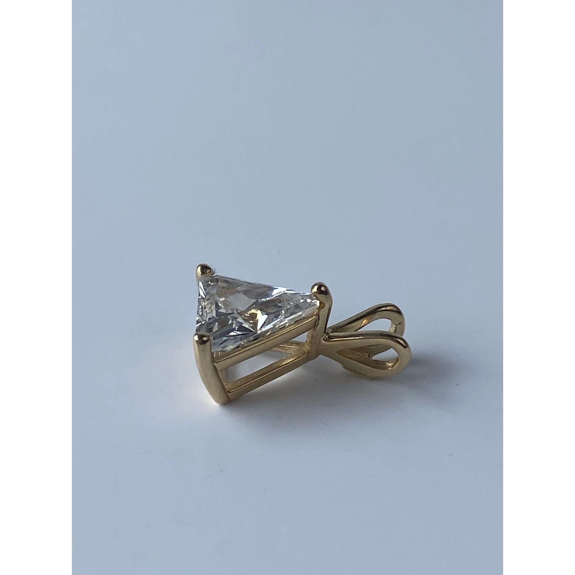 Vintage Solid 14k Yellow Gold Triangle Cut Clear Cubic Zirconia Charm