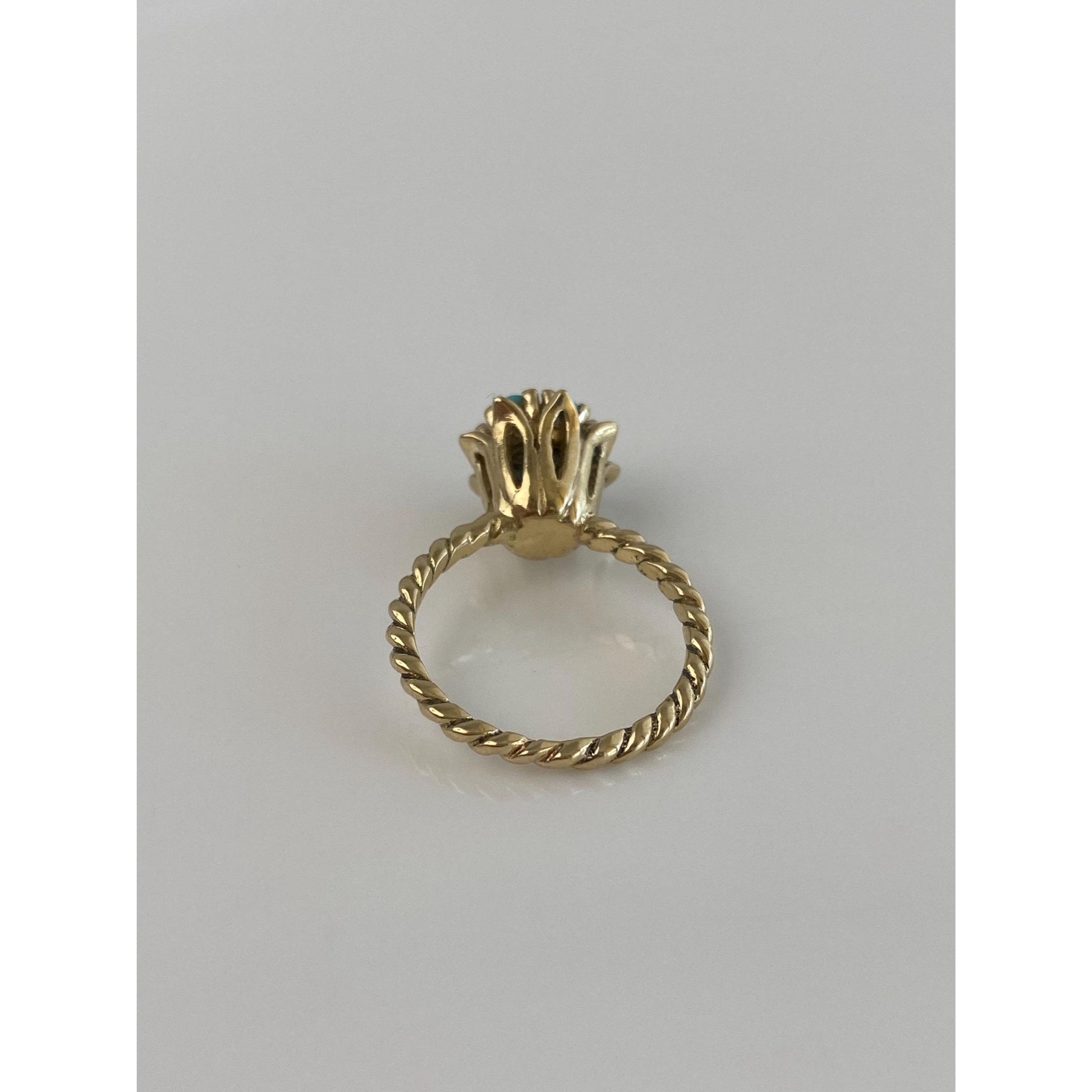 Vintage Solid 14k Yellow Gold Turquoise Flower Ring - Size 5.25