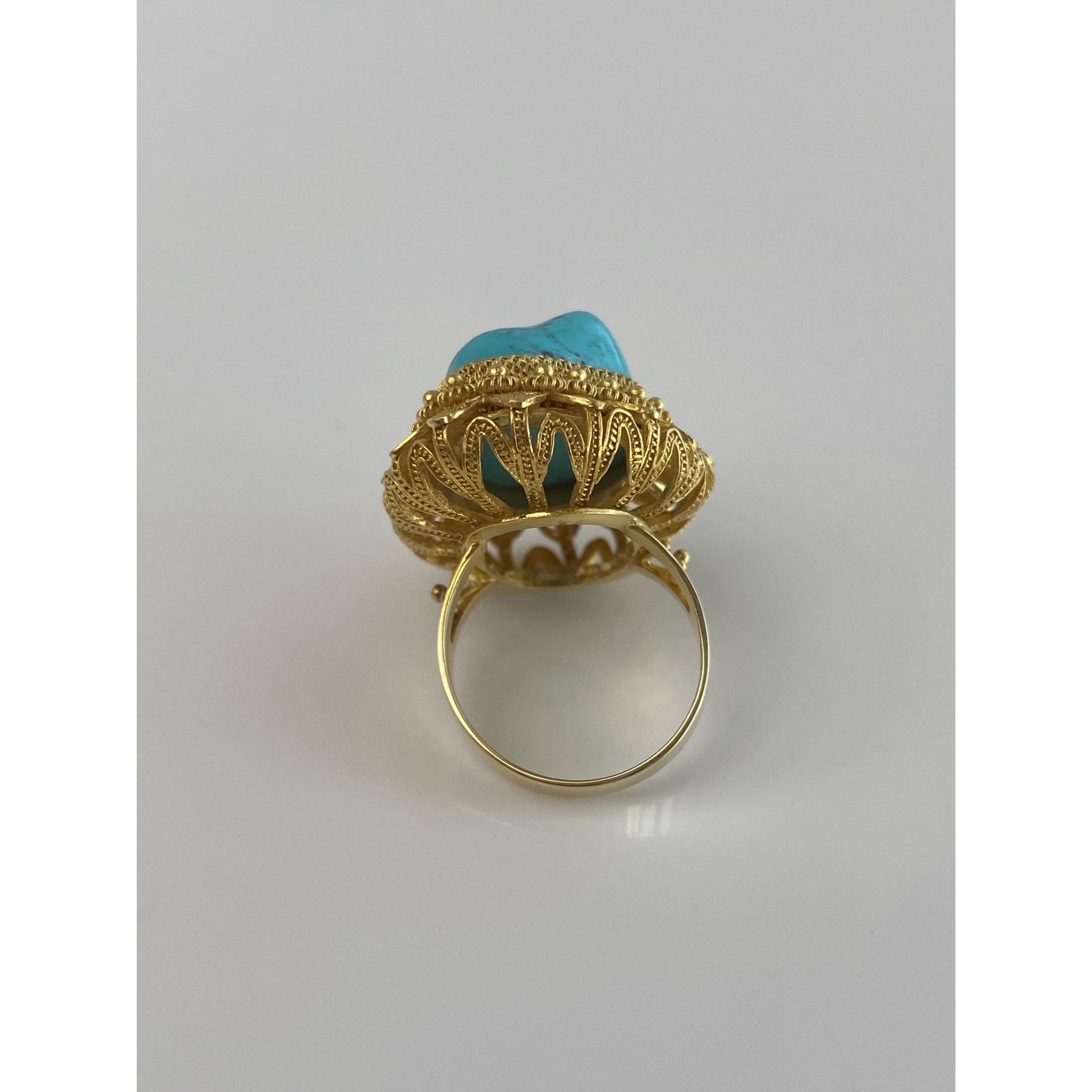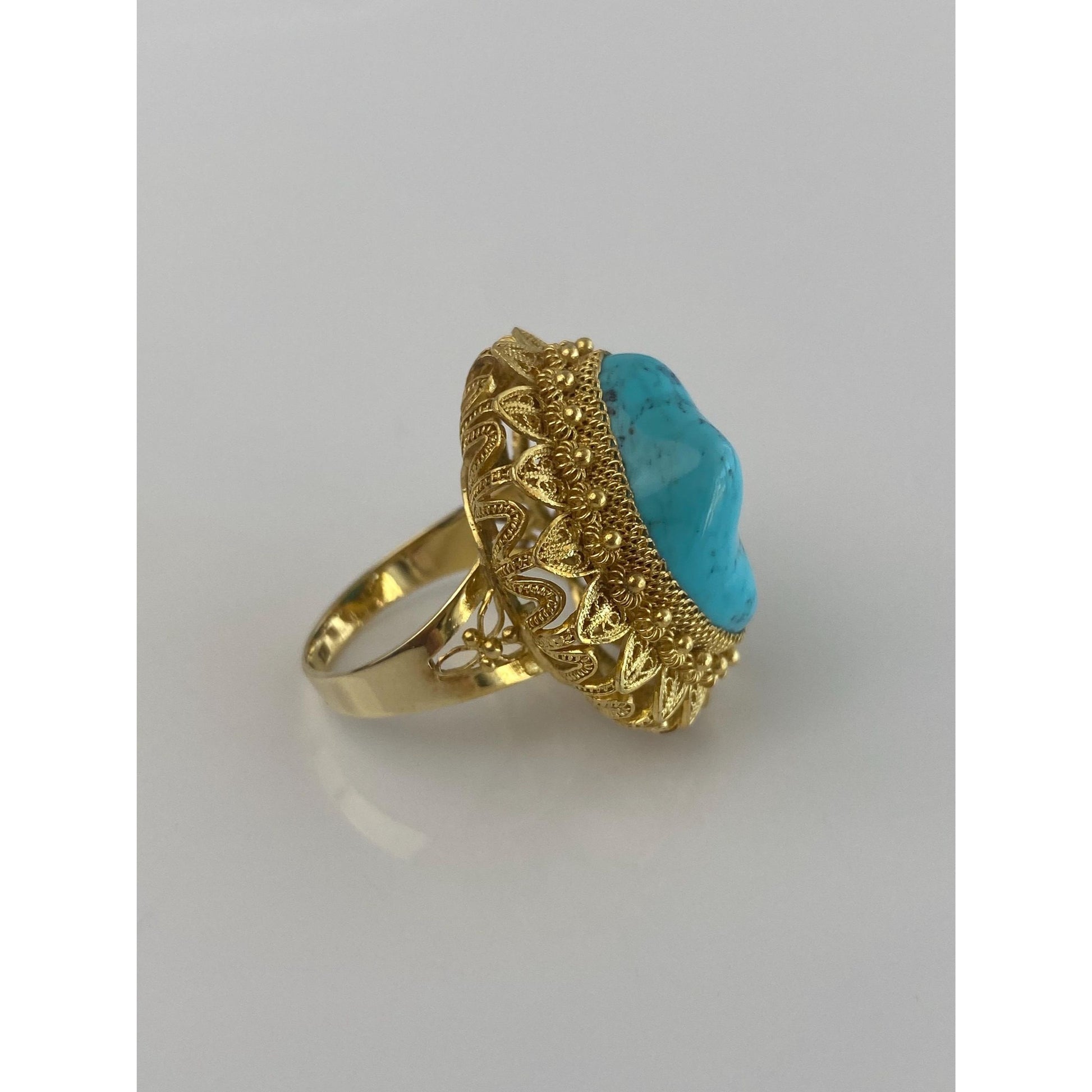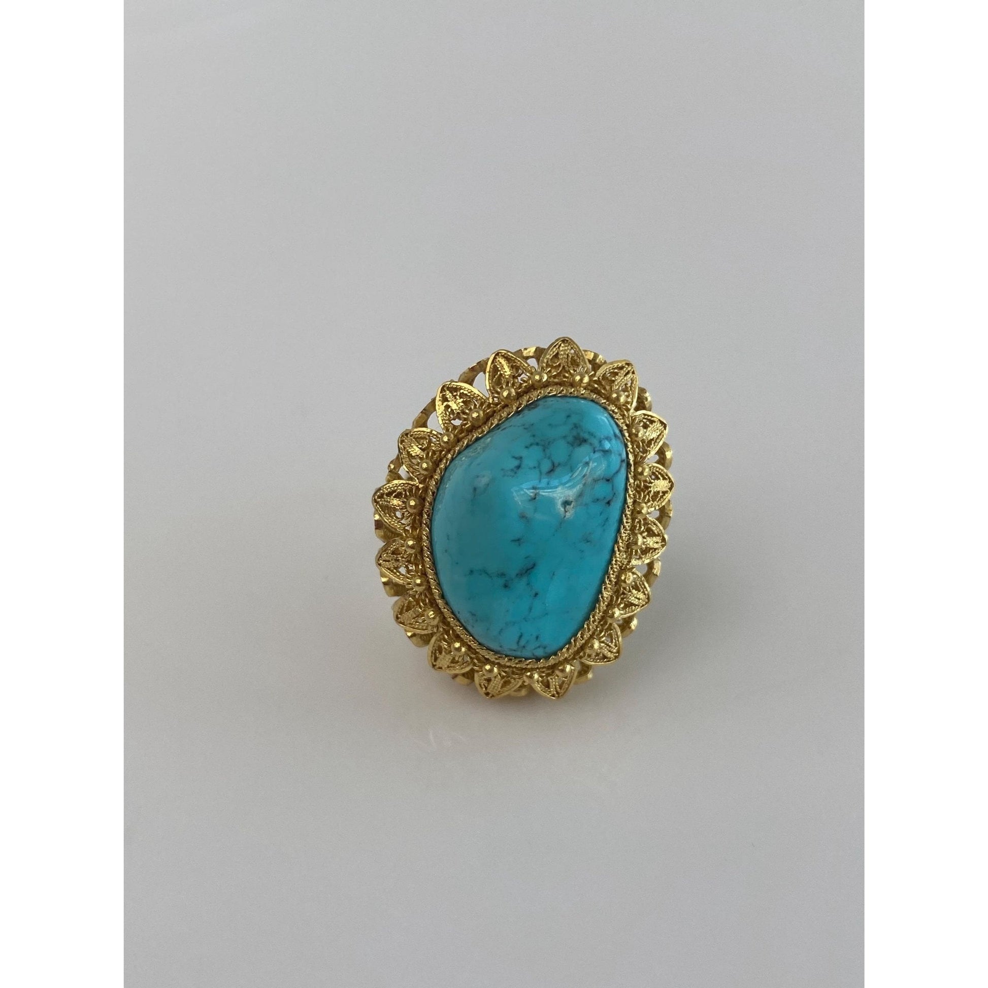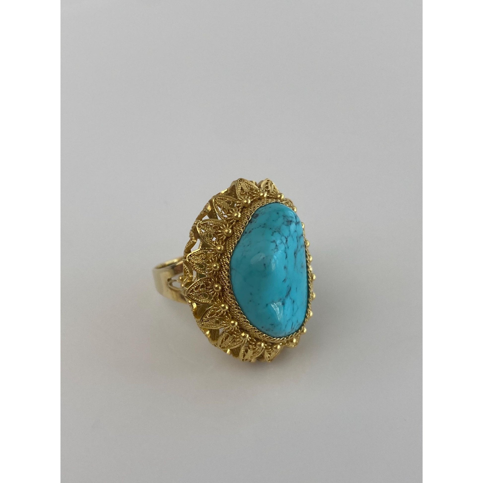 Vintage Solid 14k Yellow Gold Turquoise Ring - Size 4.5