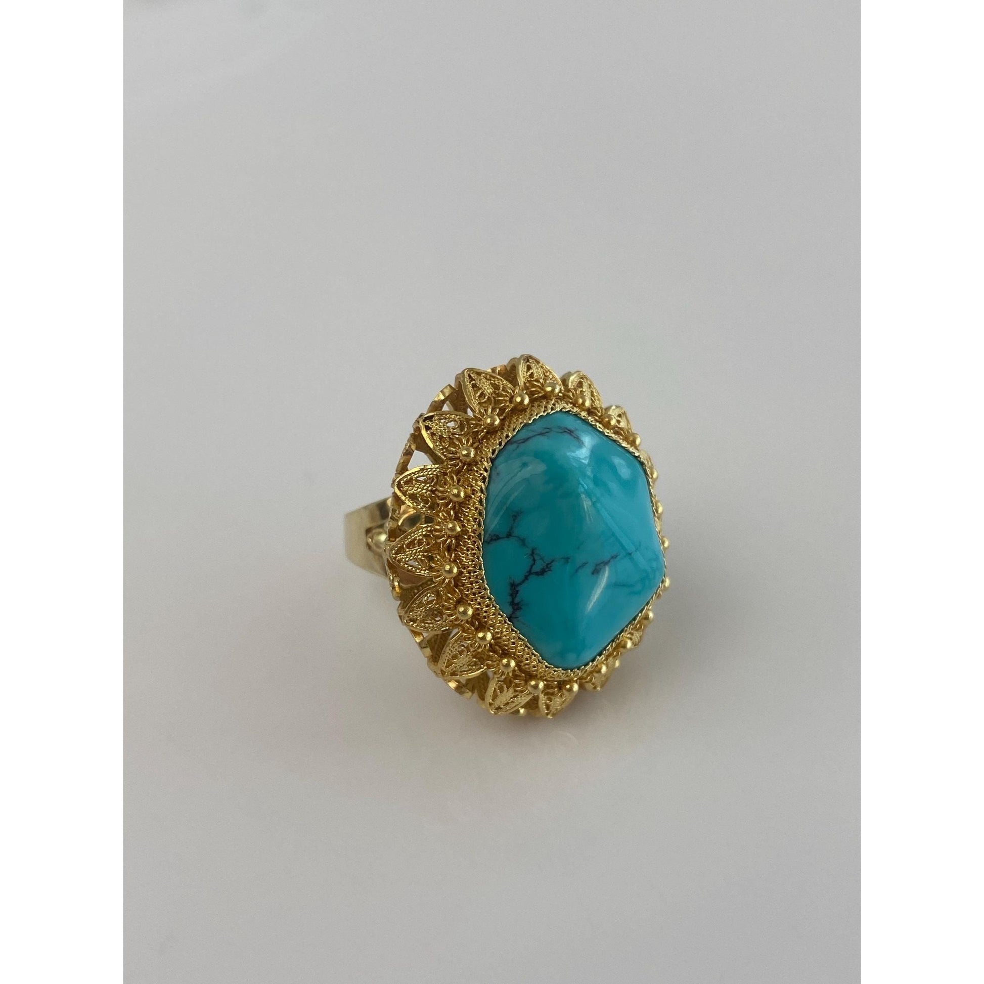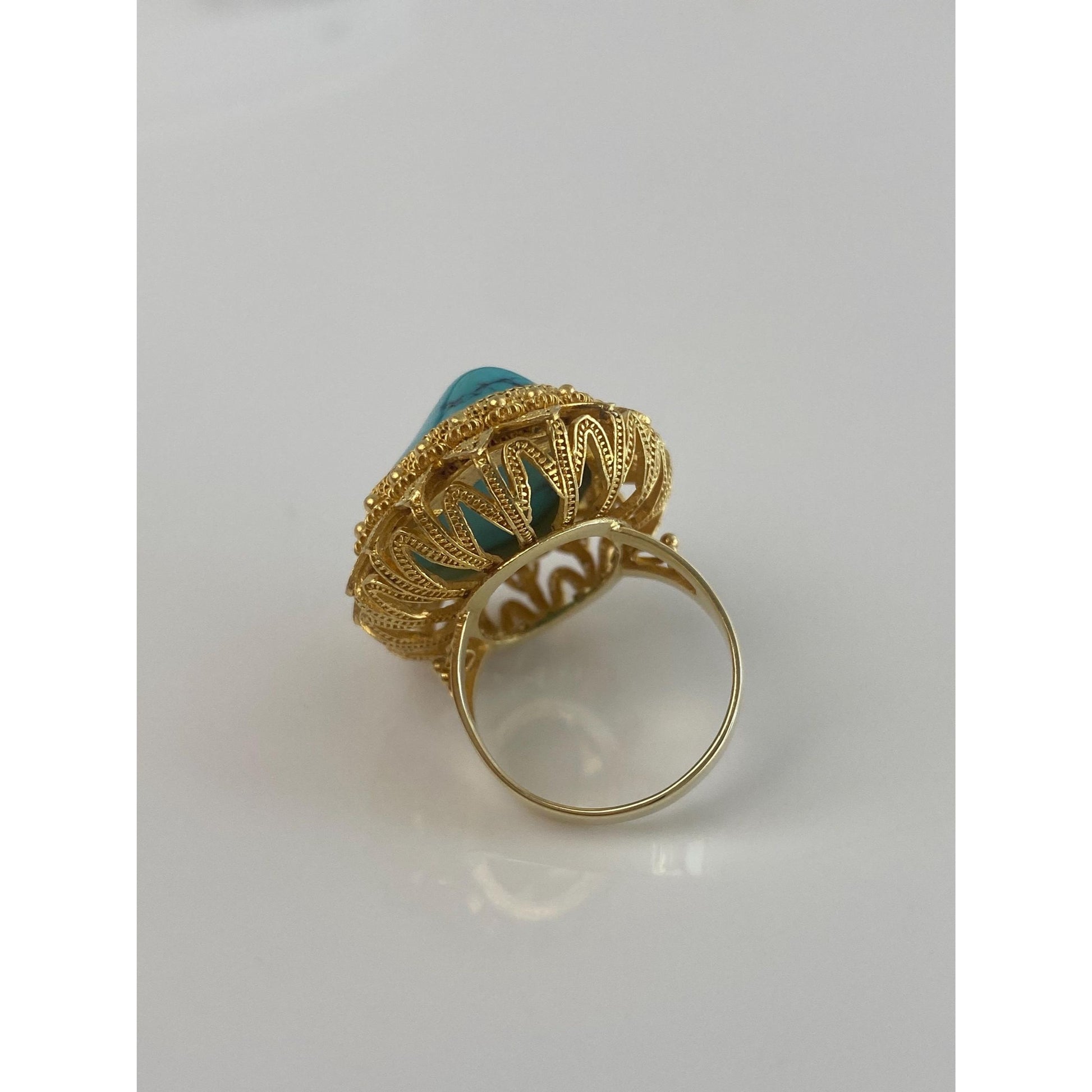 Vintage Solid 14k Yellow Gold Turquoise Ring - Size 4.75