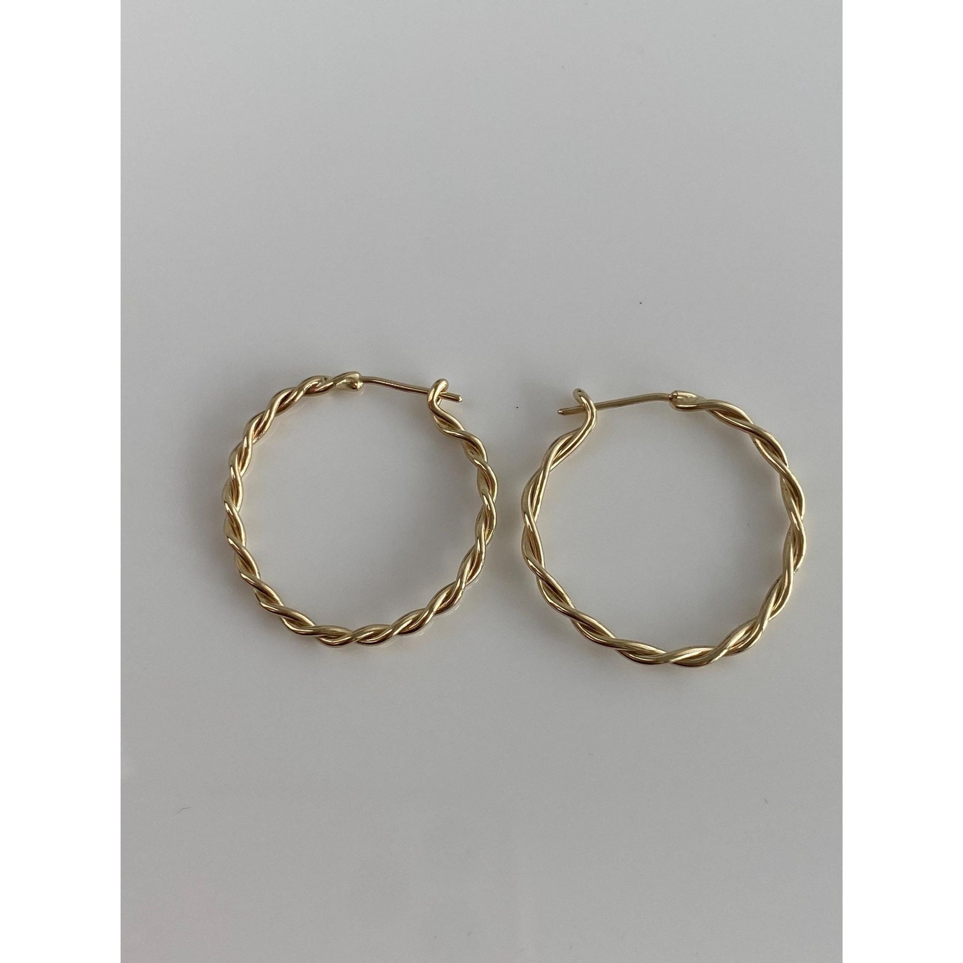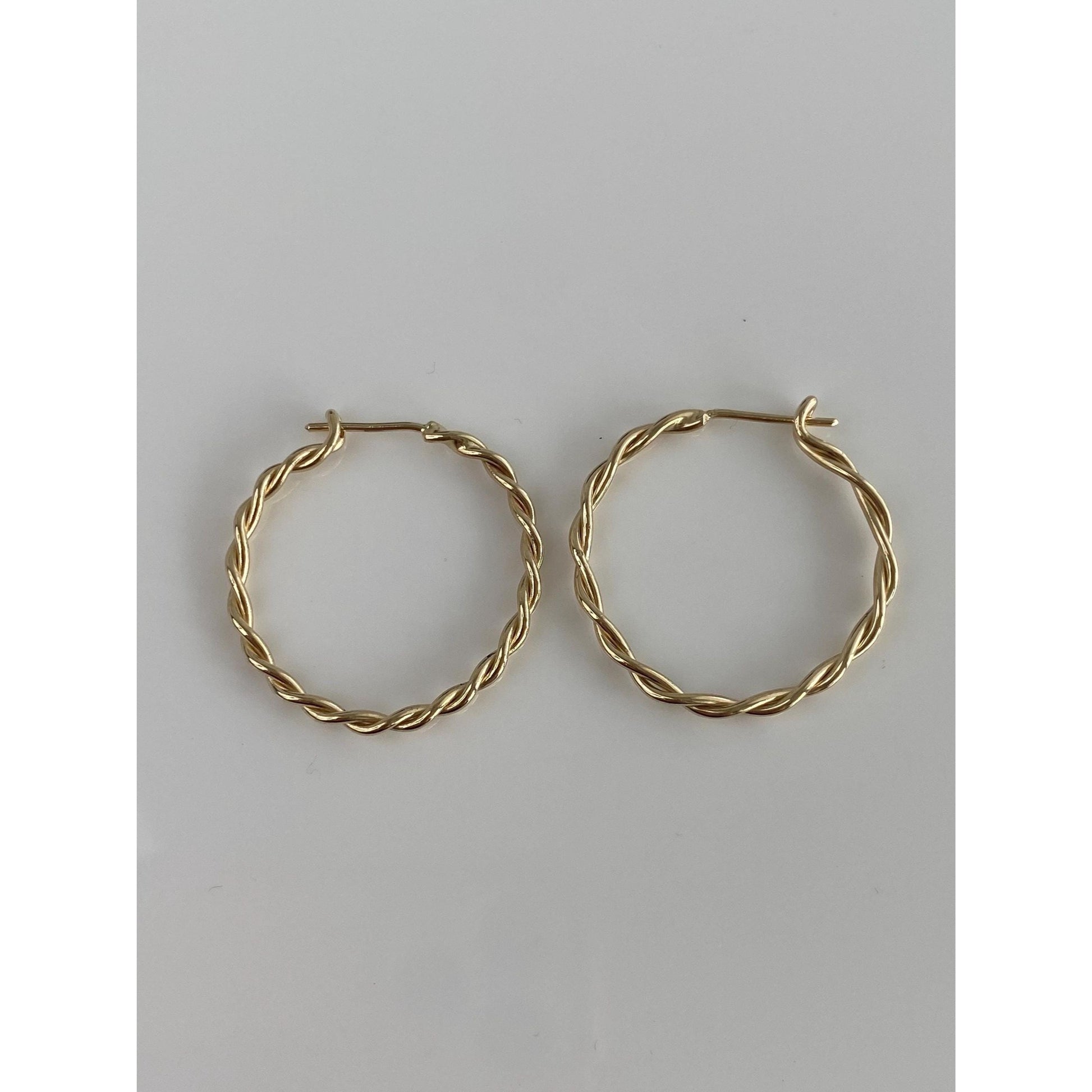 Vintage Solid 14k Yellow Gold Twist Hoop Earrings