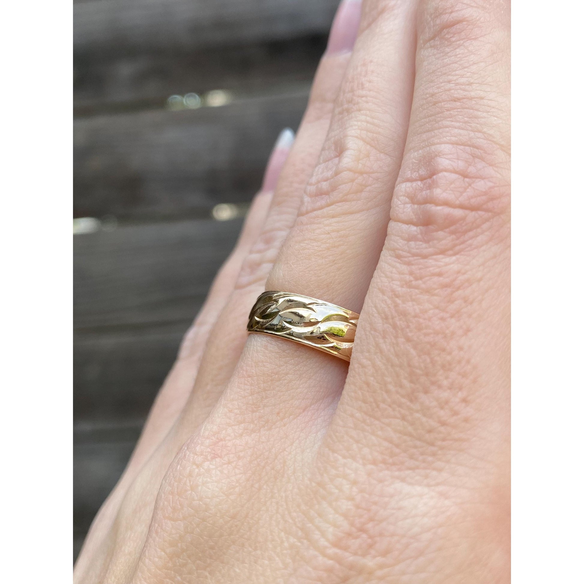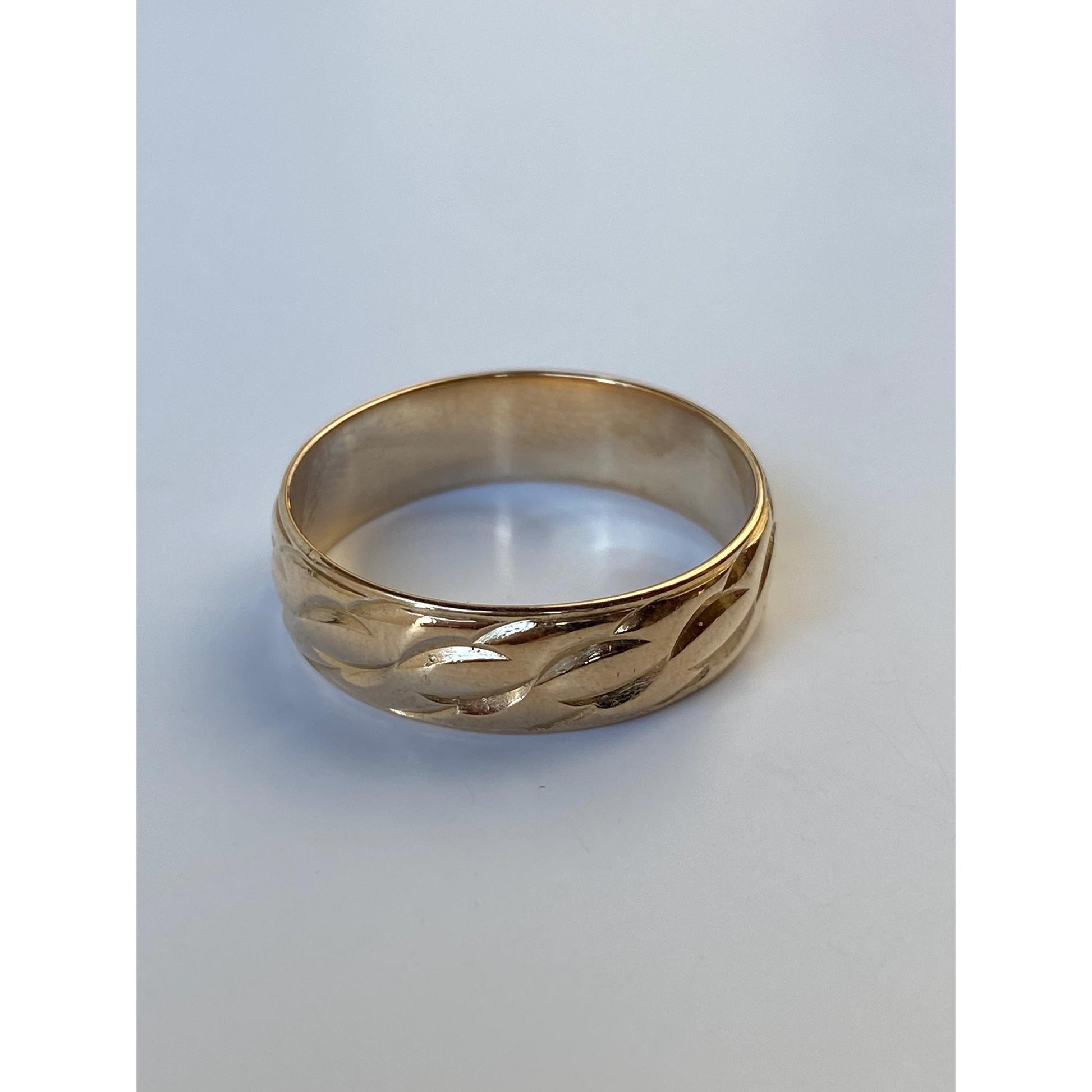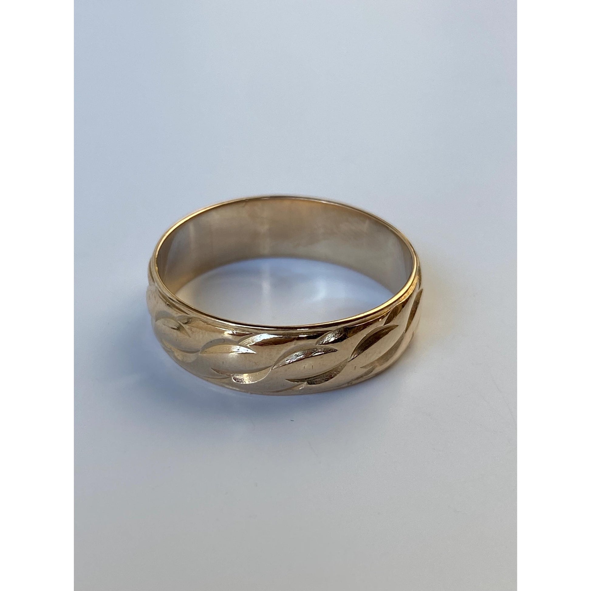 Vintage Solid 14k Yellow Gold Wavy Pattern Ring Band - Size 9.5