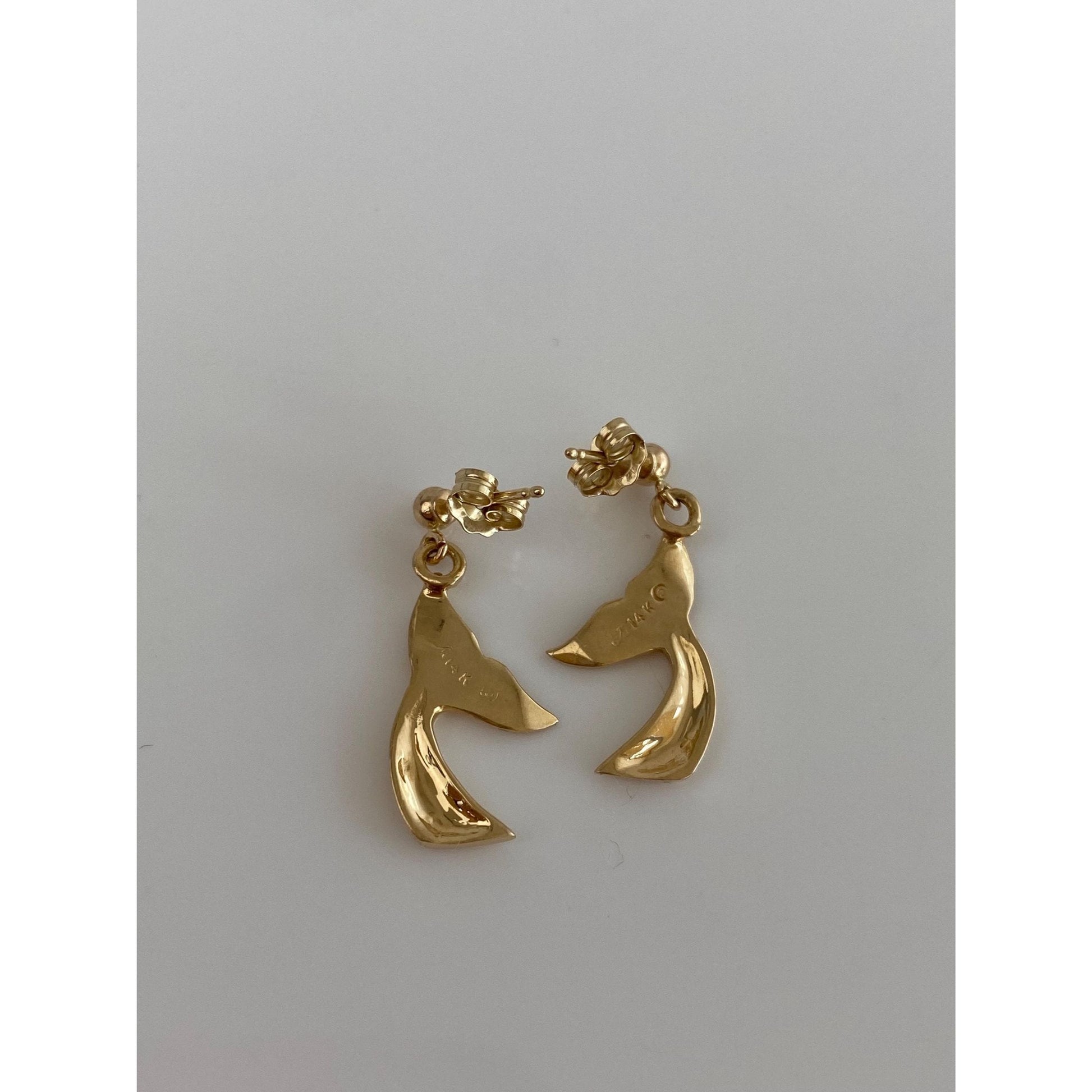 Vintage Solid 14k Yellow Gold Whale Tail Drop Earrings