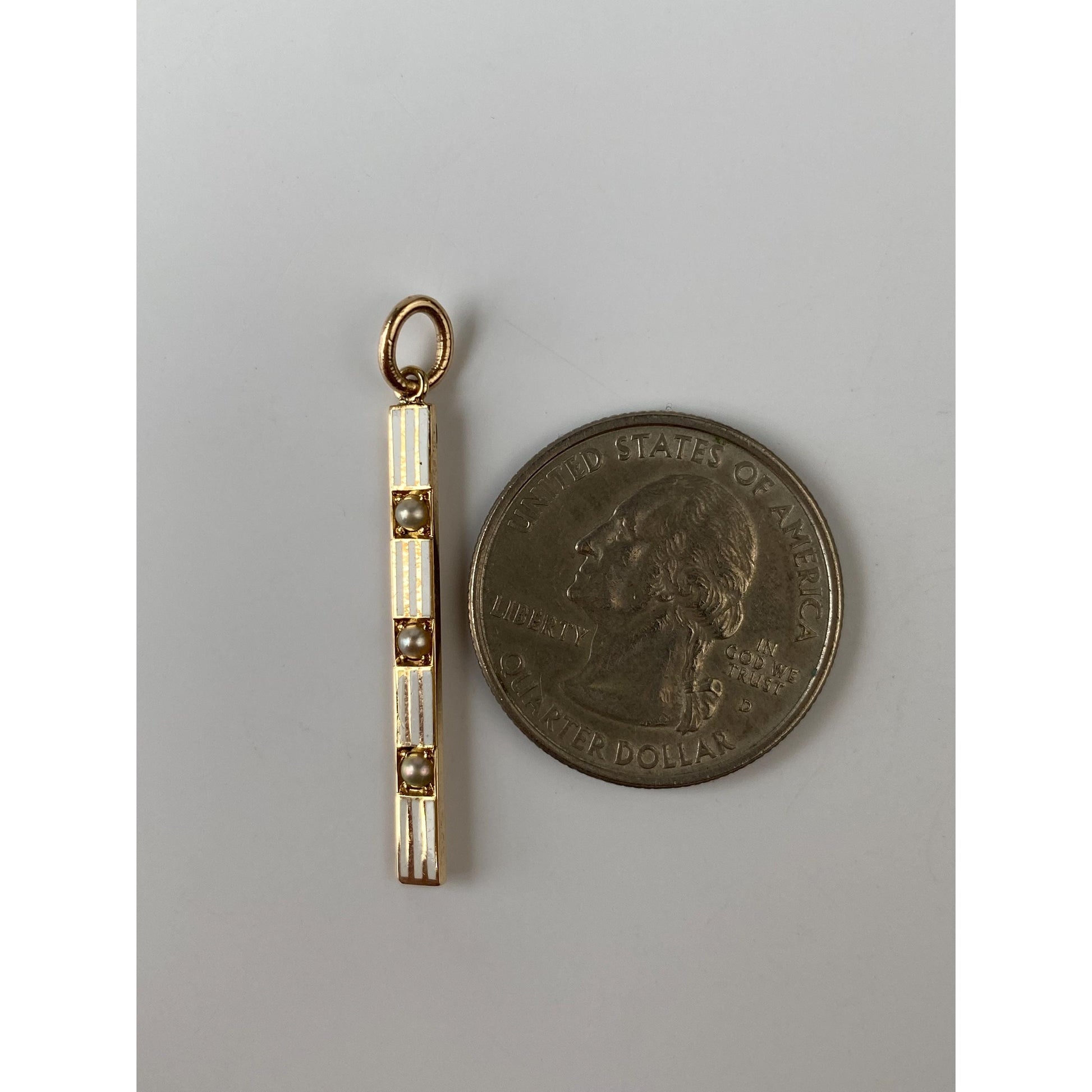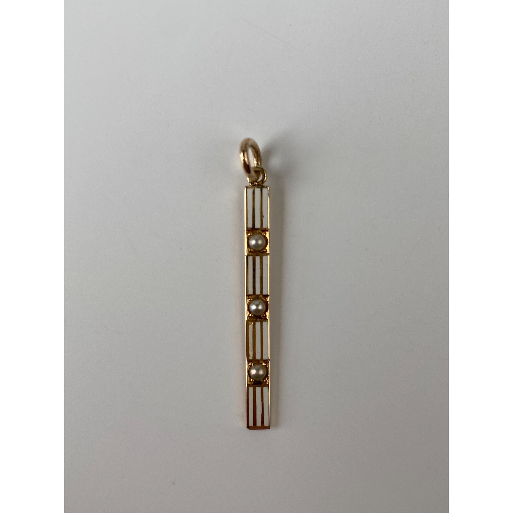 Vintage Solid 14k Yellow Gold White Enamel Pearl Row Charm