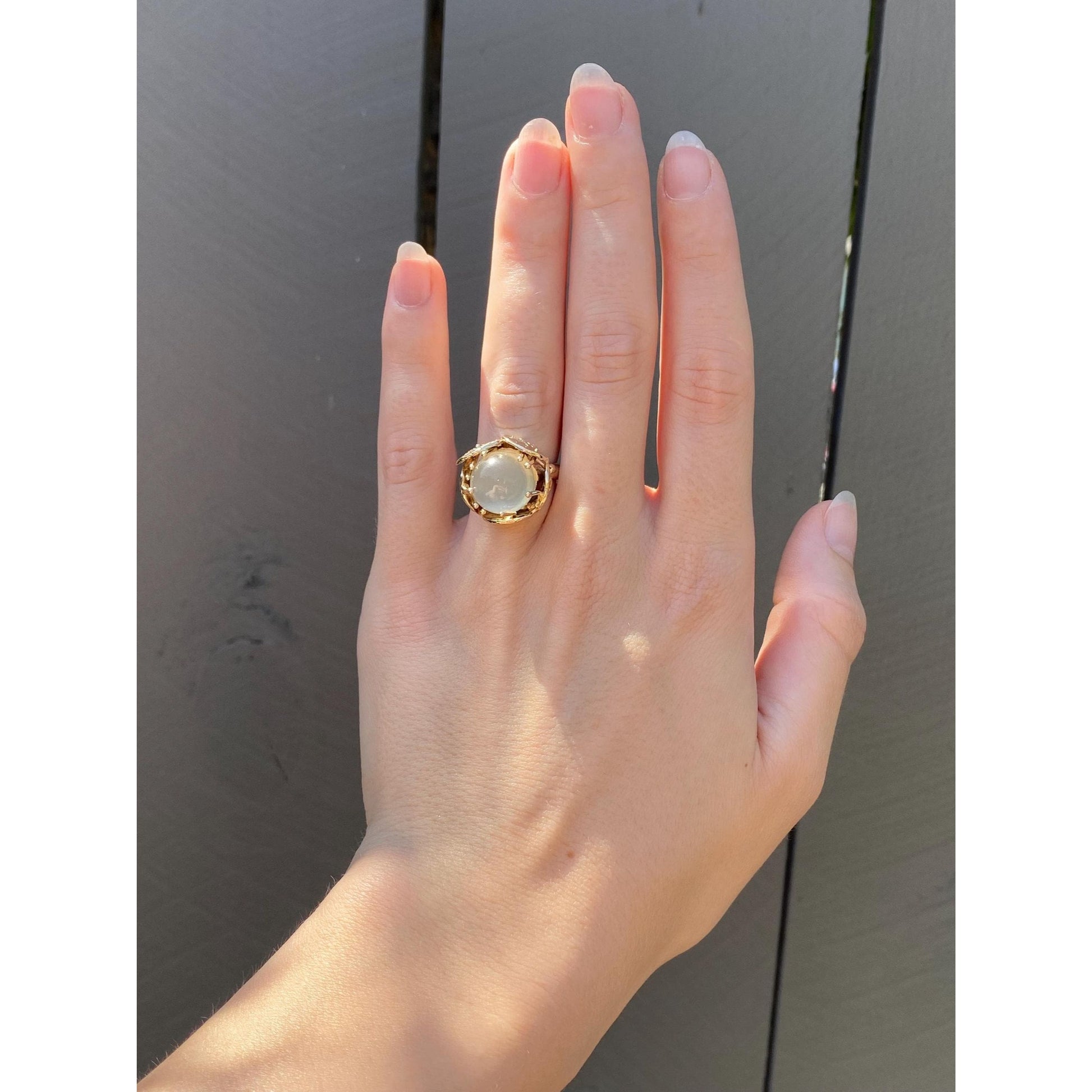Vintage Solid 14k Yellow Gold White Moonstone Cocktail Ring - Size 6.25