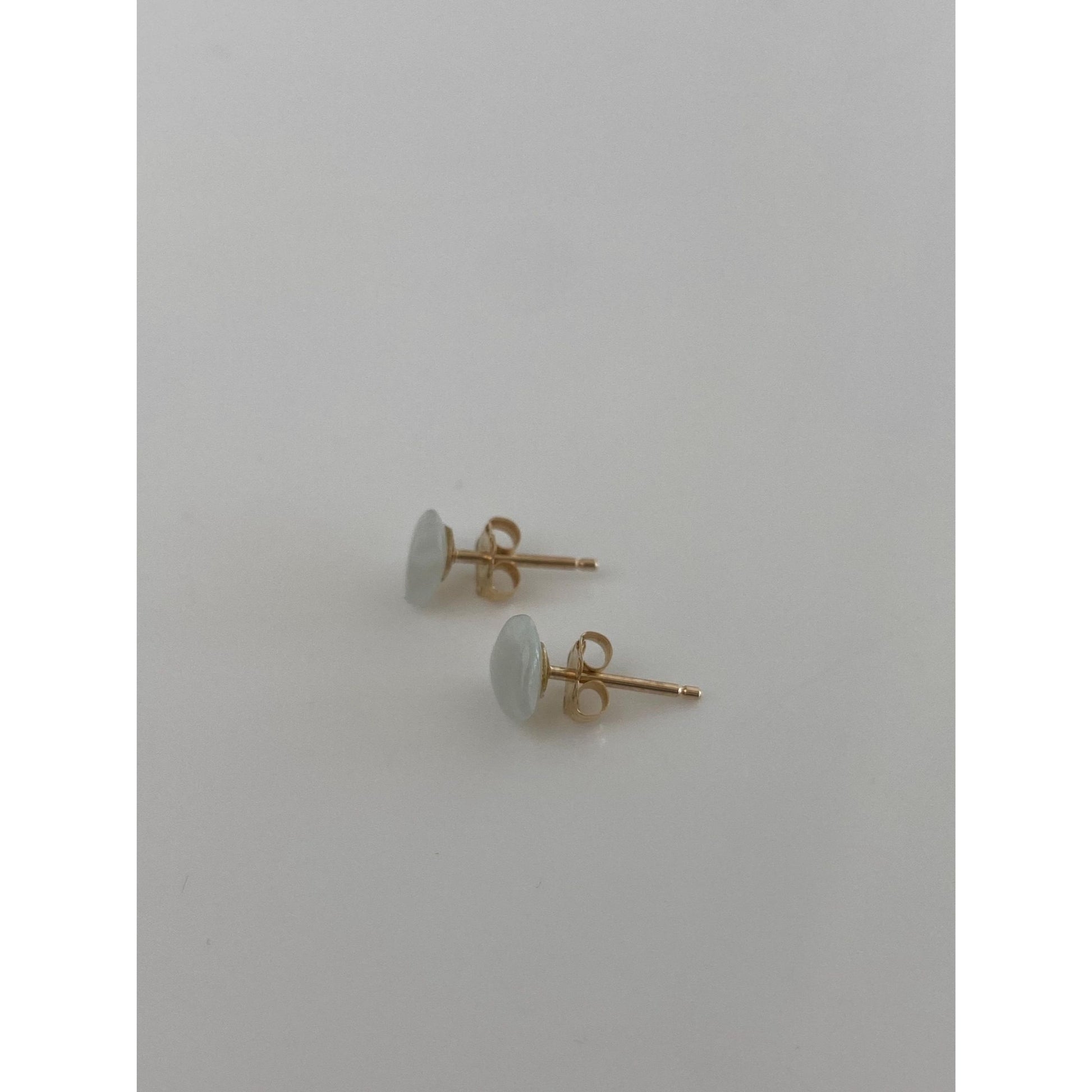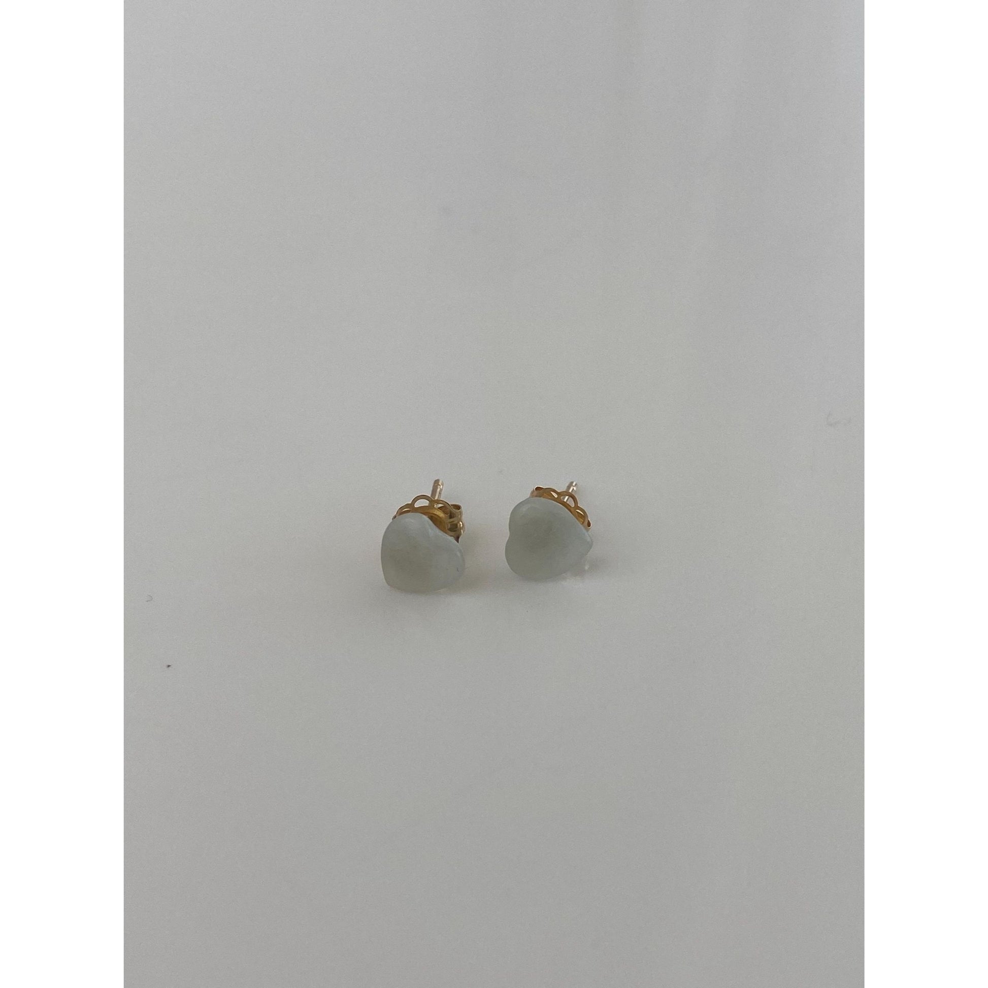 Vintage Solid 14k Yellow Gold White Quartz Heart Stud Earrings