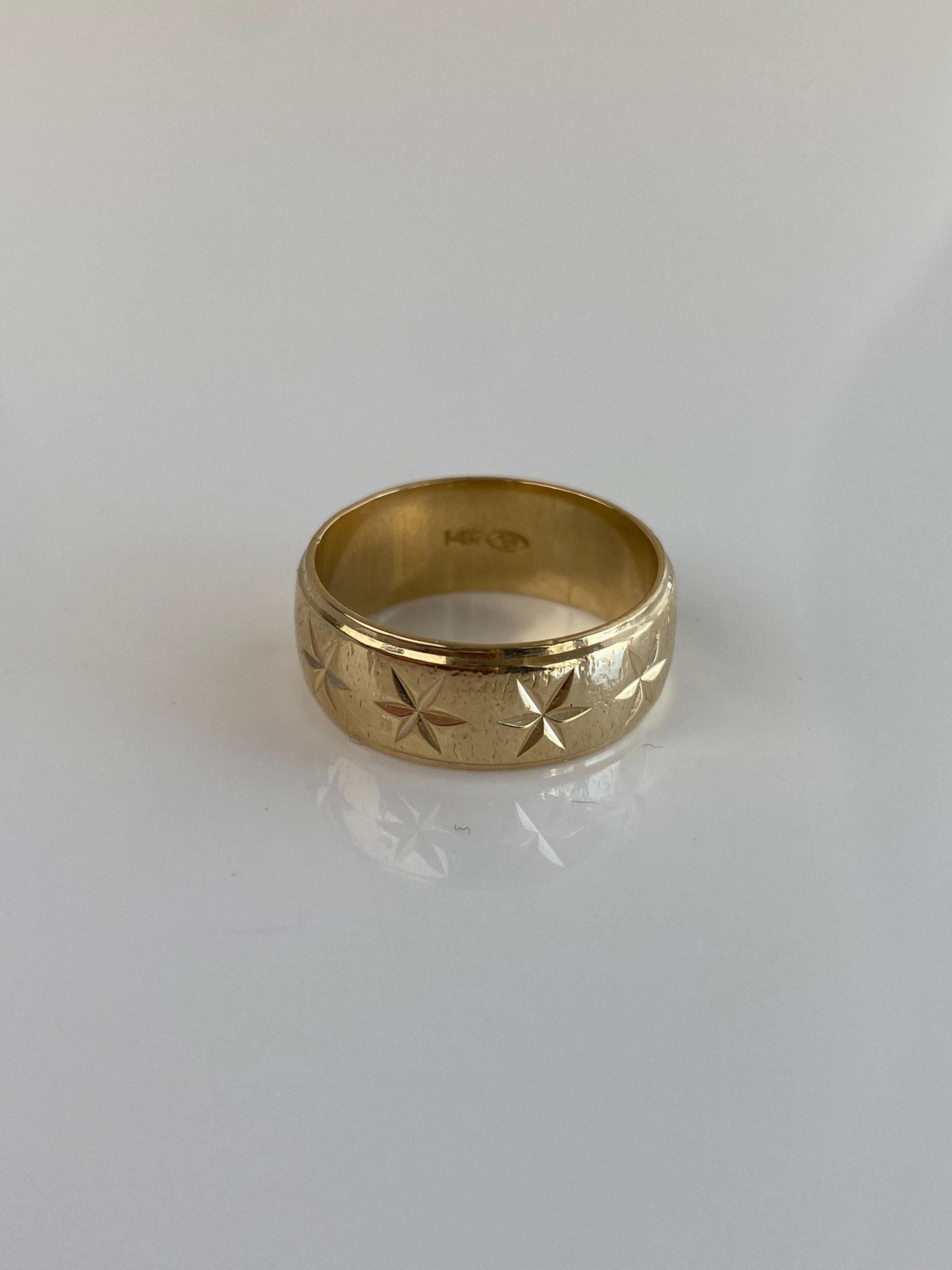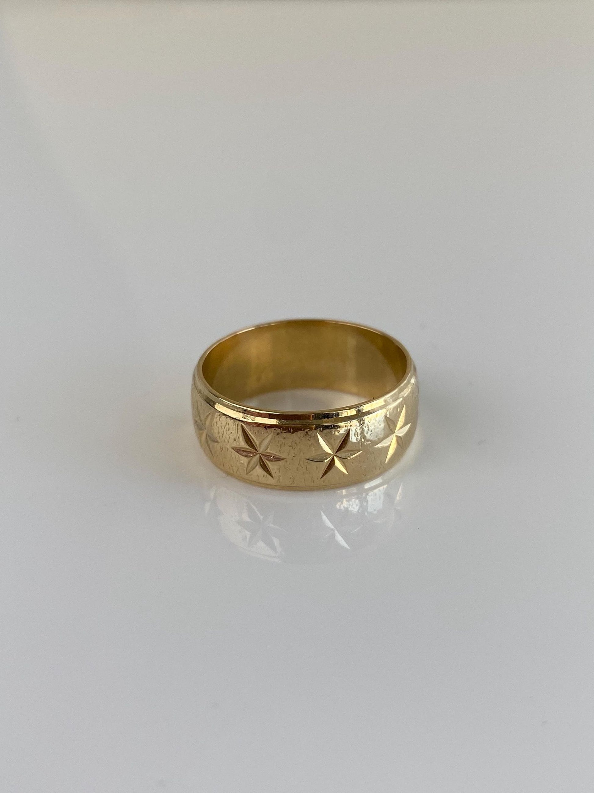 Vintage Solid 14k Yellow Gold Wide Star Set Design Ring Band - Size 6.75-7