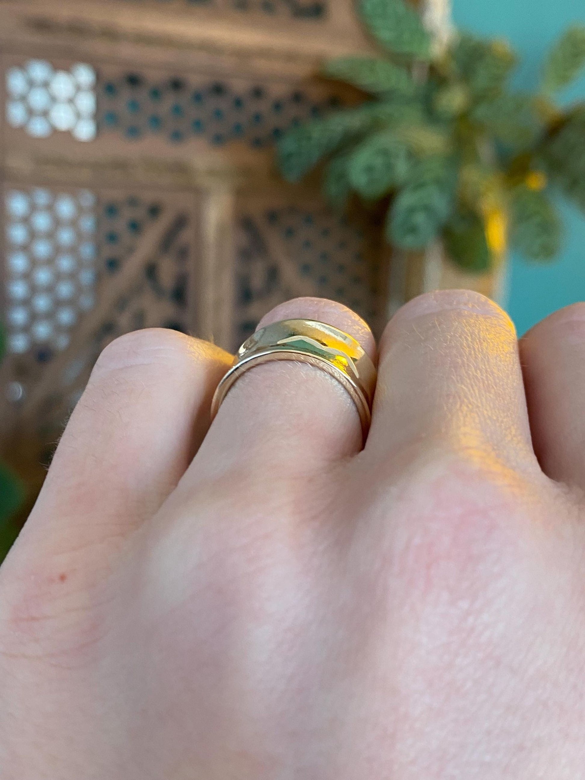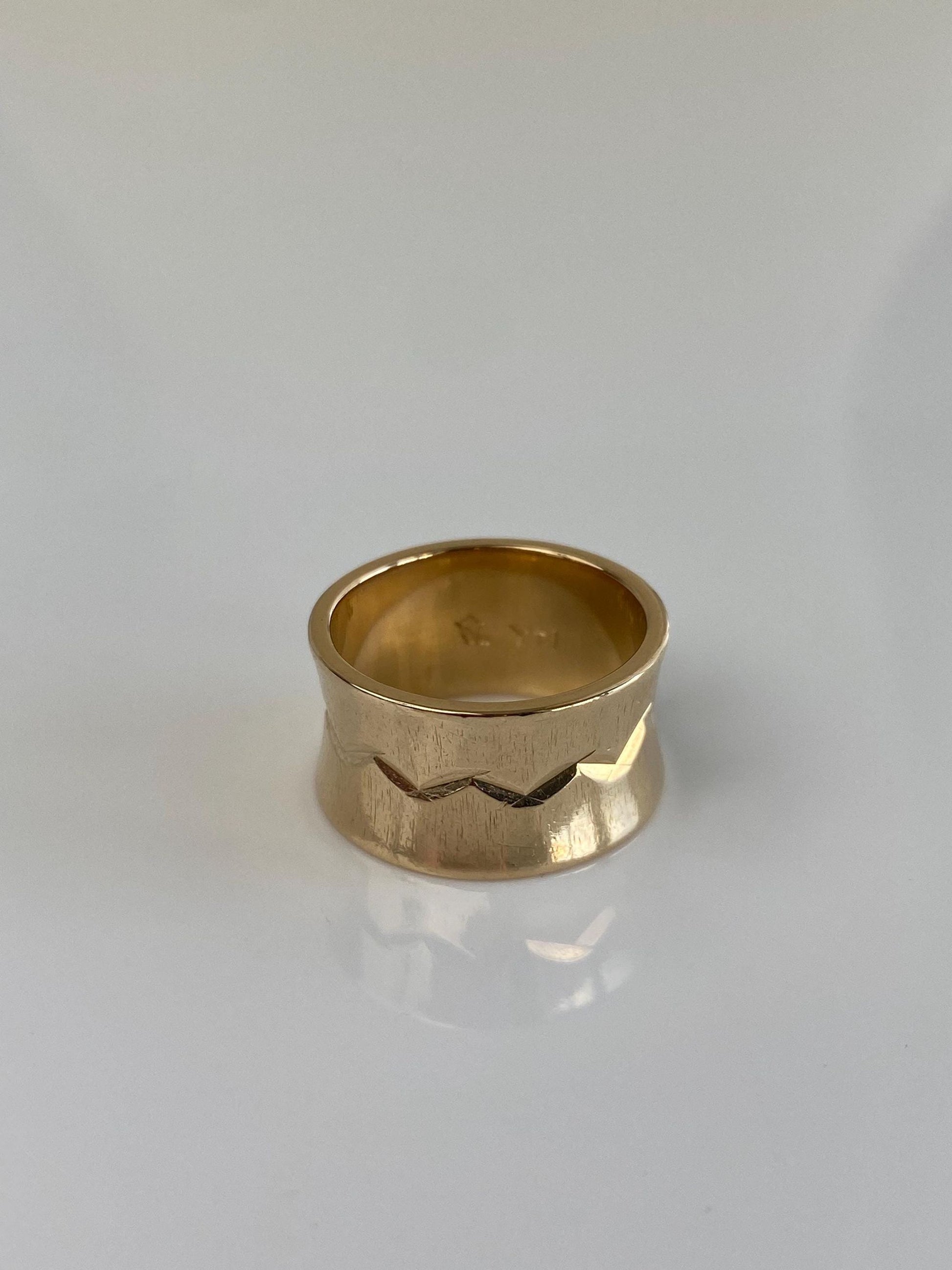 Vintage Solid 14k Yellow Gold Wide Zig Zag Design Ring Band - Size 5