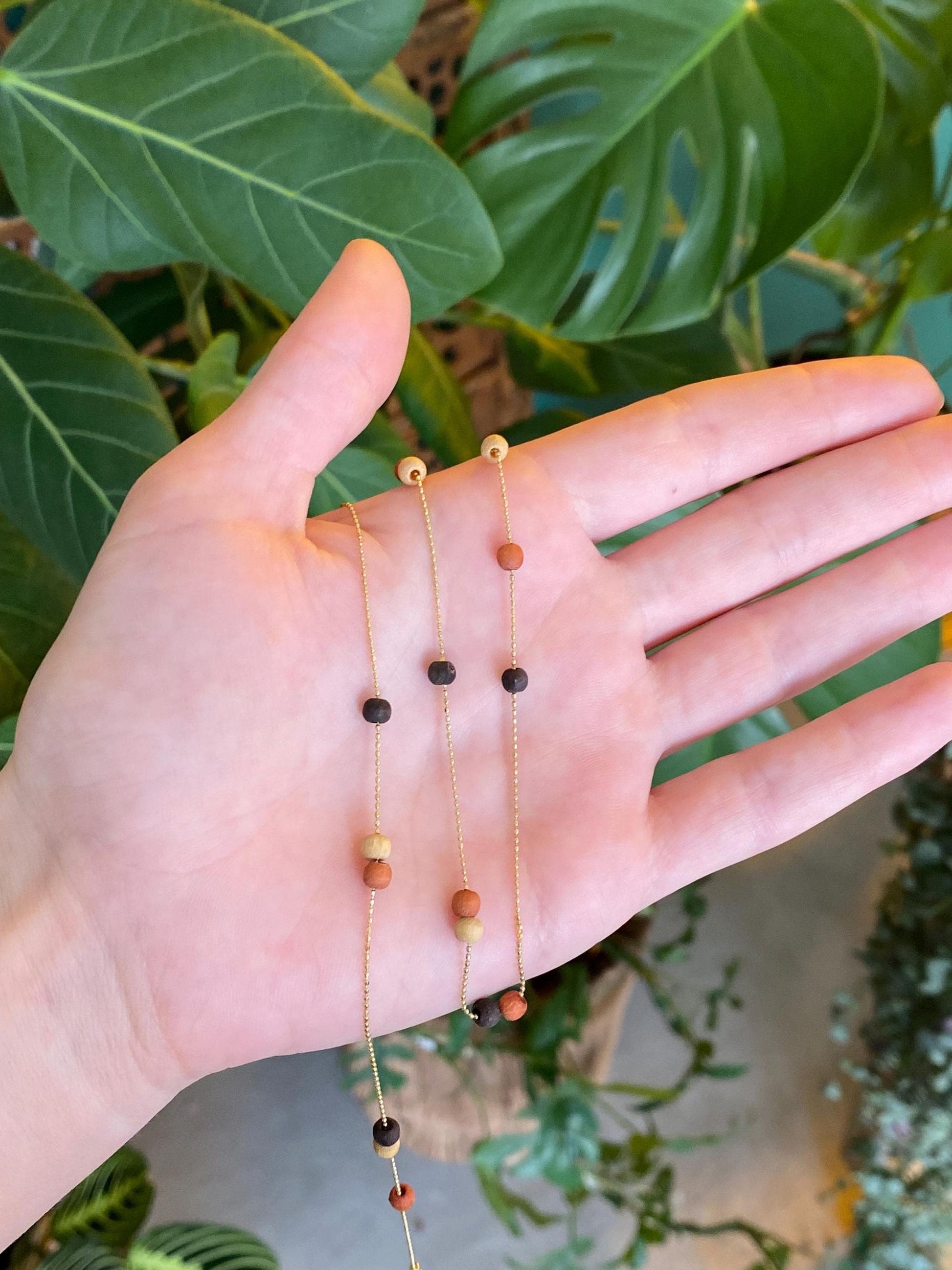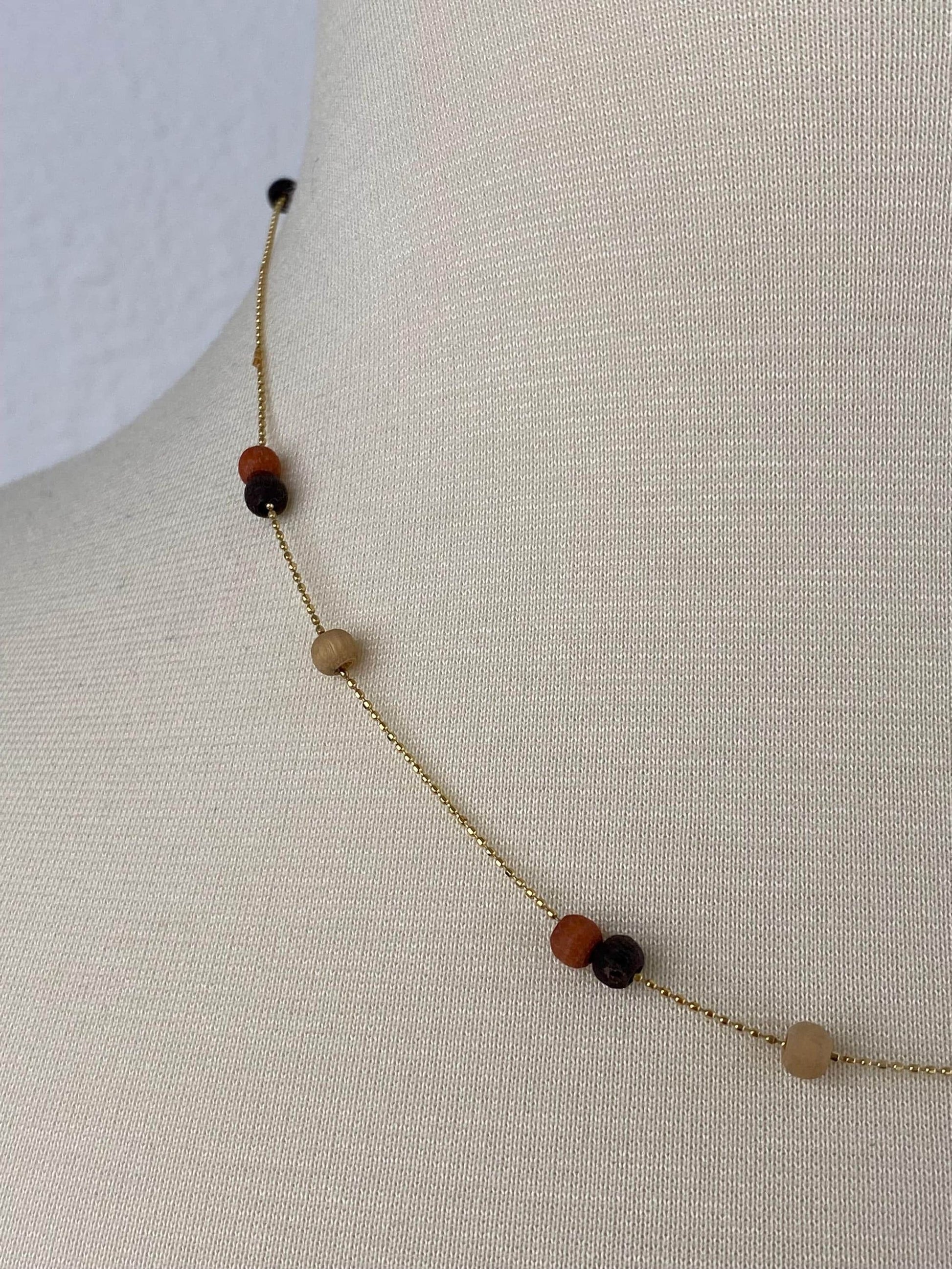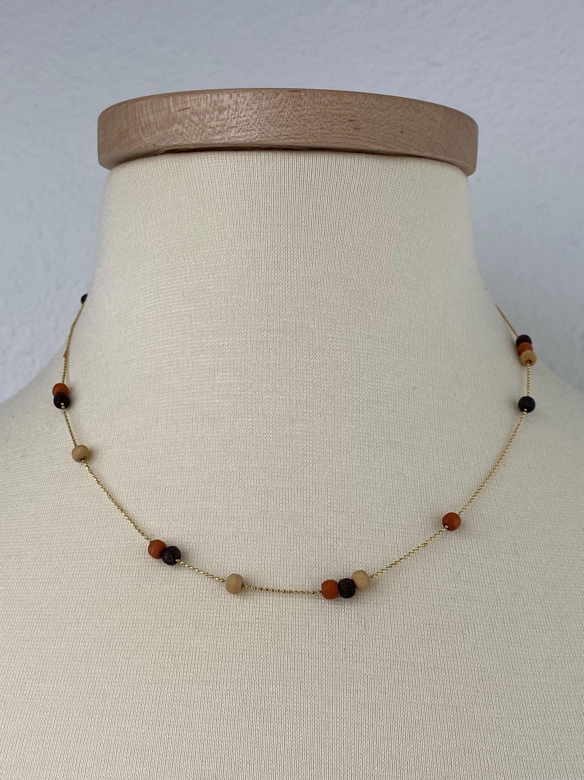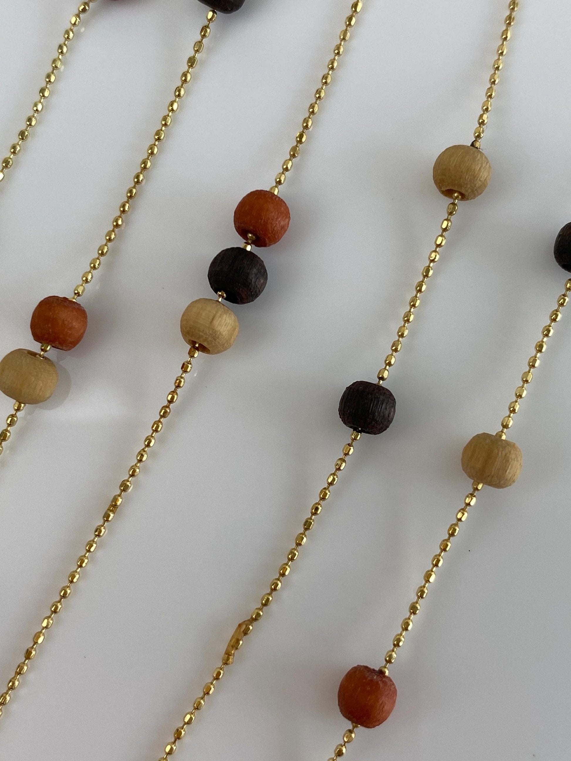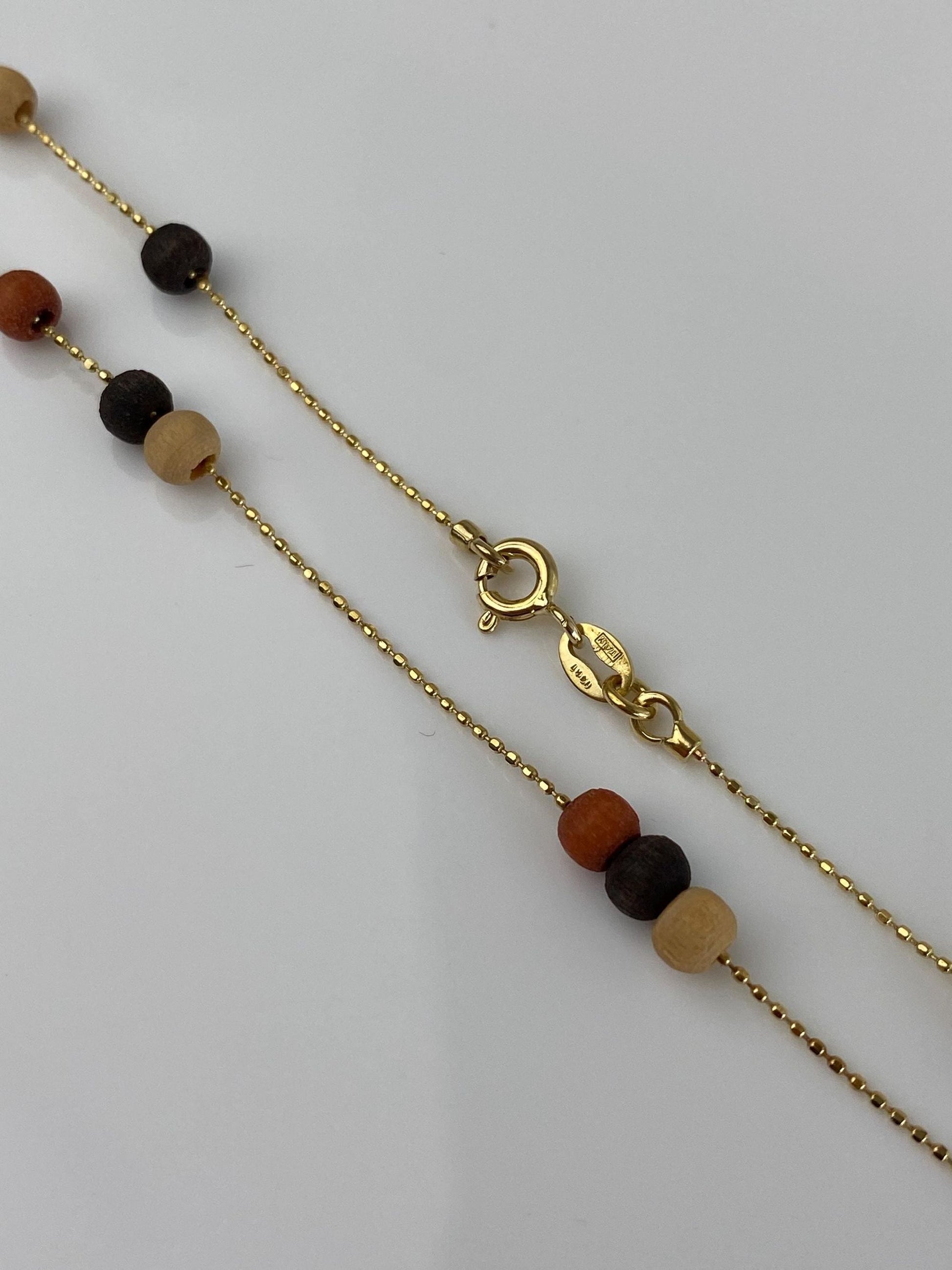 Vintage Solid 14k Yellow Gold Wooden Bead Dainty Ball Chain Necklace - 18 inches