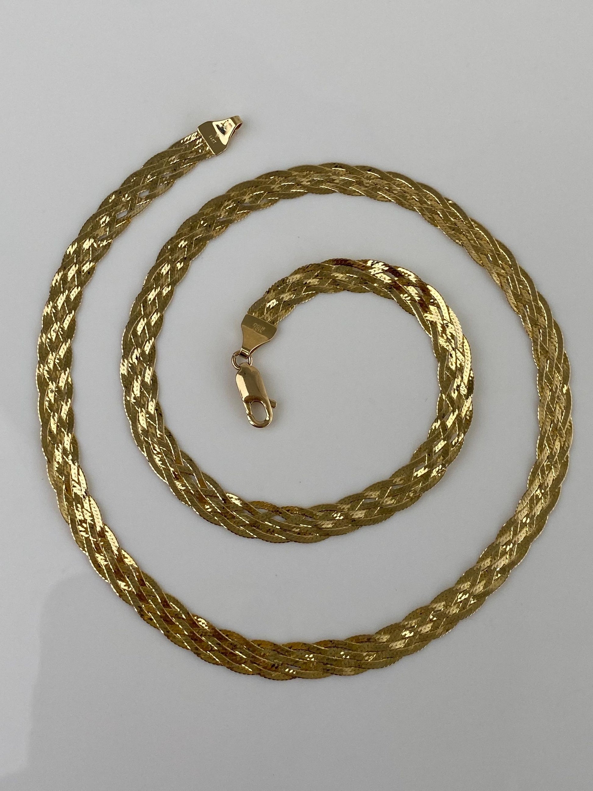 Vintage Solid 14k Yellow Gold Woven Flat Chain Necklace - 18 inches