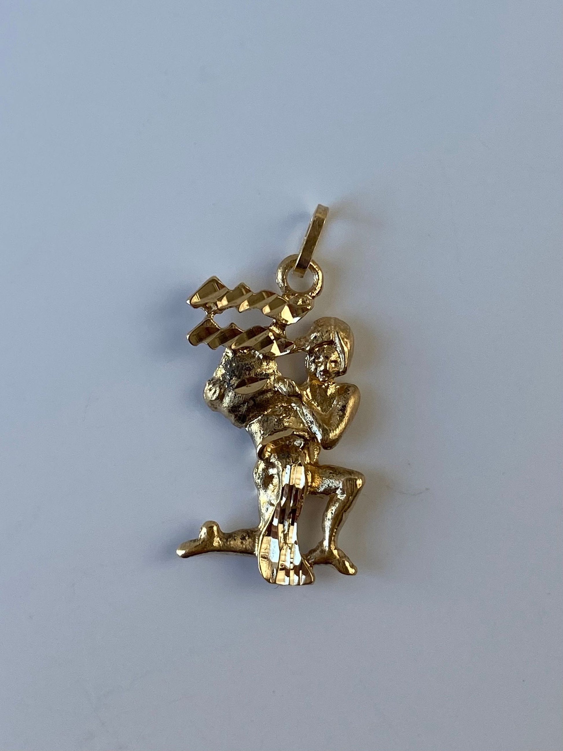 Vintage Solid 14k Yellow Gold Zodiac Astrology Aquarius Charm