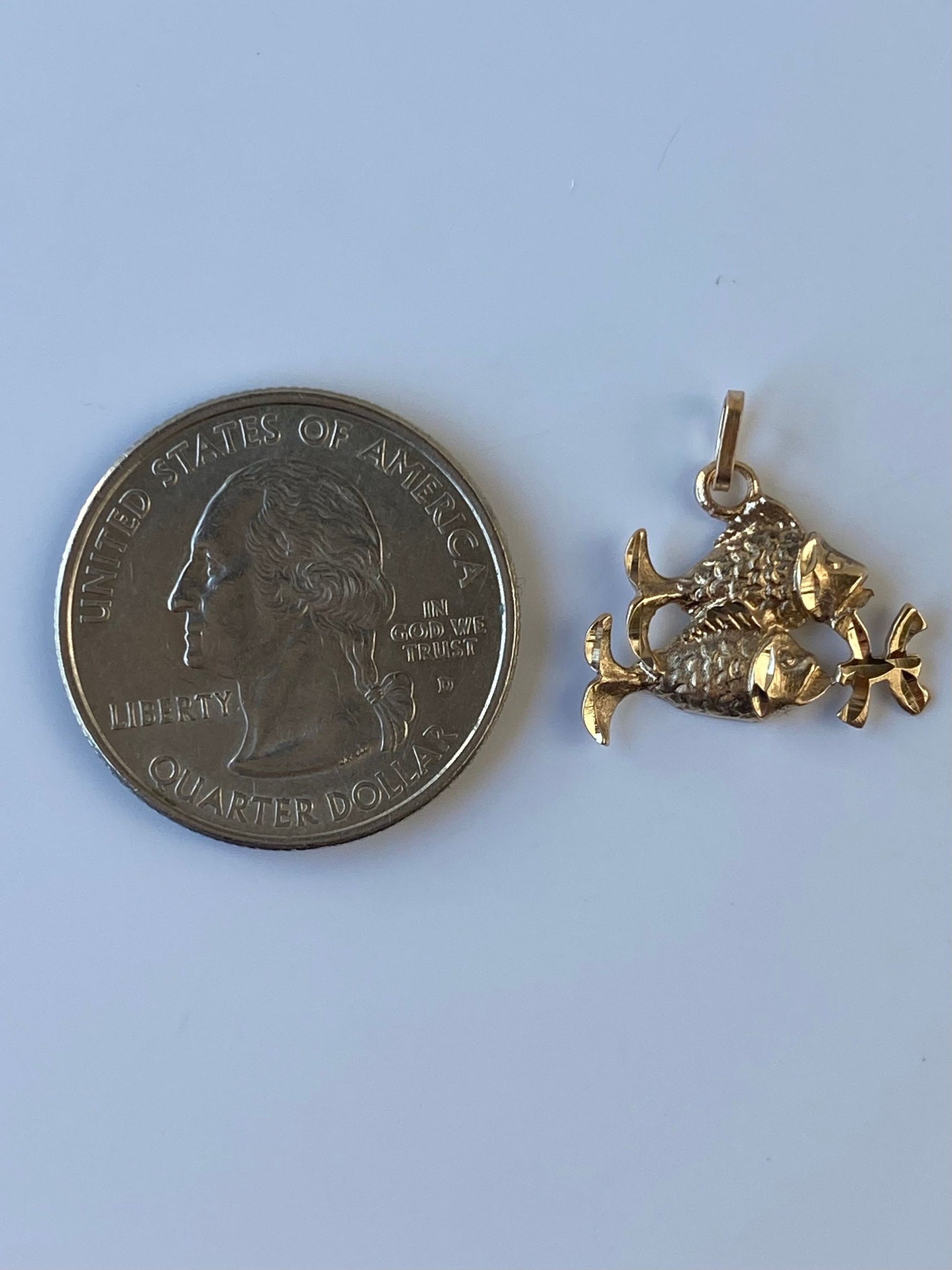 Vintage Solid 14k Yellow Gold Zodiac Astrology Pisces Fish Charm