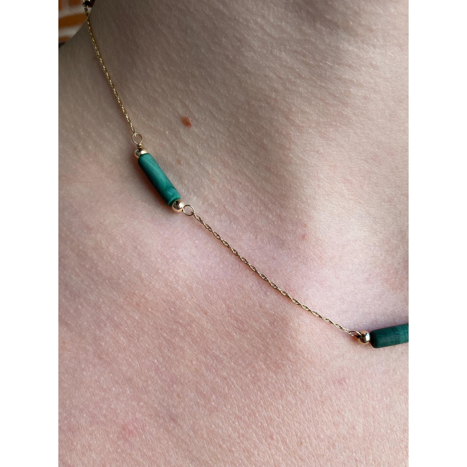 Vintage Solid 14k Yellow Malachite Gold Ball Twist Chain Necklace - 15.75 inches