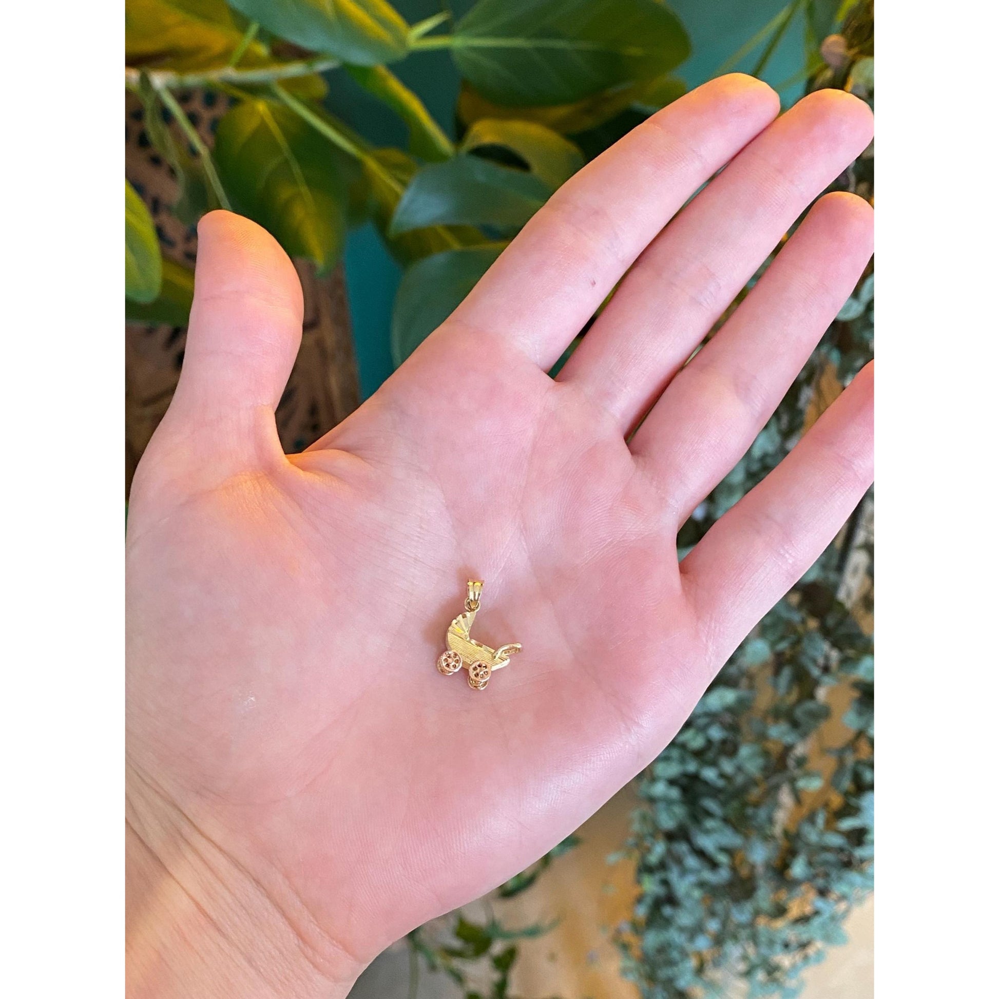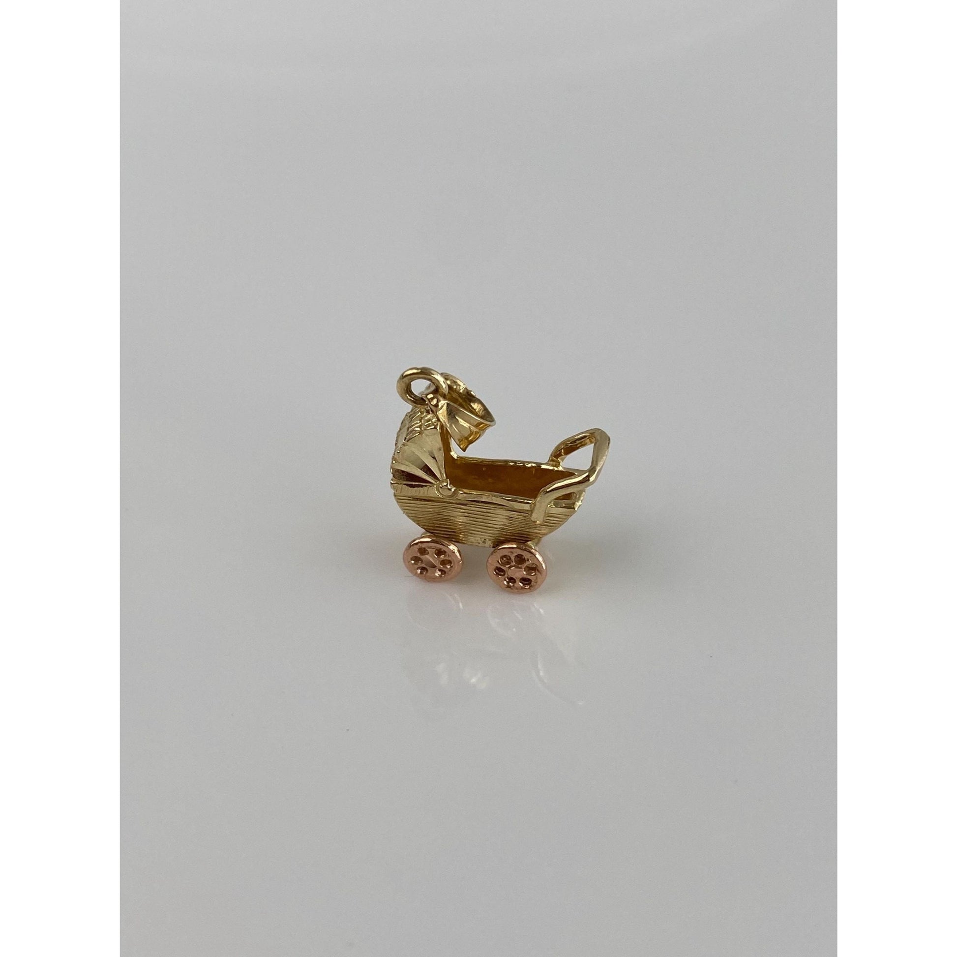 Vintage Solid 14k Yellow & Rose Gold Articulated Baby Carriage Charm