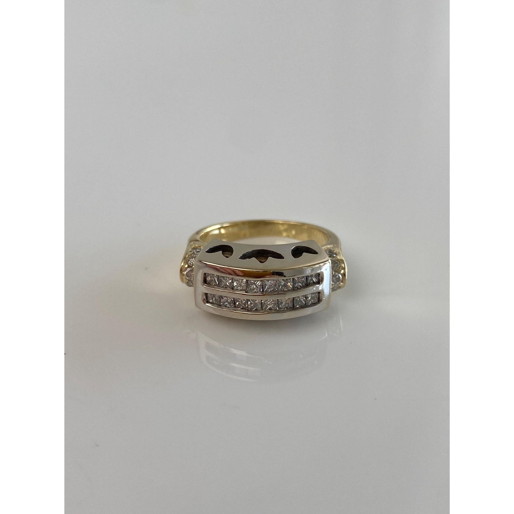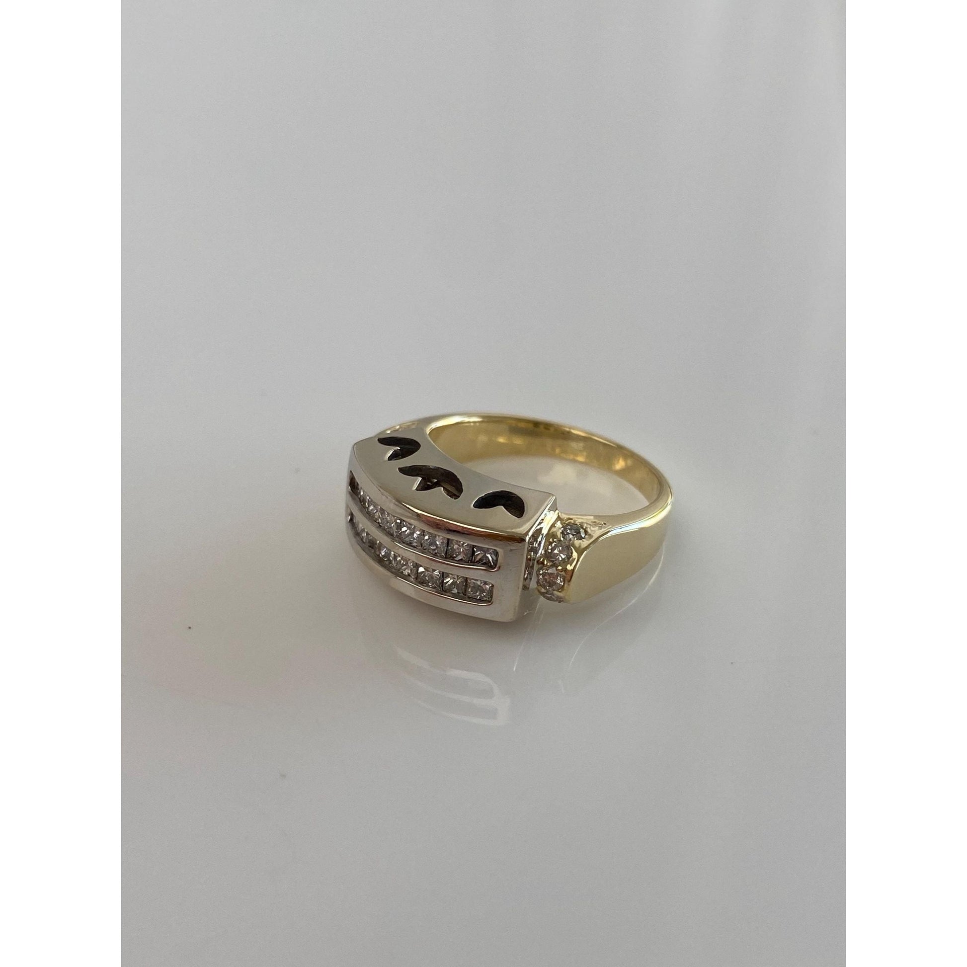 Vintage Solid 14k Yellow & White Gold Diamond Ring Band - Size 7