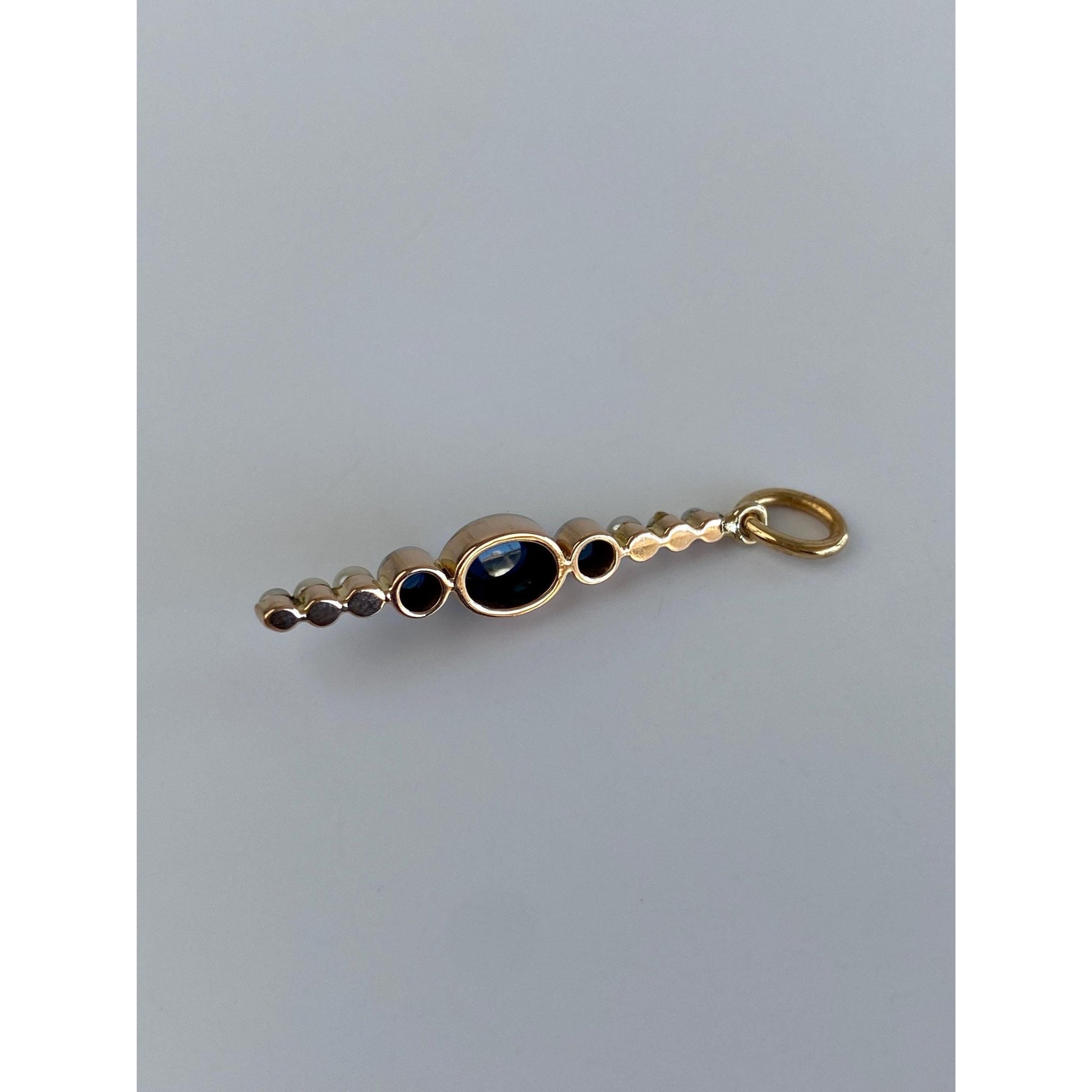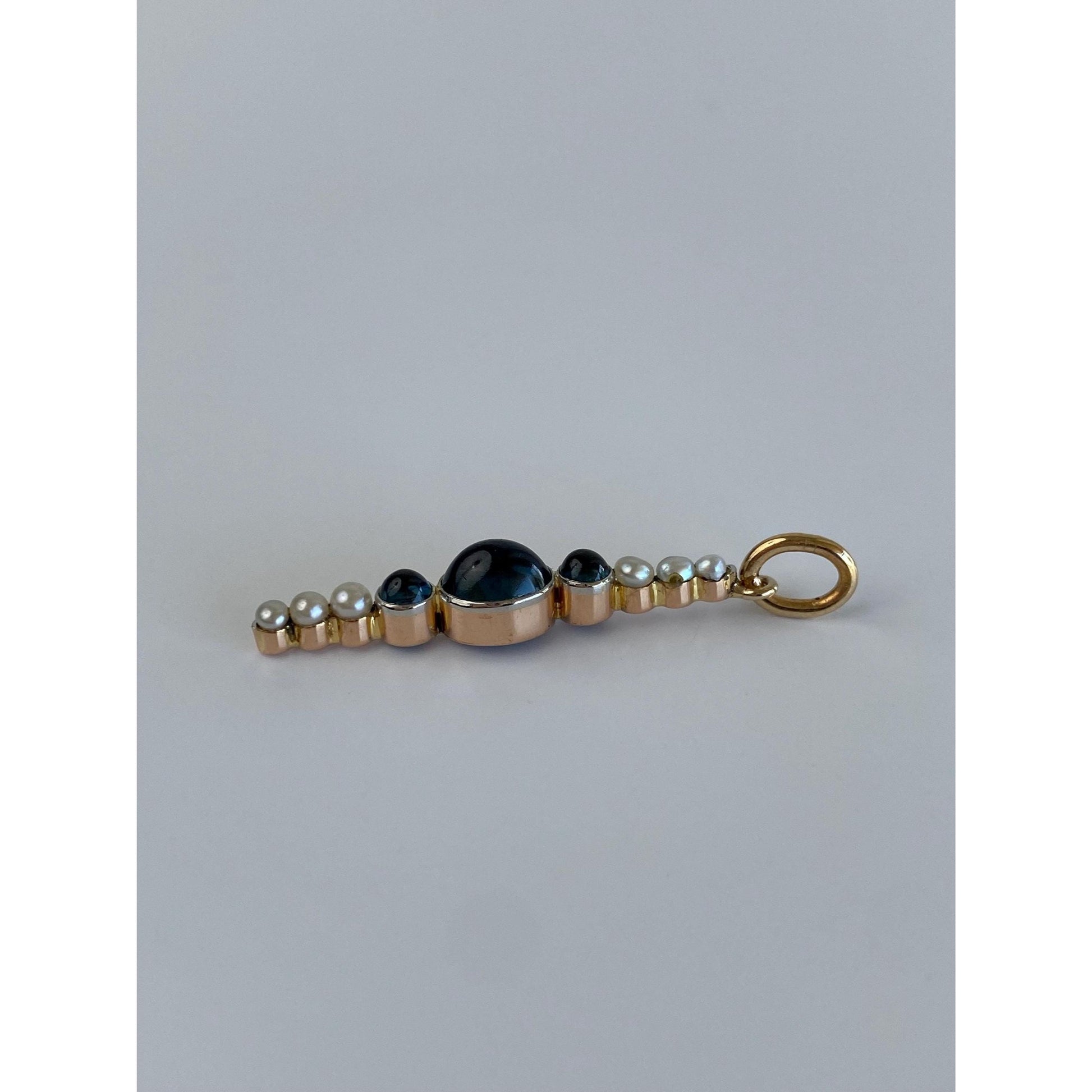 Vintage Solid 18k Rosey Gold Blue Sapphire Pearl Row Charm