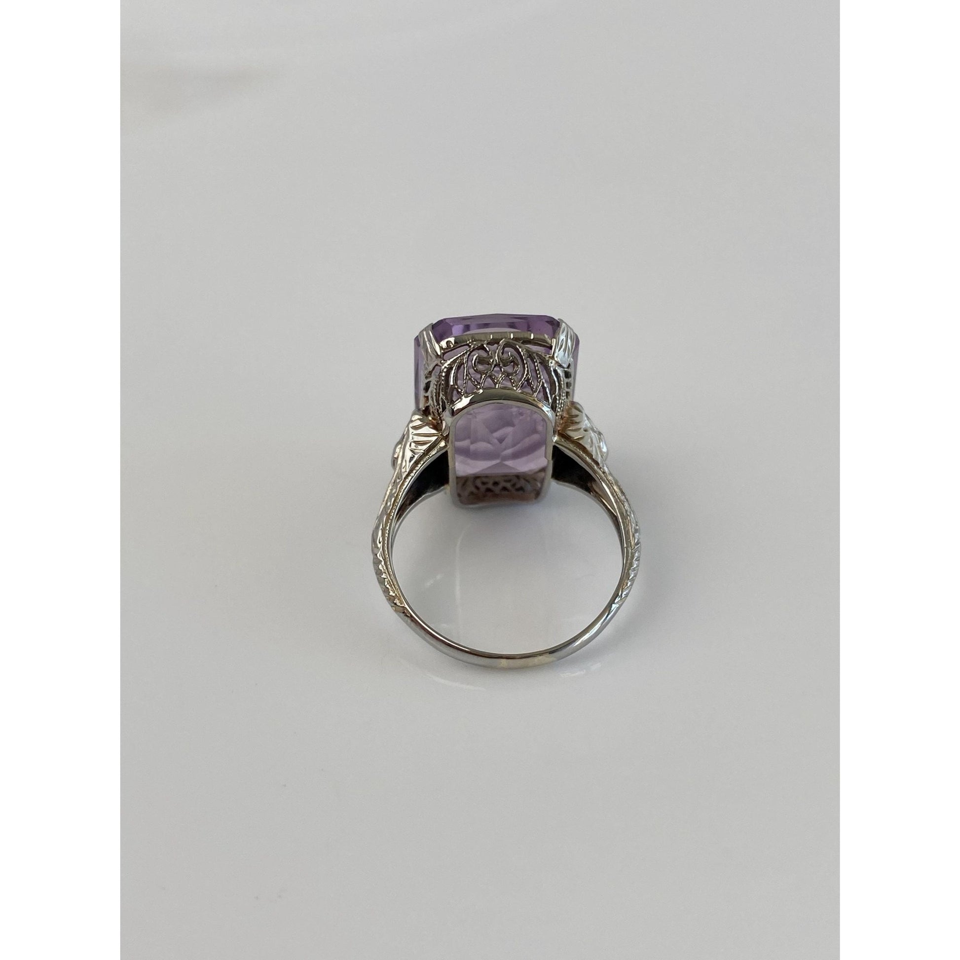 Vintage Solid 18k White Gold Amethyst Intaglio Cameo Ring - Size 6.5