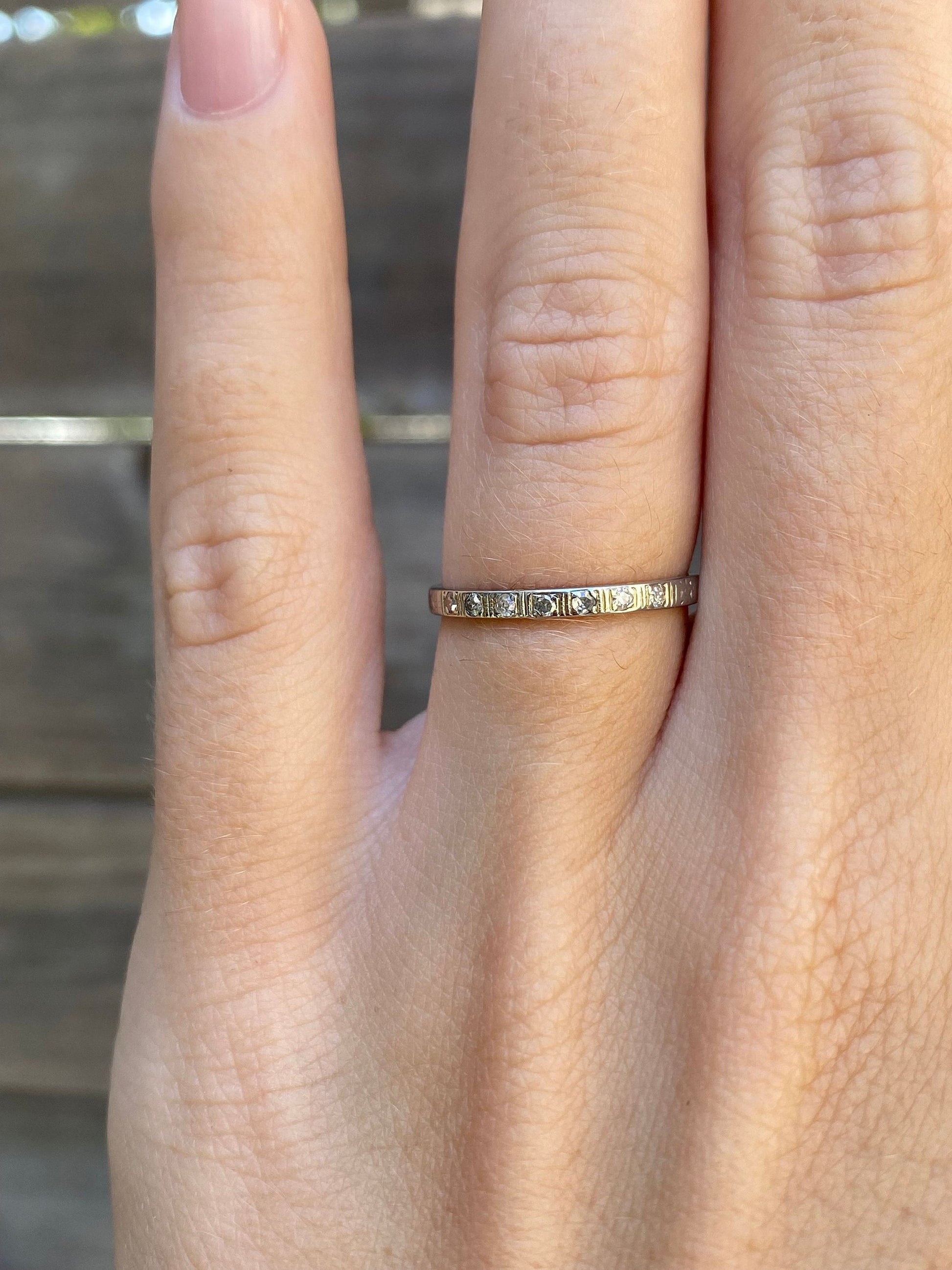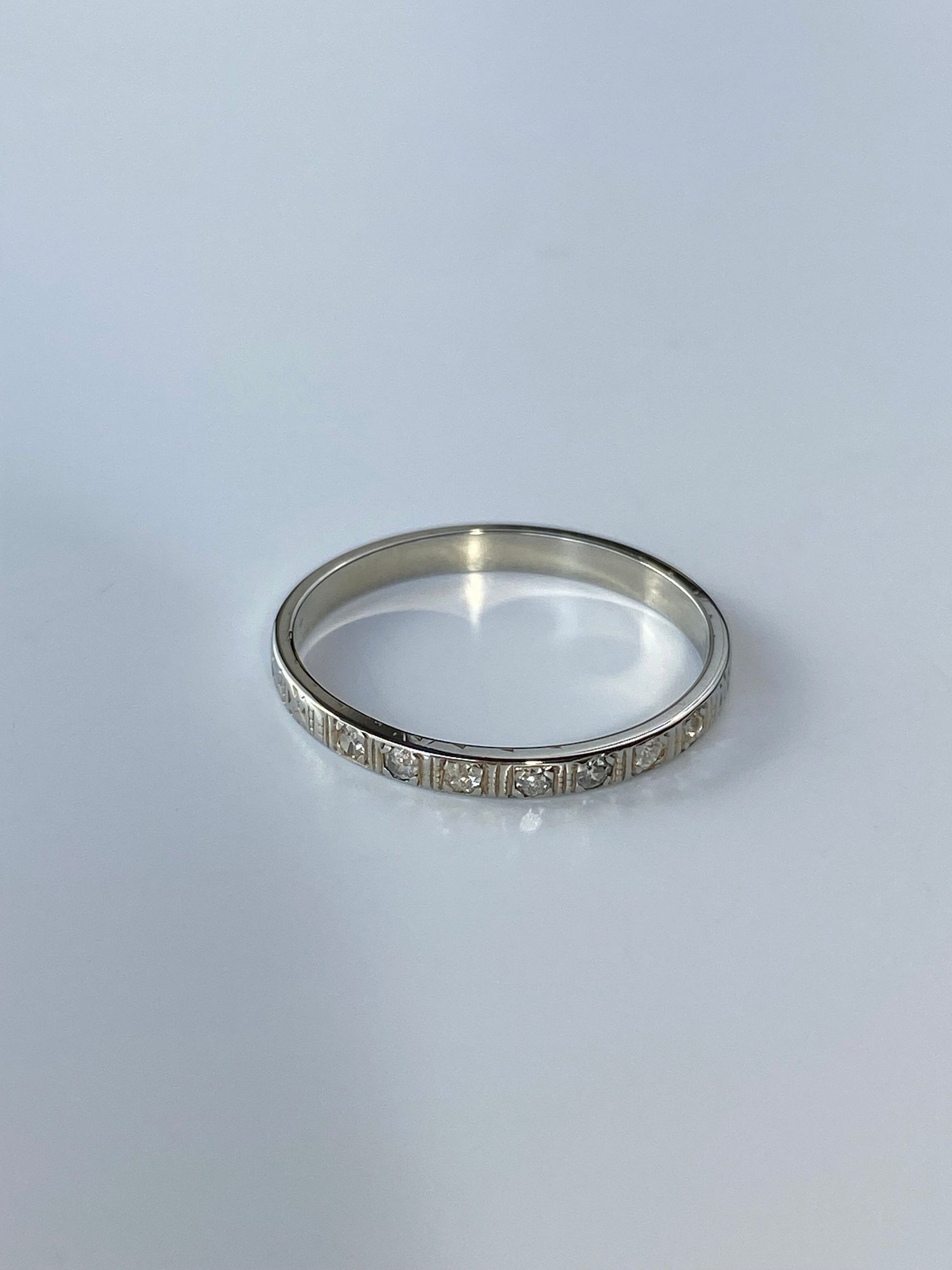 Vintage Solid 18k White Gold Clear Sapphire Designed Ring Band - Size 5.5