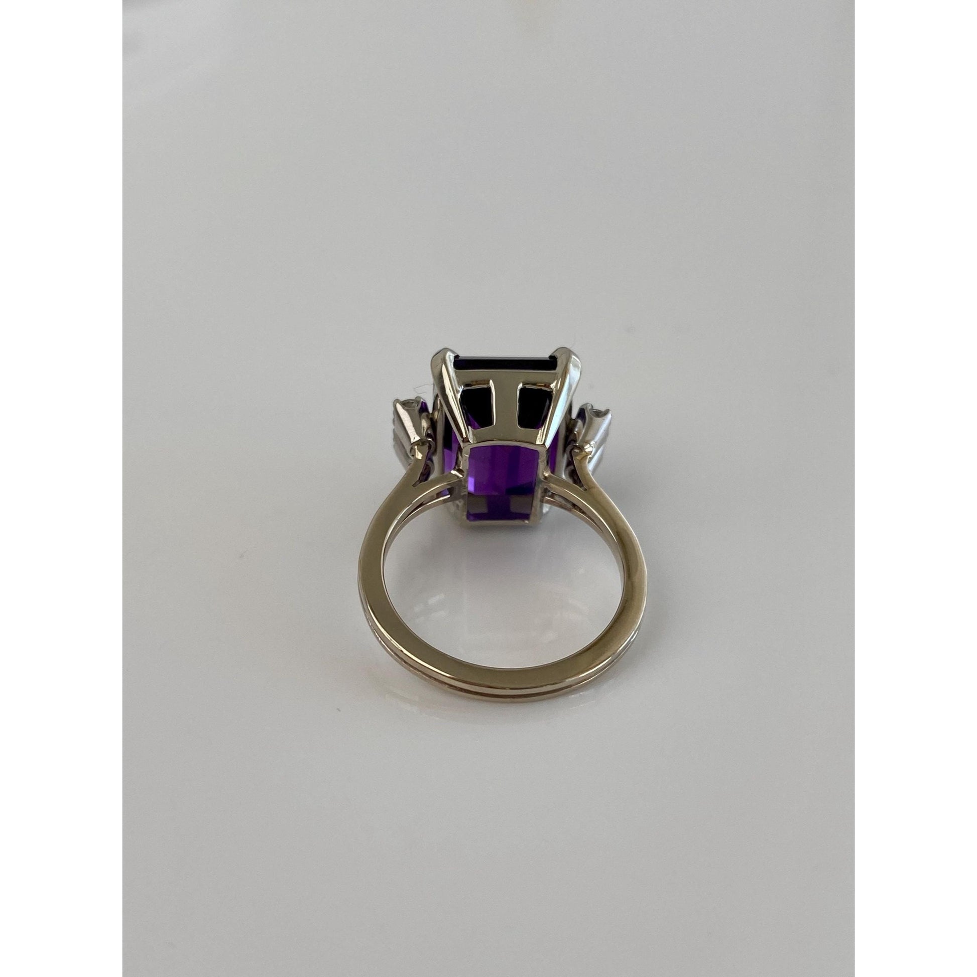 Vintage Solid 18k White Gold Diamond Amethyst Ring - Size 5.5