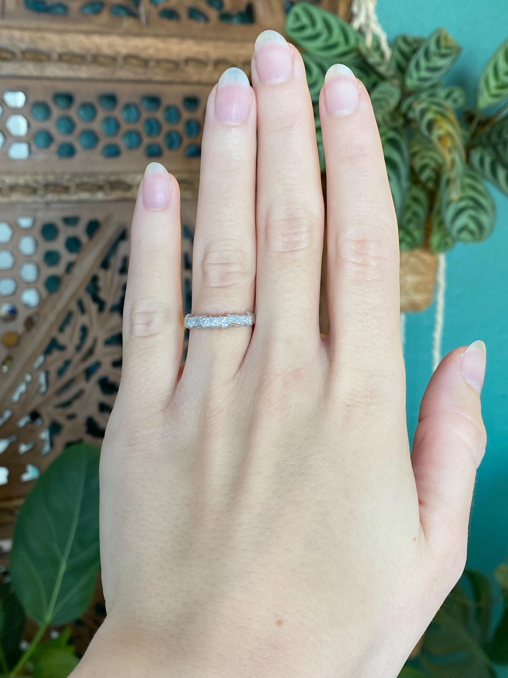 Vintage Solid 18k White Gold Diamond Ring Band - Size 5.75