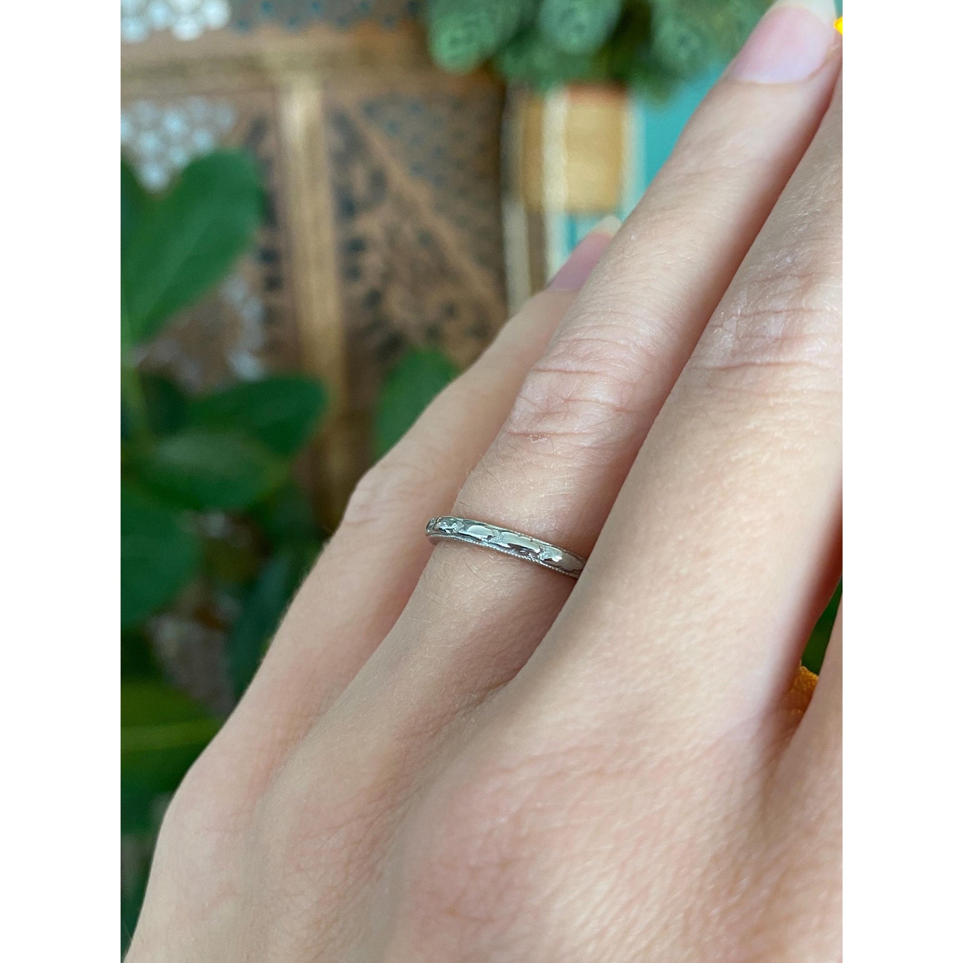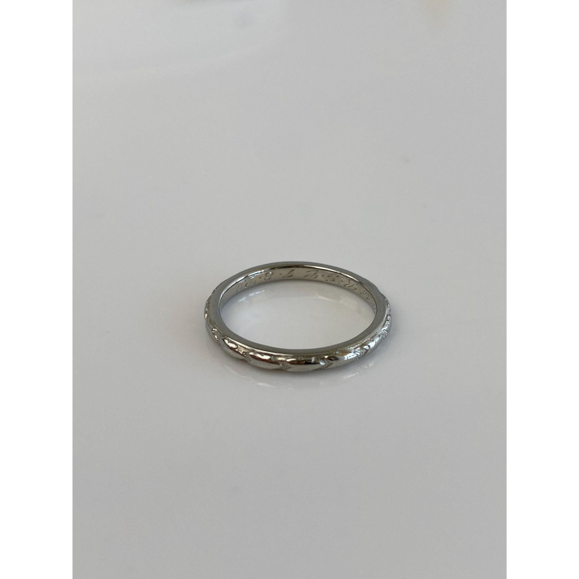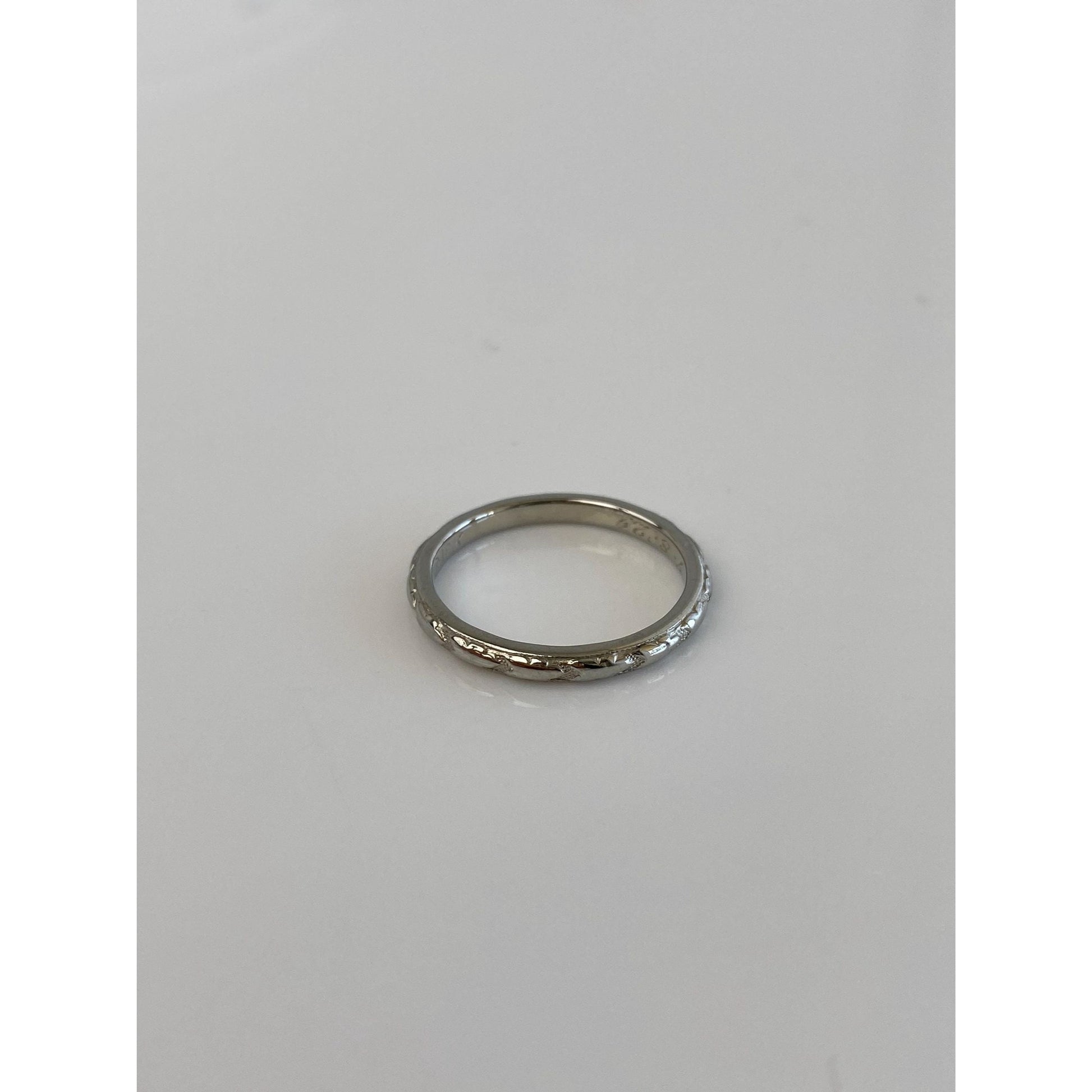 Vintage Solid 18k White Gold Pattern Ring Band - Size 5