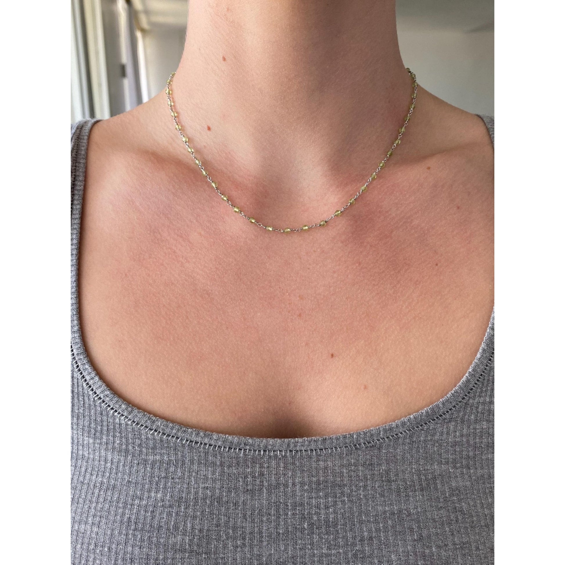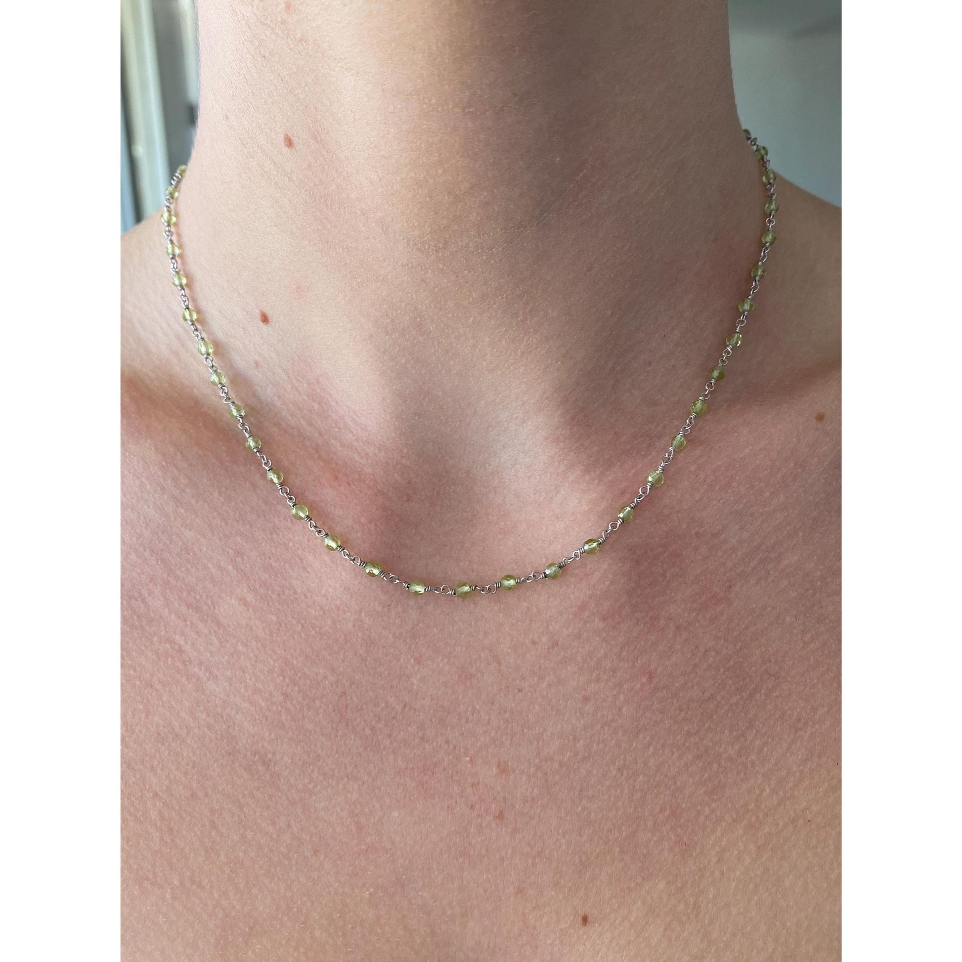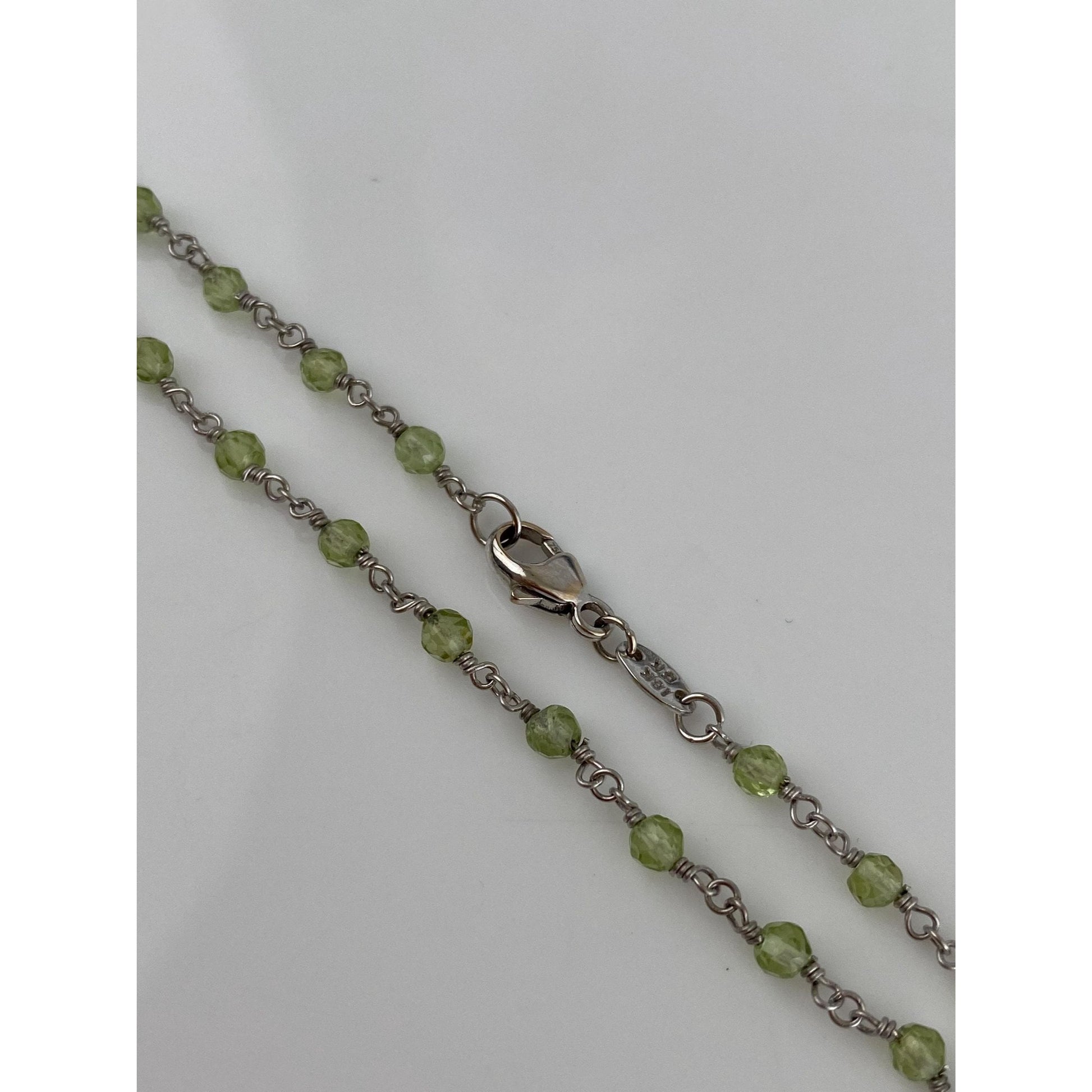 Vintage Solid 18k White Gold Peridot Link Necklace - 16.25 inches