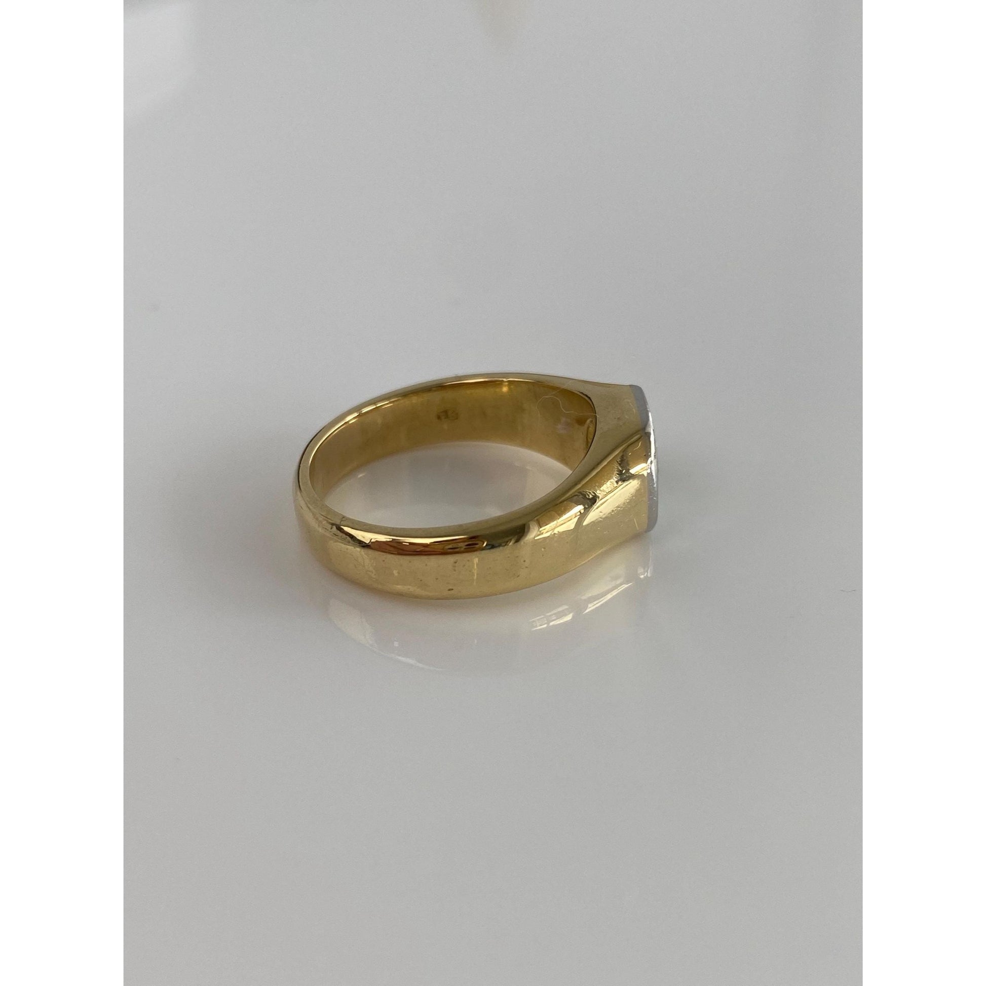 Vintage Solid 18k White & Yellow Gold 0.5 Carat Diamond Signet Ring - Size 7.25
