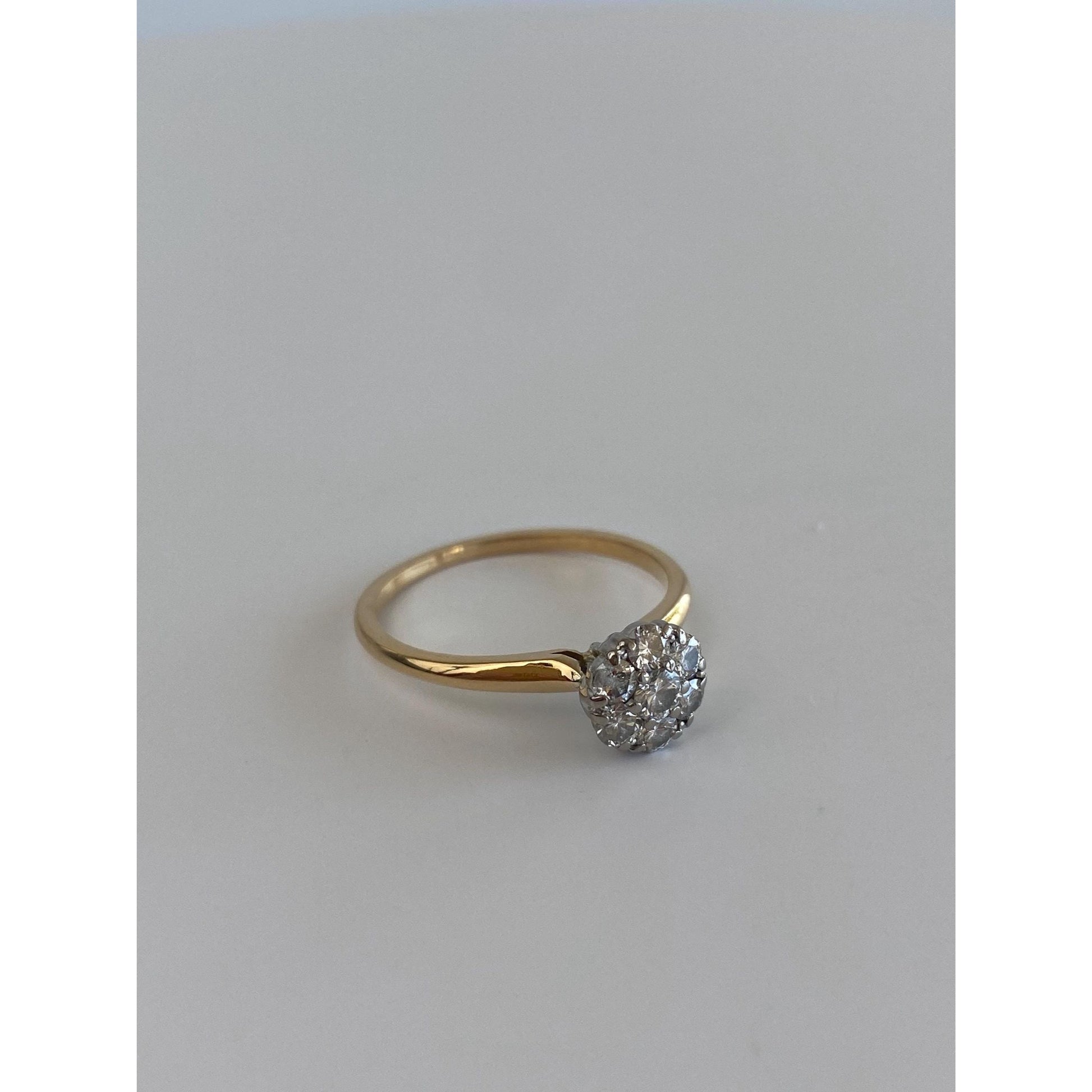 Vintage Solid 18k White & Yellow Gold Diamond Cluster Ring - Size 7.75