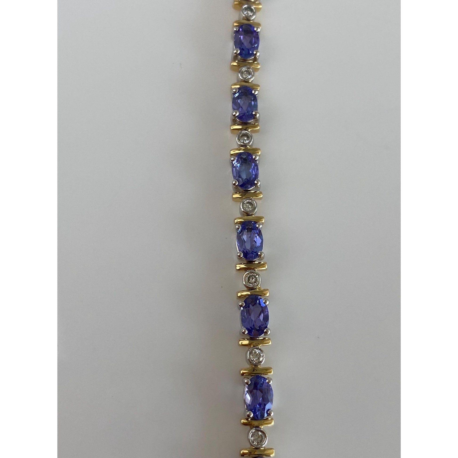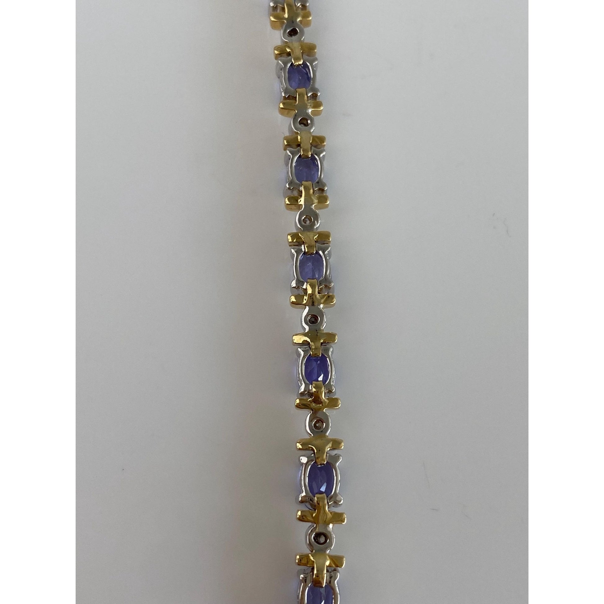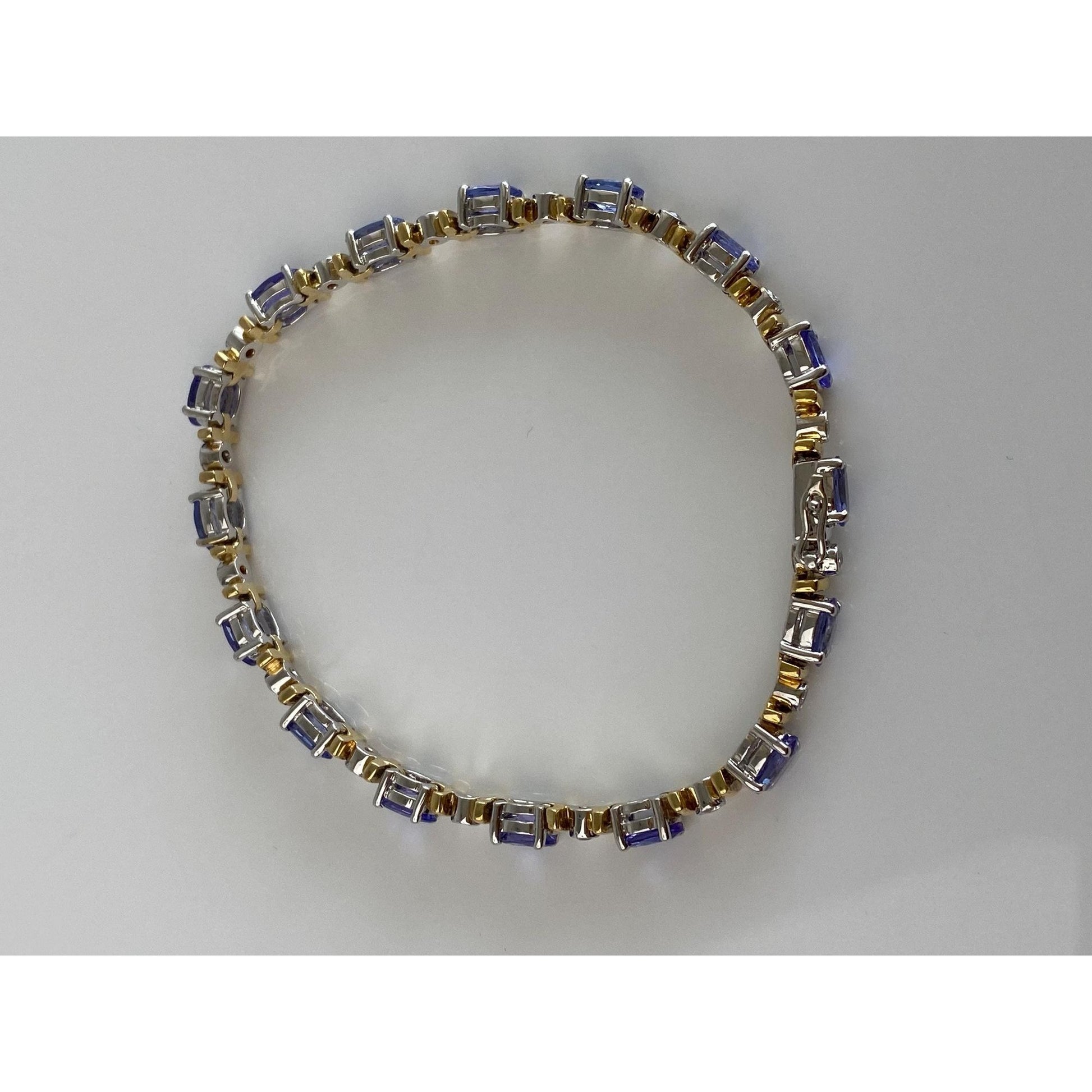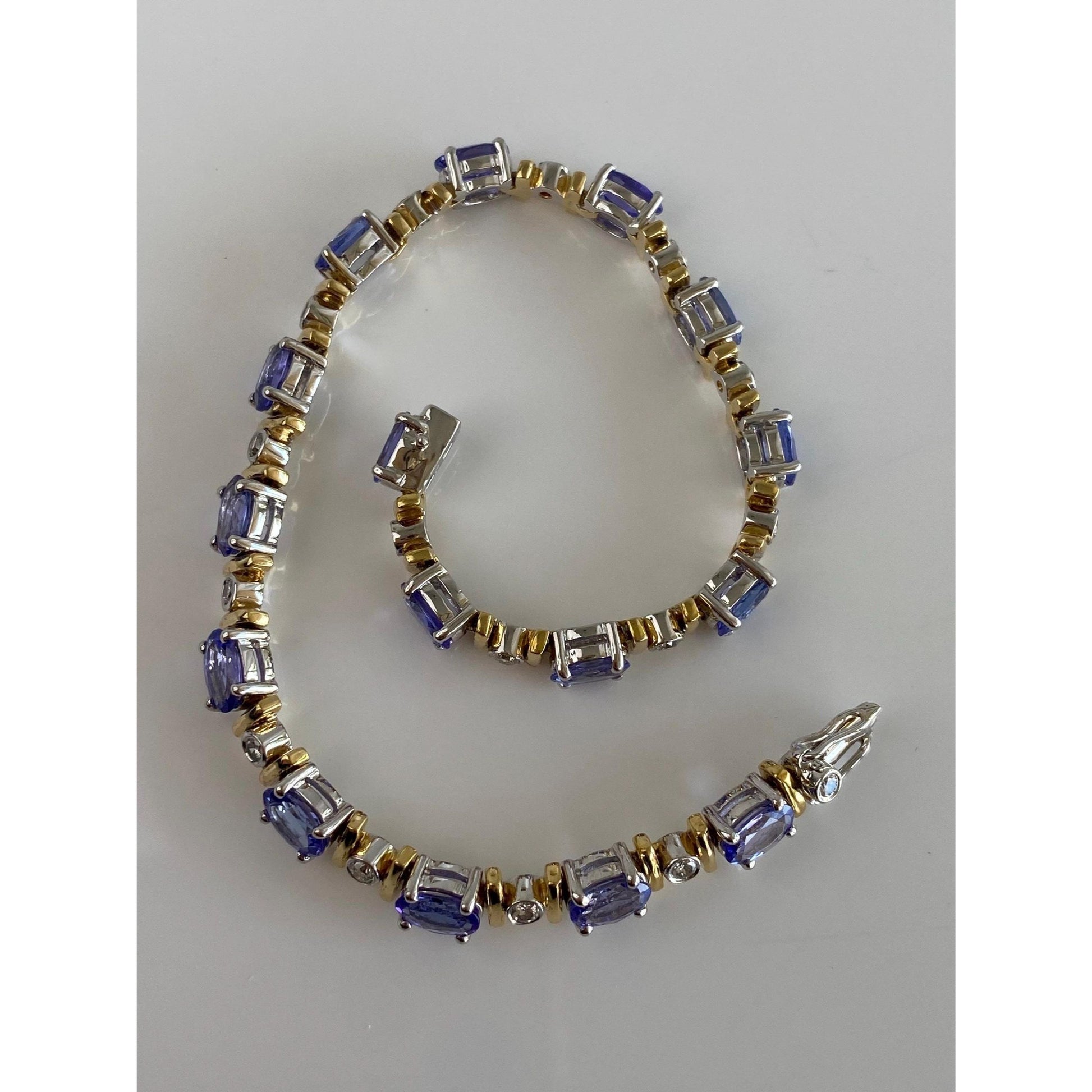 Vintage Solid 18k White & Yellow Gold Diamond Tanzanite Link Bracelet - 7 inches