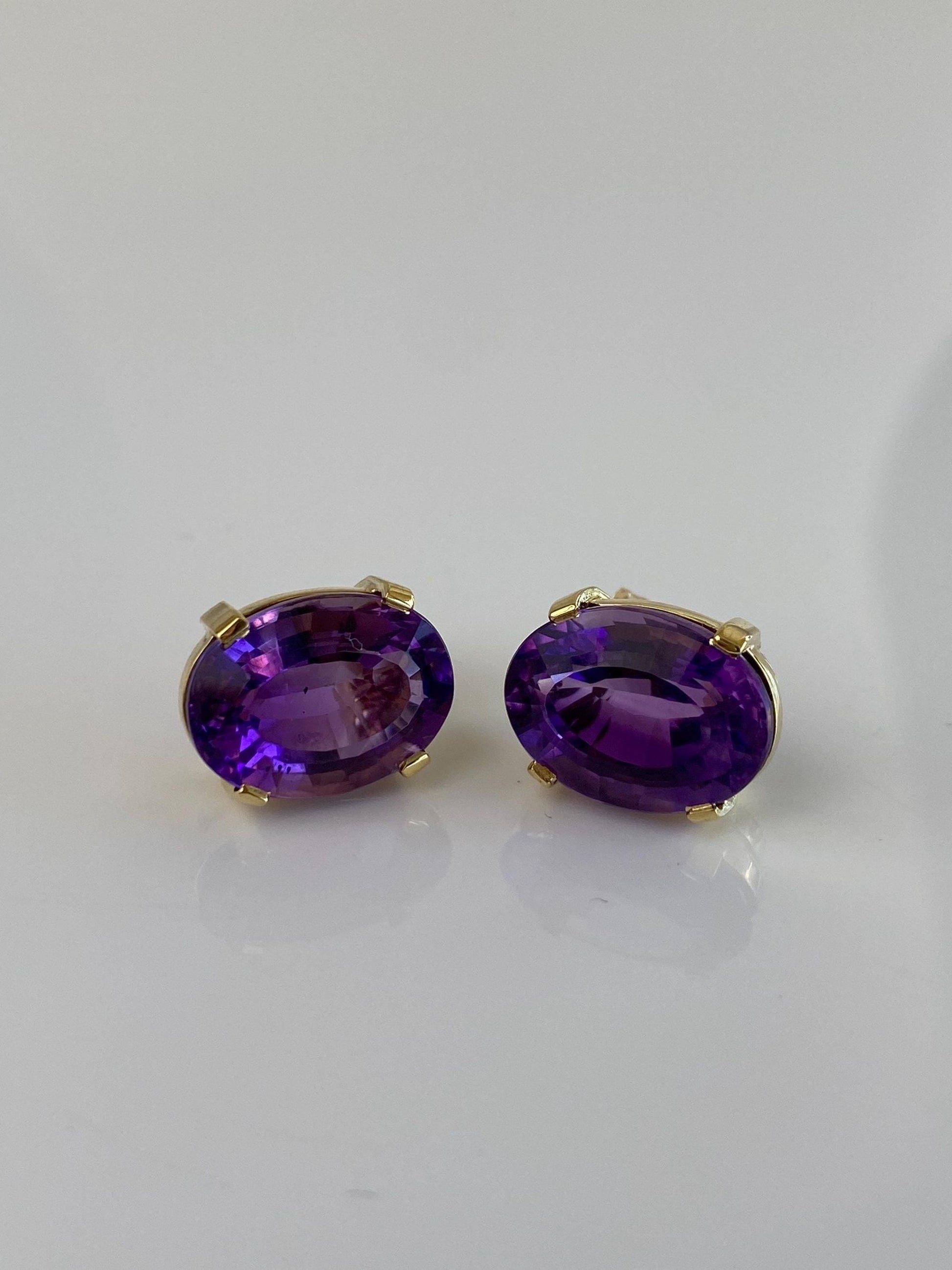 Vintage Solid 18k Yellow Gold Amethyst Drop Earrings