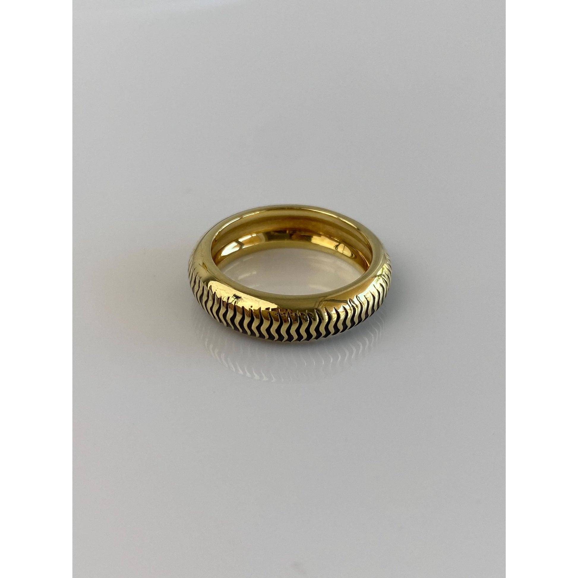 Vintage Solid 18k Yellow Gold Black Enamel Design Ring Band - Size 6.5