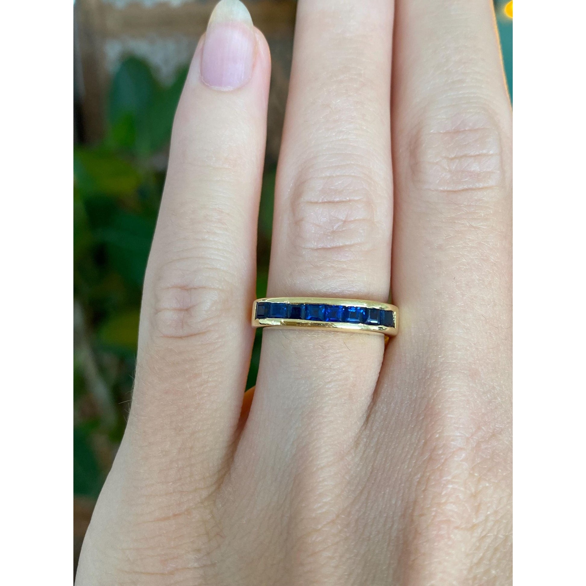 Vintage Solid 18k Yellow Gold Blue Sapphire Ring - Size 5