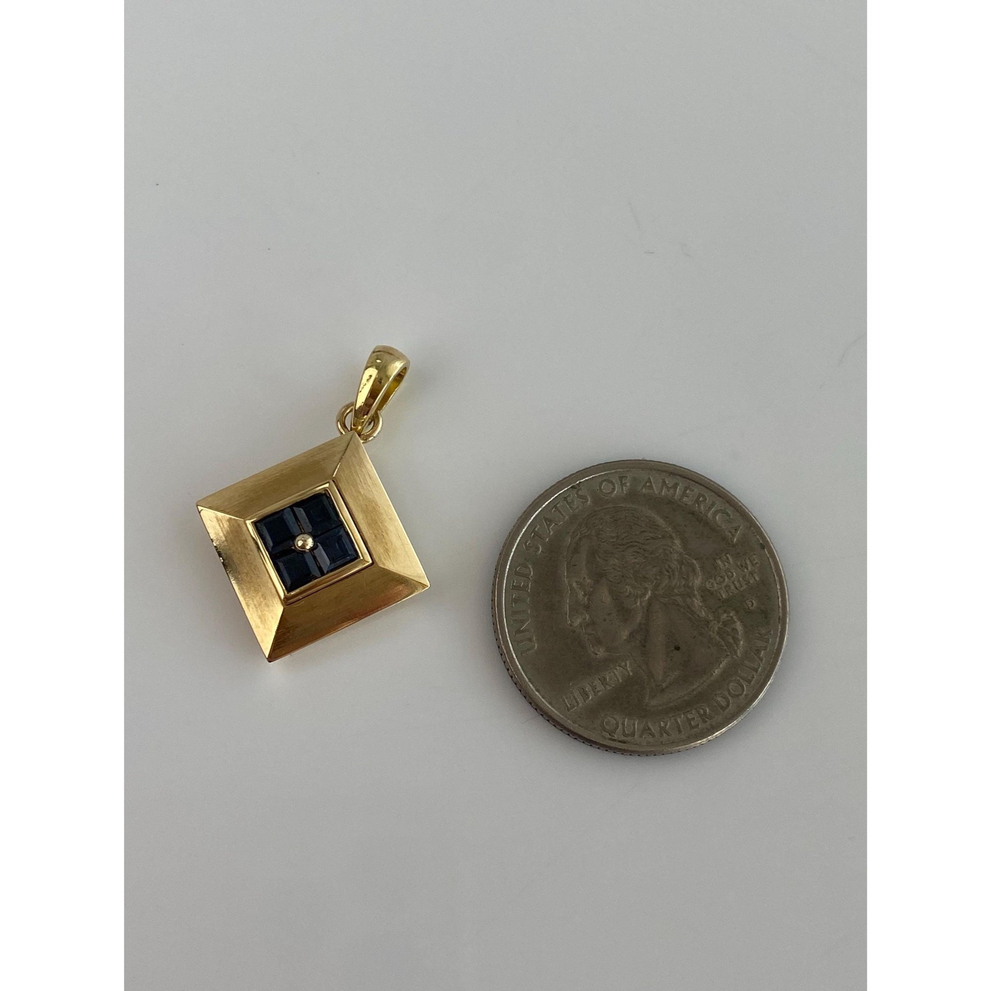 Vintage Solid 18k Yellow Gold Blue Sapphire Square Charm