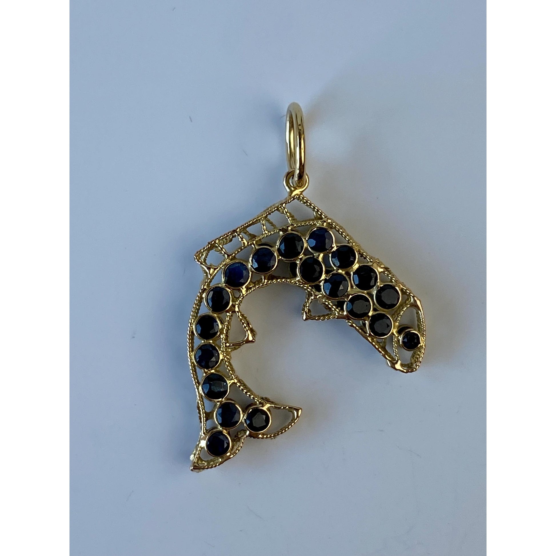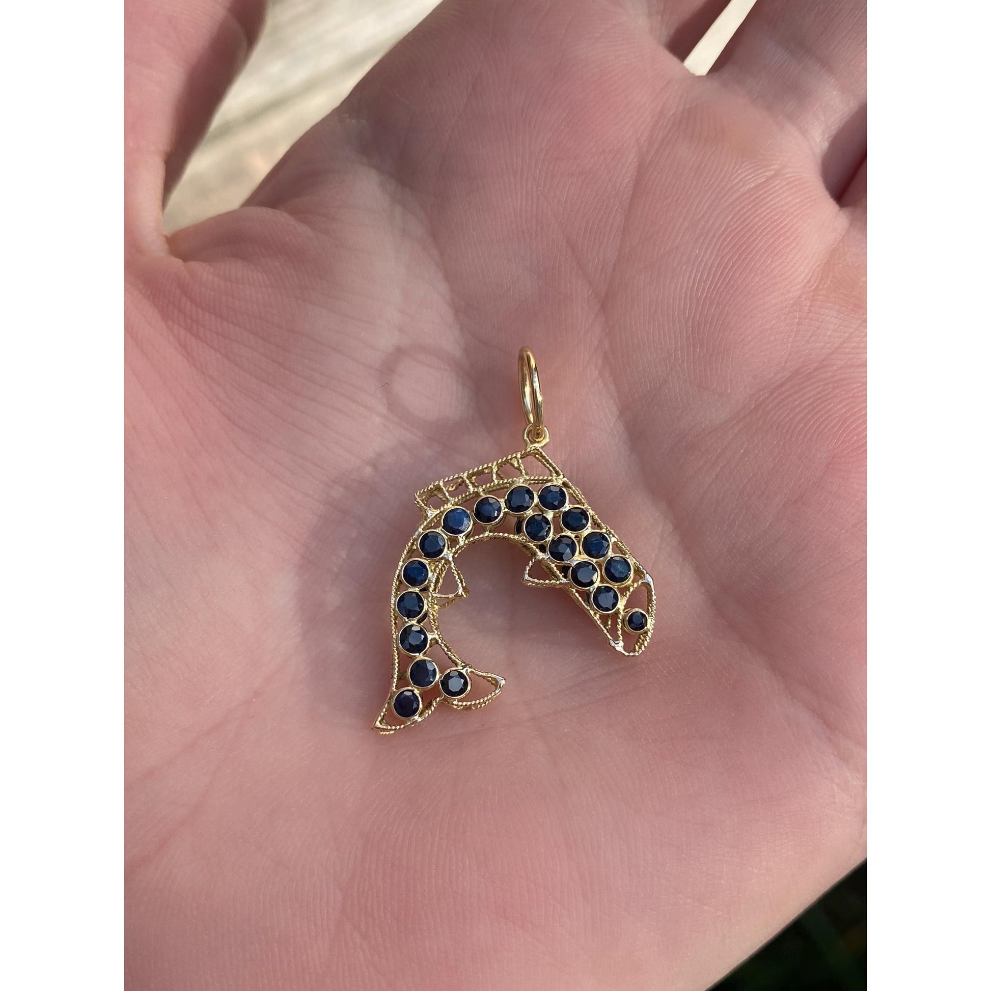 Vintage Solid 18k Yellow Gold Blue Spinel Fish Charm
