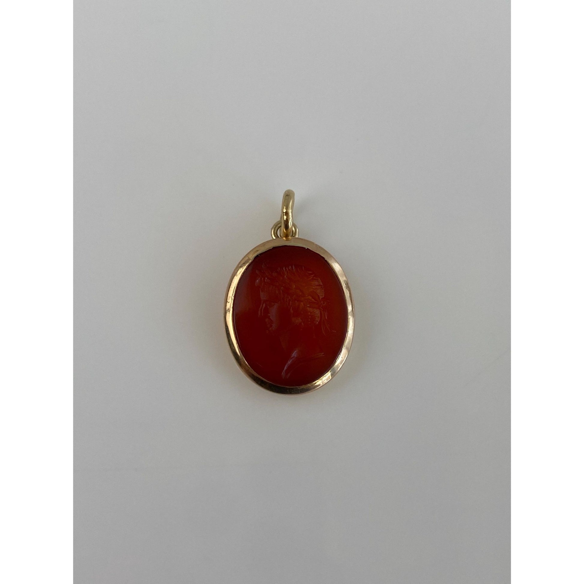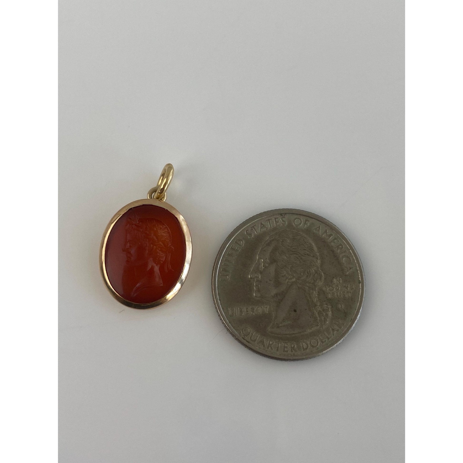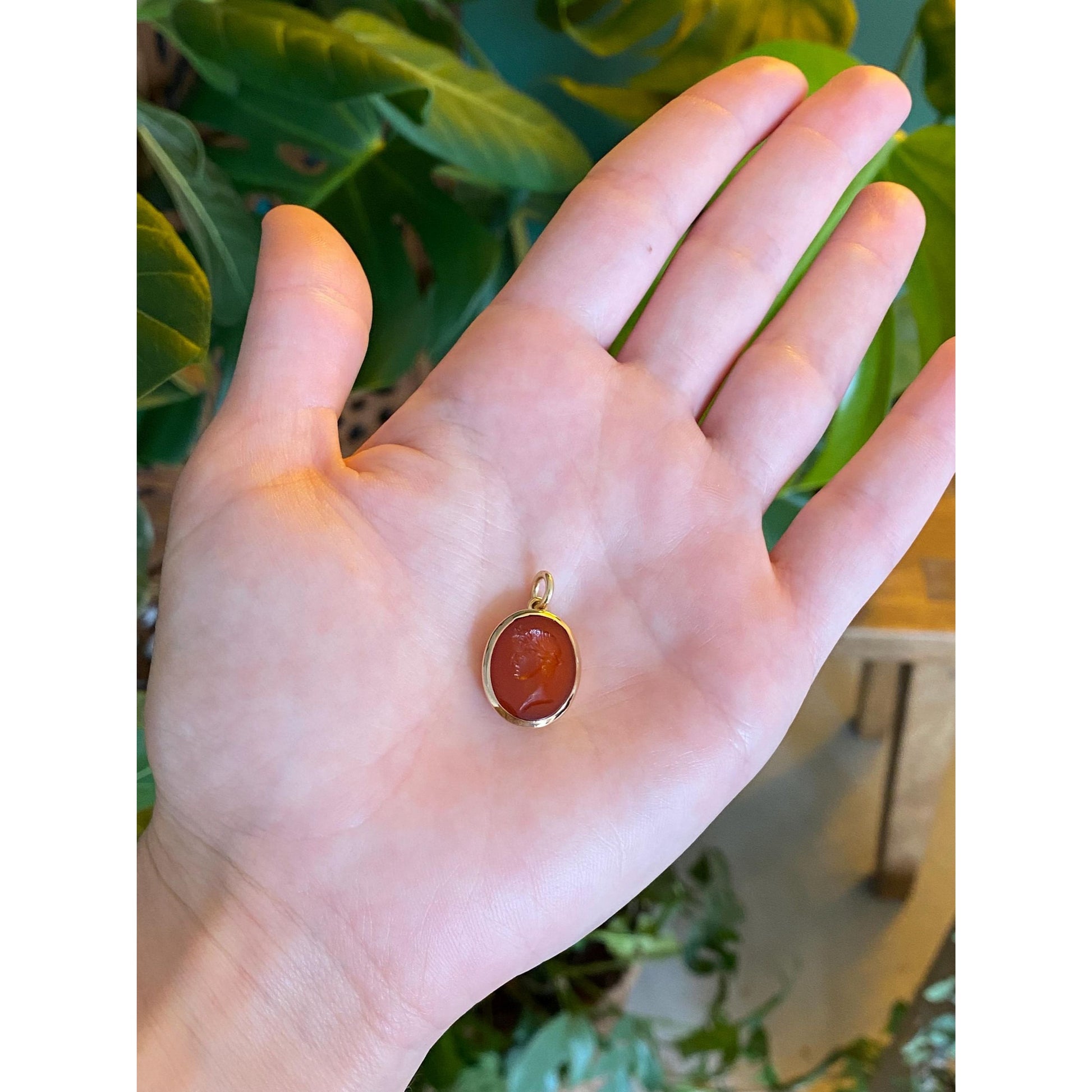 Vintage Solid 18k Yellow Gold Carnelian Cameo Itaglio Charm