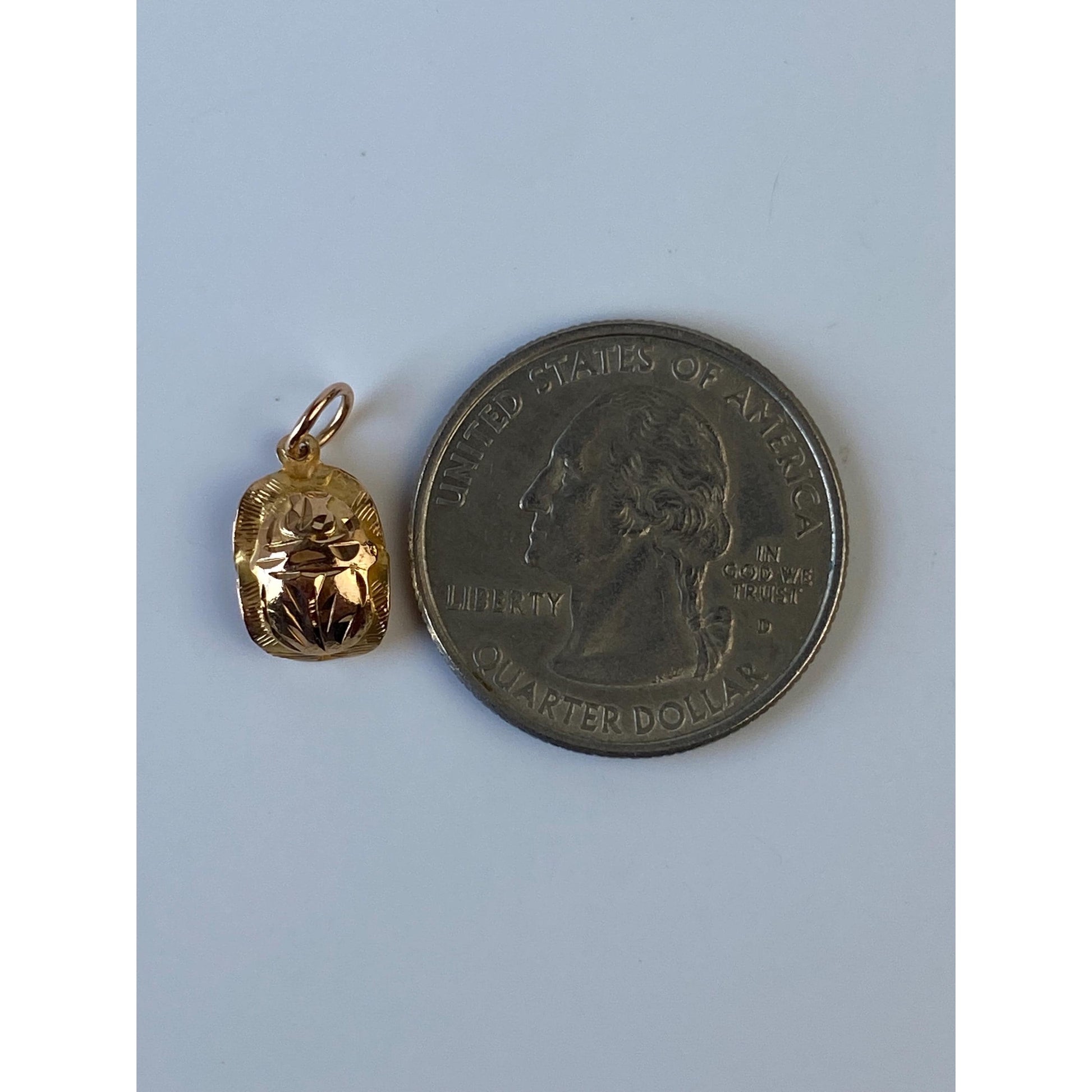Vintage Solid 18k Yellow Gold Carved Scarab Charm