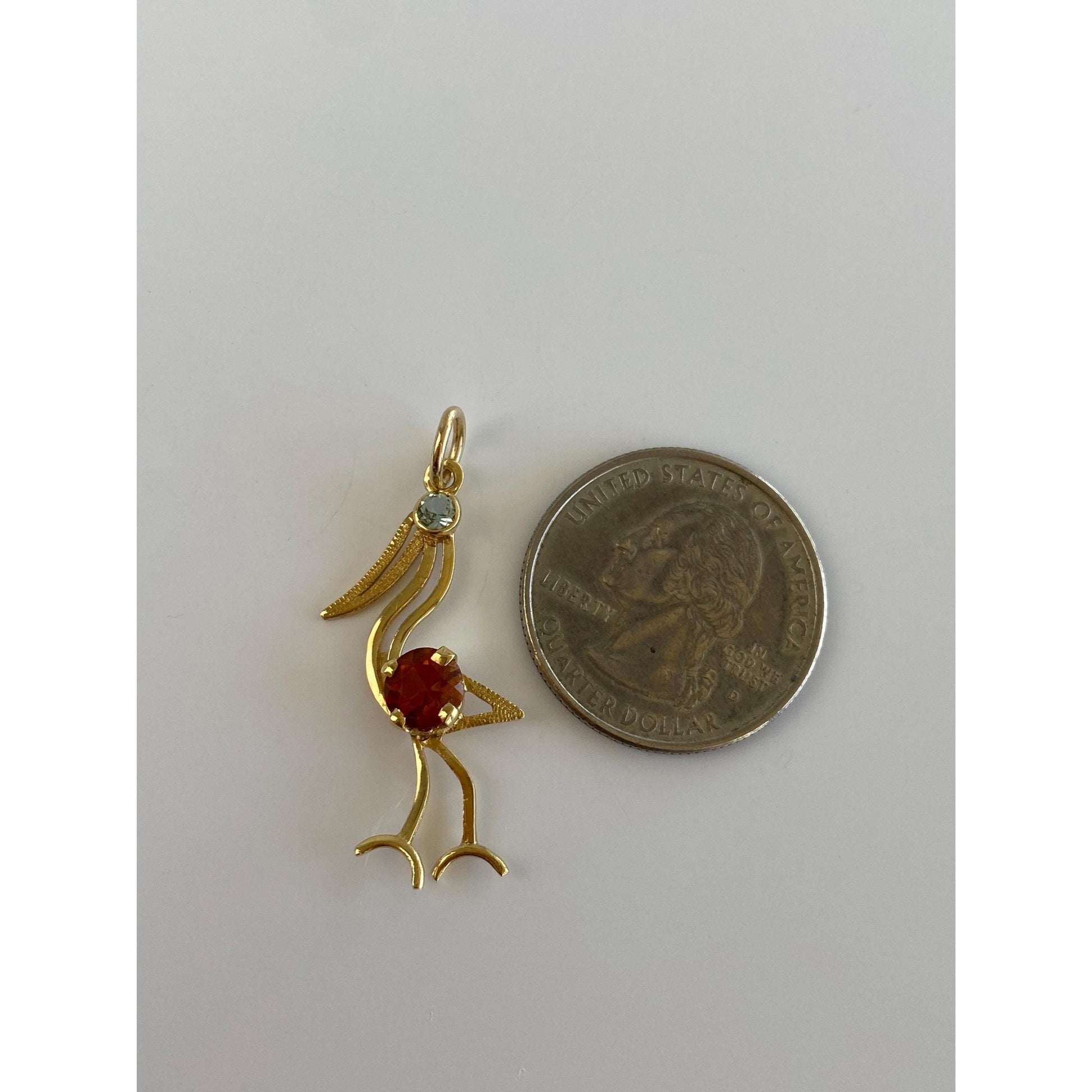 Vintage Solid 18k Yellow Gold Citrine Aquamarine Flamingo Pelican Bird Charm