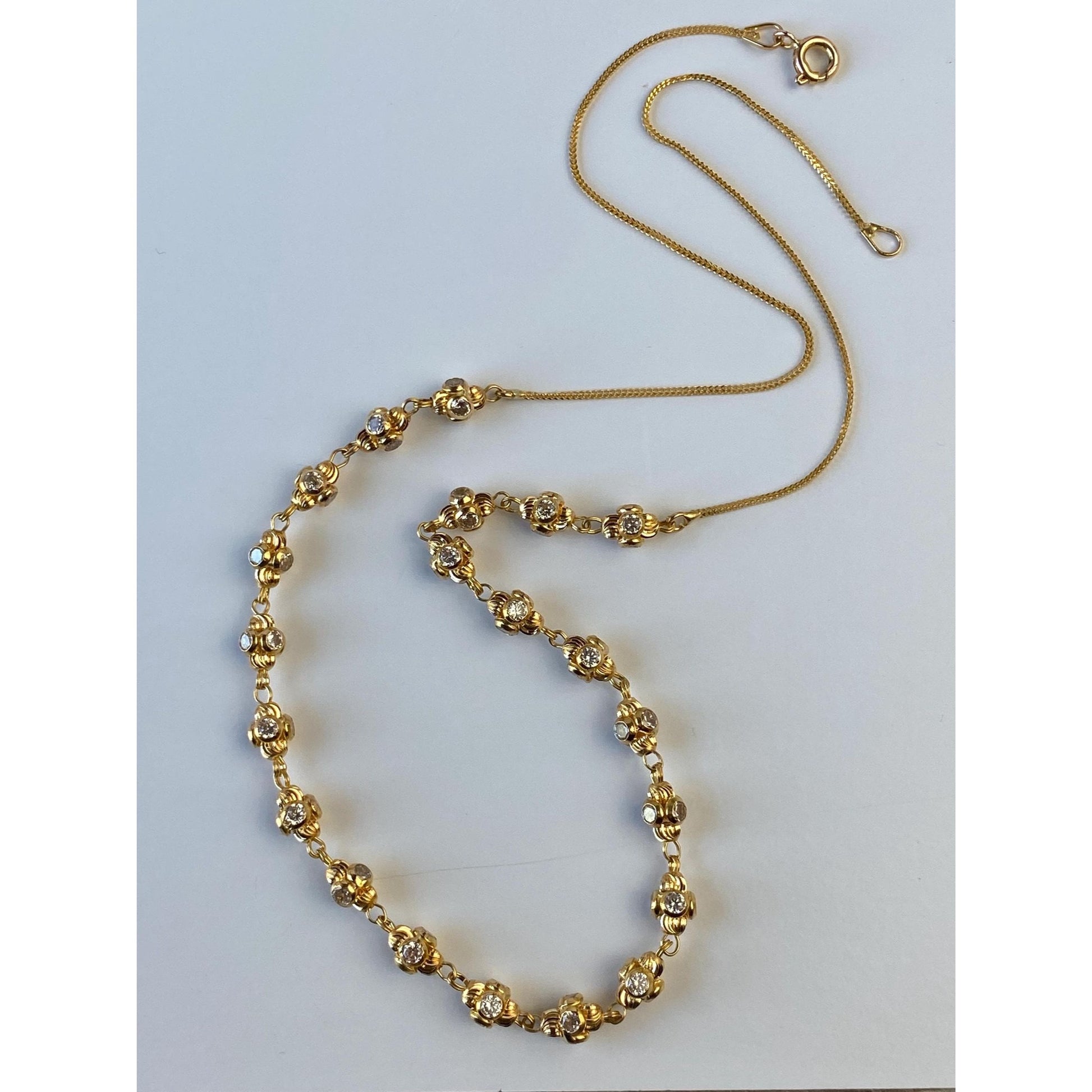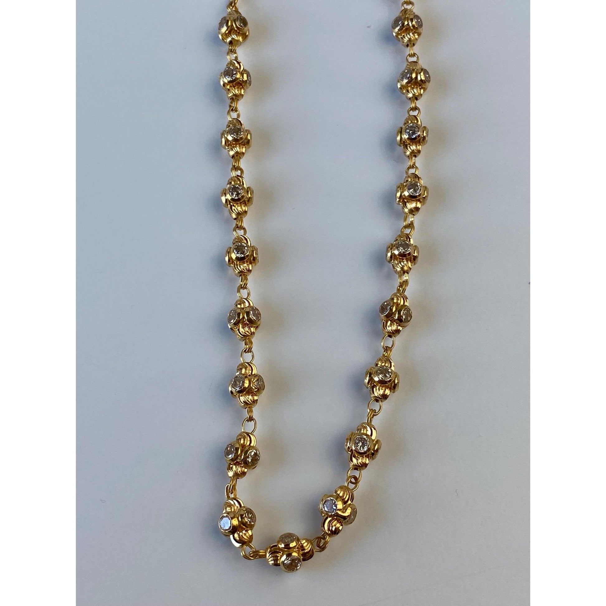 Vintage Solid 18k Yellow Gold Cubic Zirconia Bead Tight Curb Chain Necklace - 18.5 inches