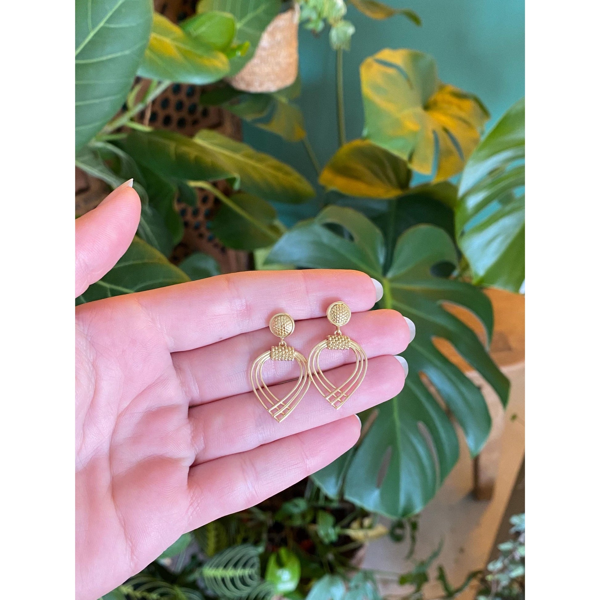 Vintage Solid 18k Yellow Gold Dangle Stud Earrings