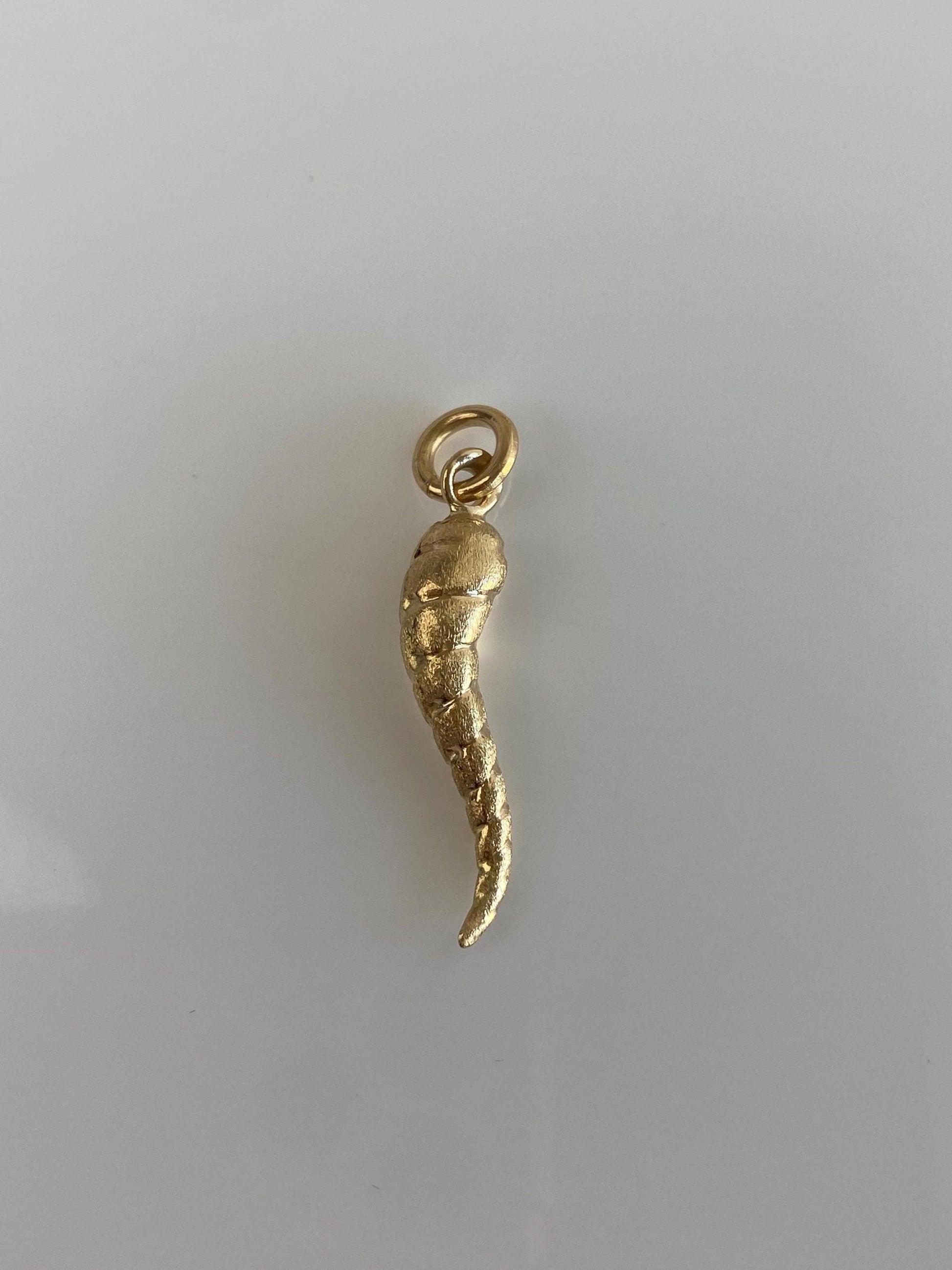 Vintage Solid 18k Yellow Gold Design Italian Horn Charm